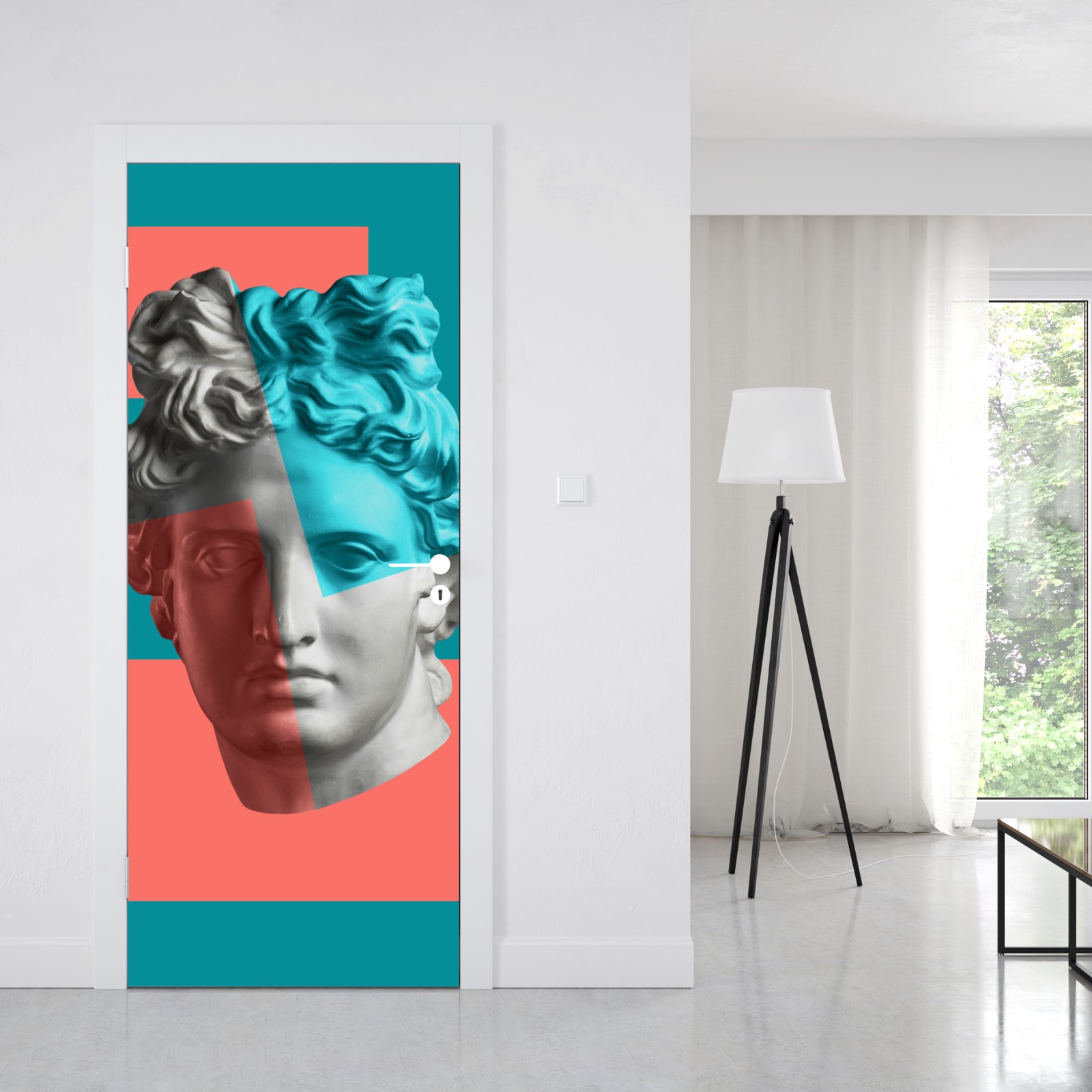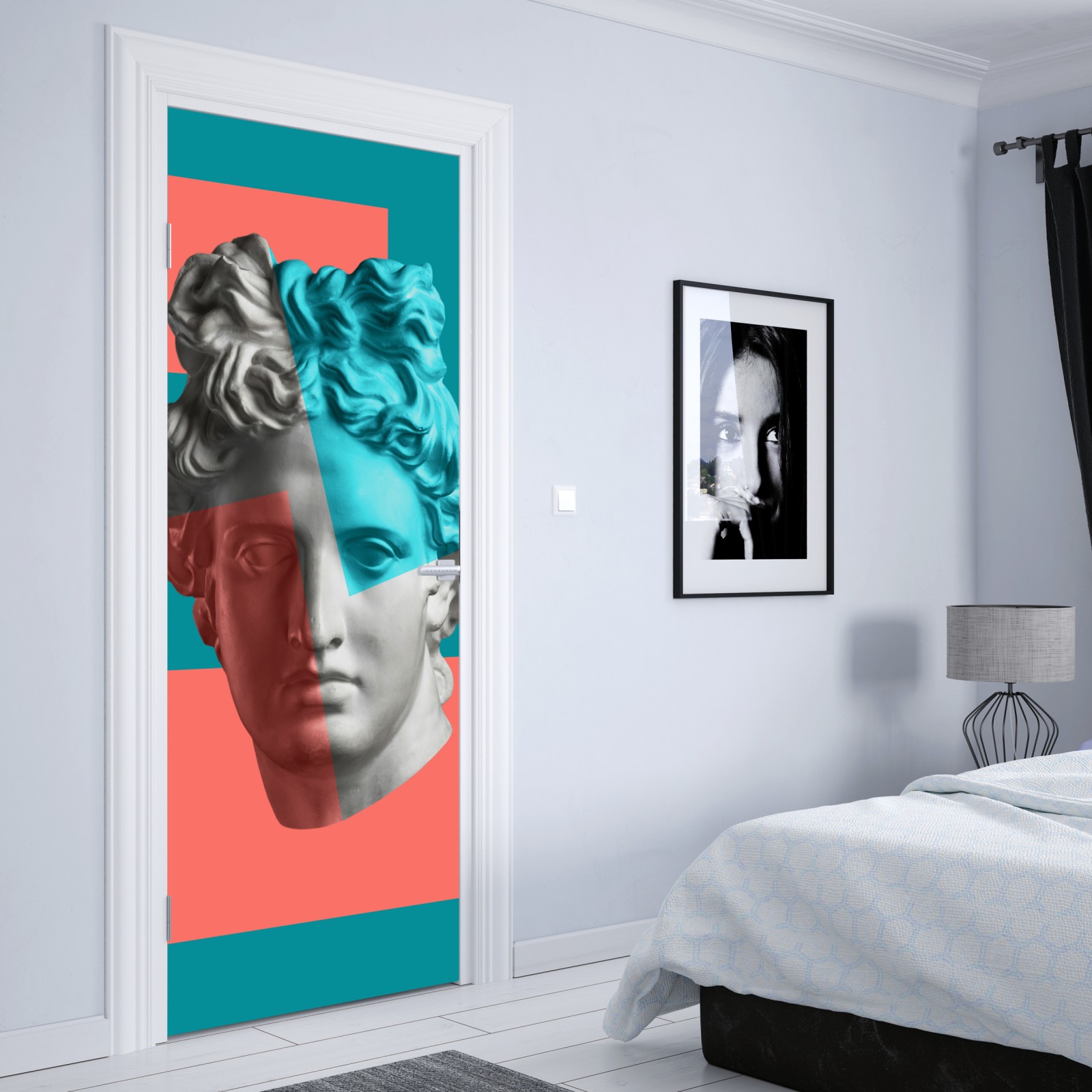 Naklejka na drzwi Duotonalna rzeźba głowy w kolażu