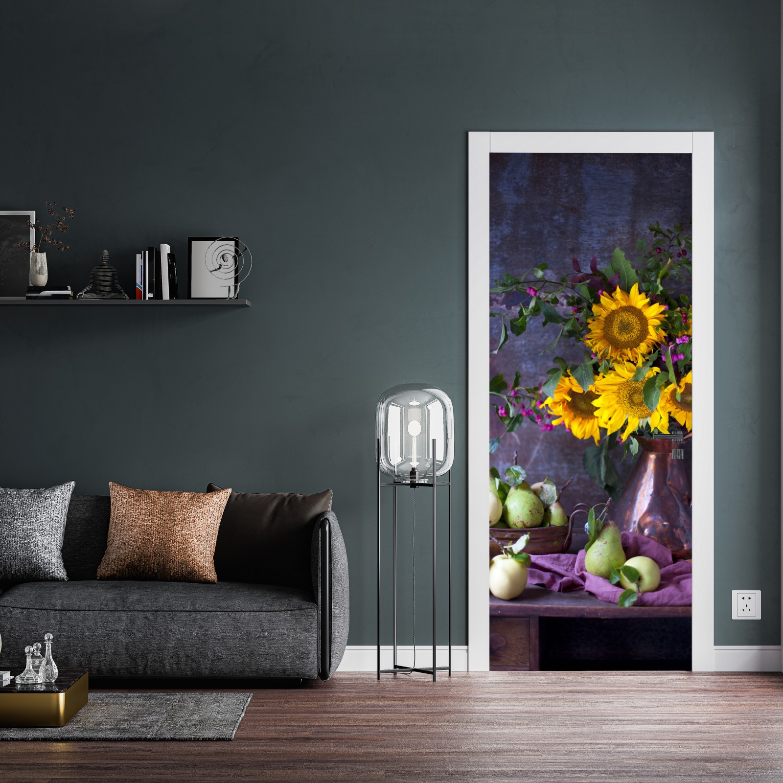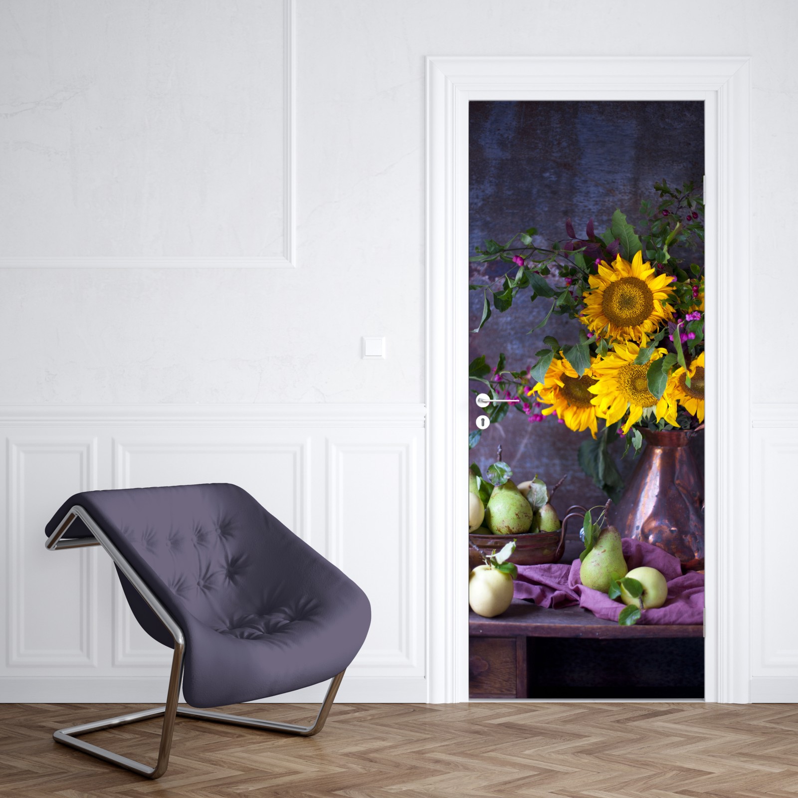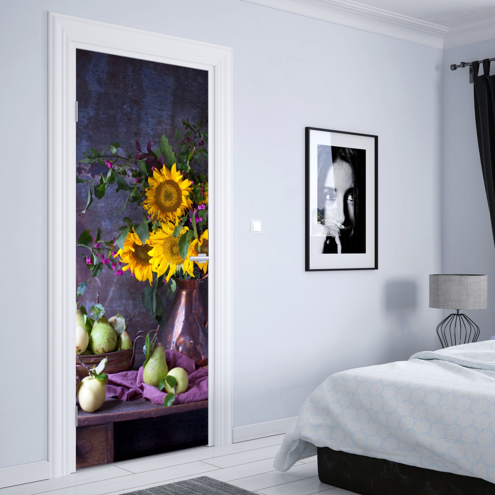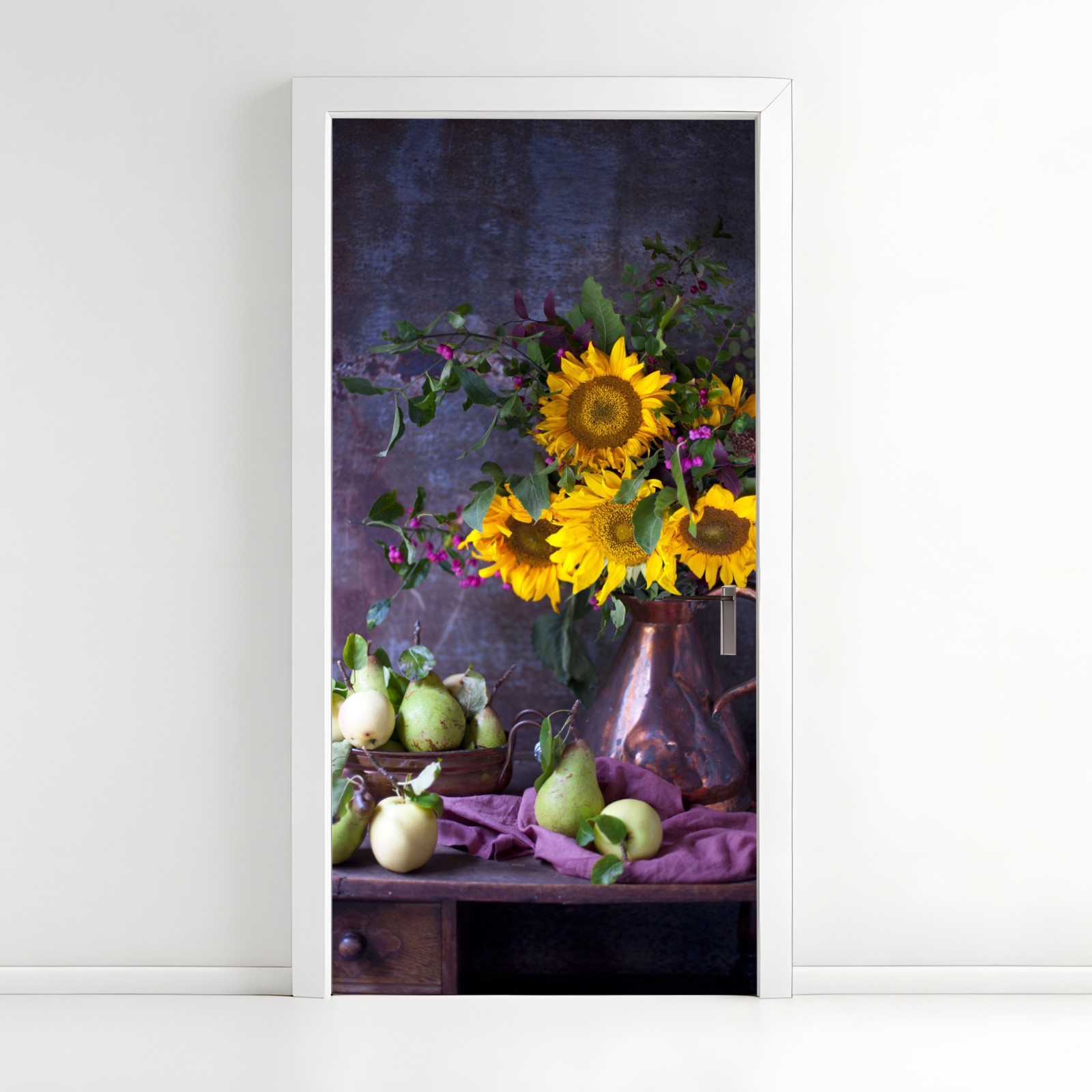 Naklejka na drzwi Słoneczniki i gruszki rustykalna martwa natura