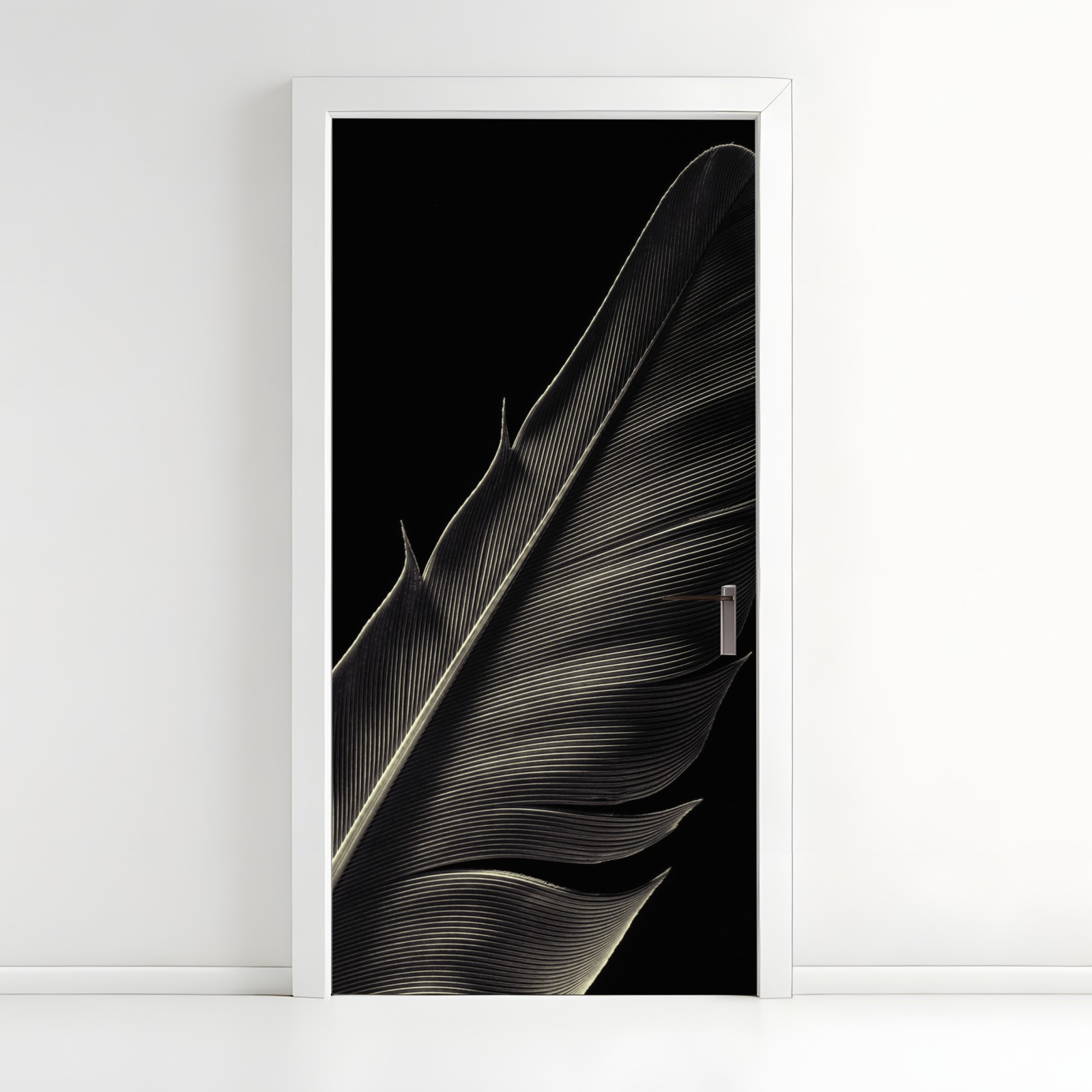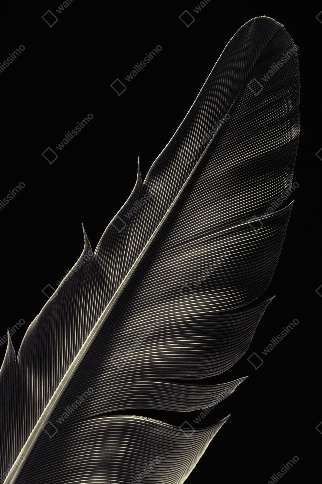 Eleganckie monochromatyczne zdjęcie pióra dodaje minimalistycznego, naturalnego uroku każdemu wnętrzu.