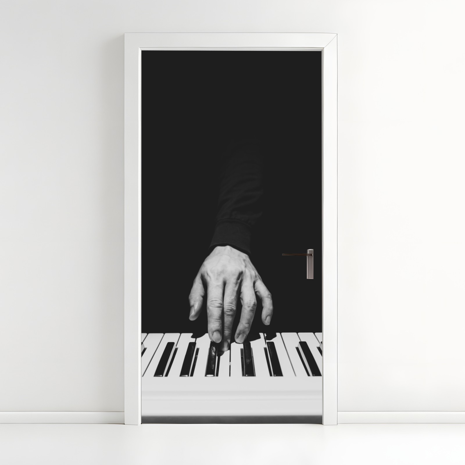 Naklejka na drzwi Monochromatyczne zbliżenie ręki przy pianinie