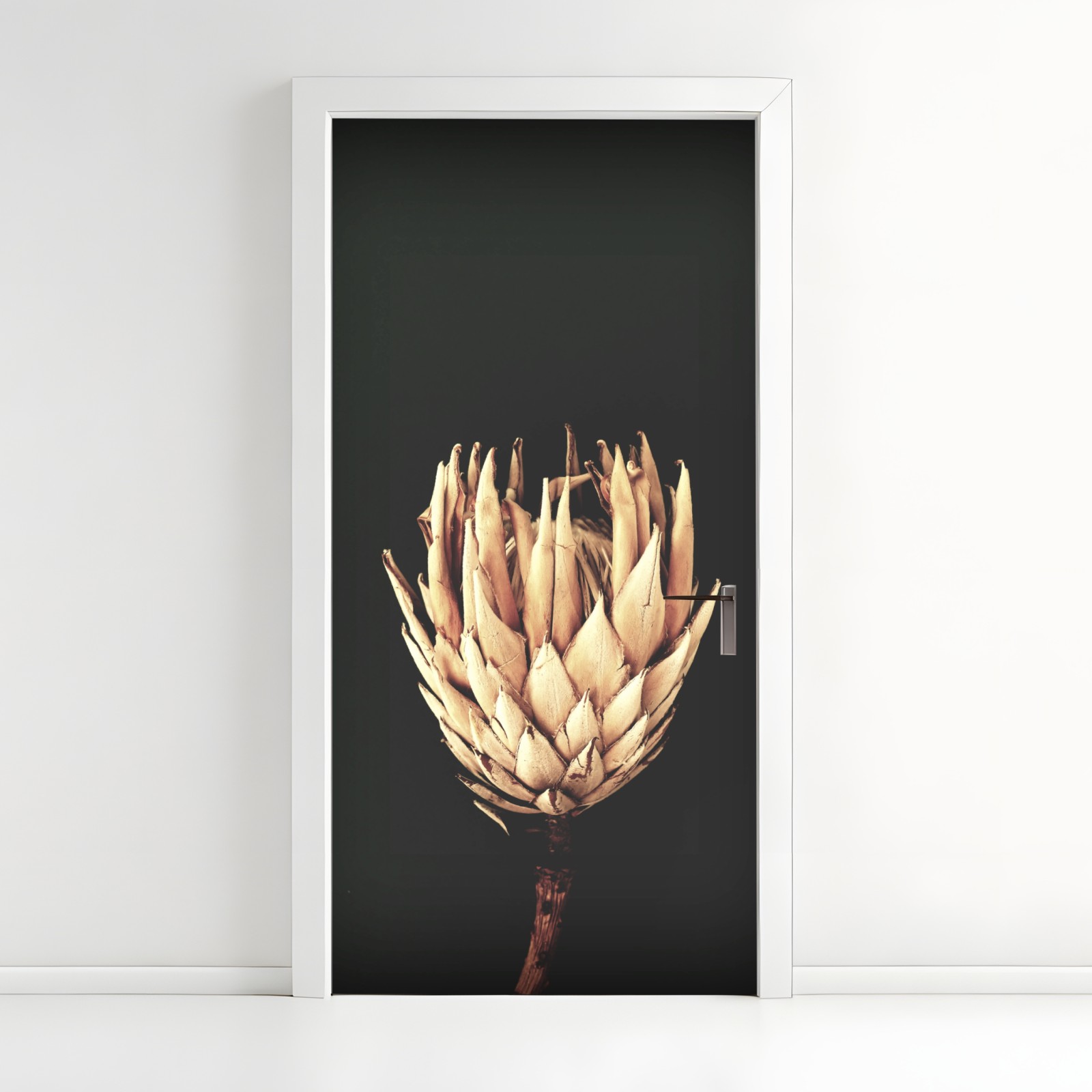 Ponadczasowy, sepia-tonalny wizerunek botaniczny suchej protei, który wnosi naturalną elegancję i fakturę do każdego wnętrza.