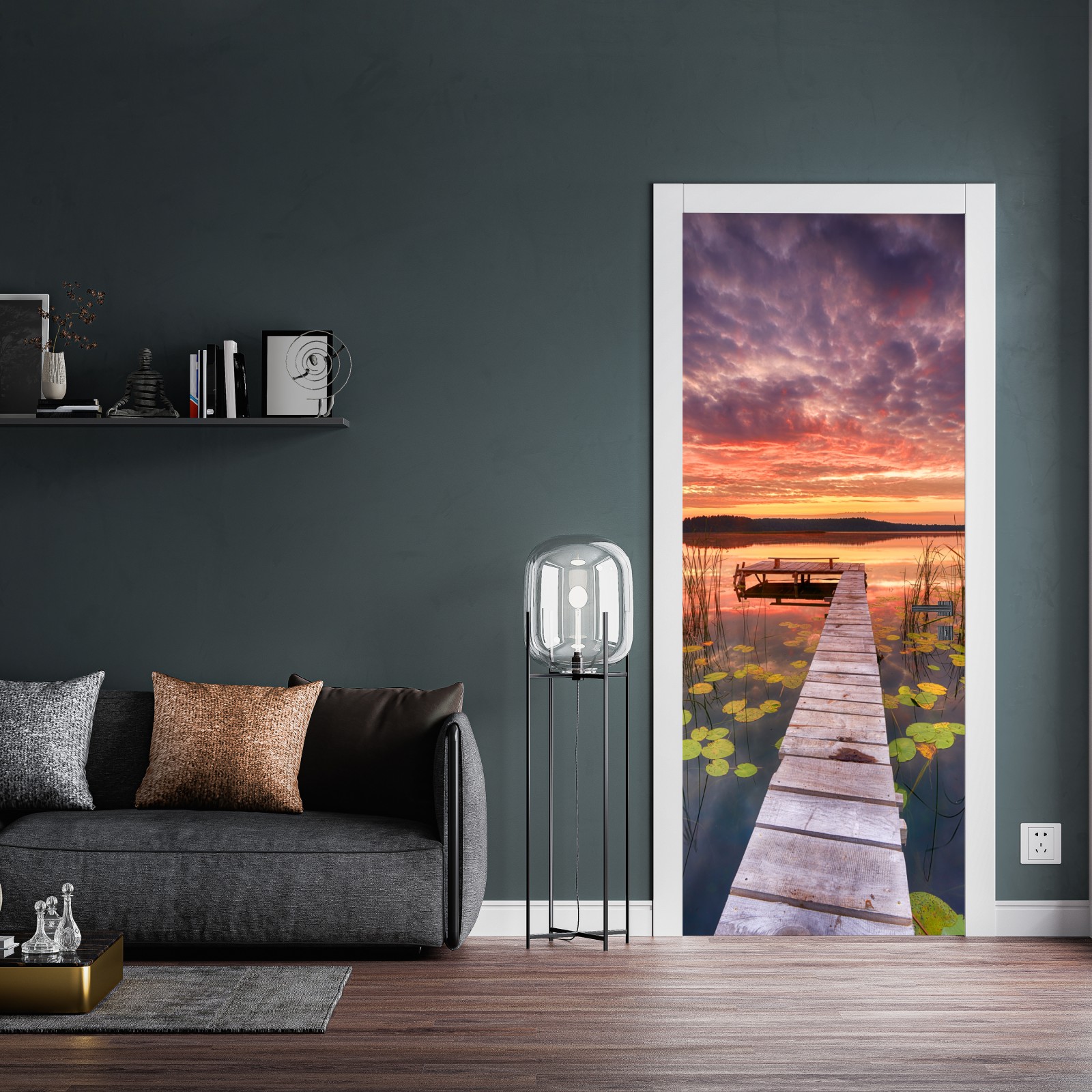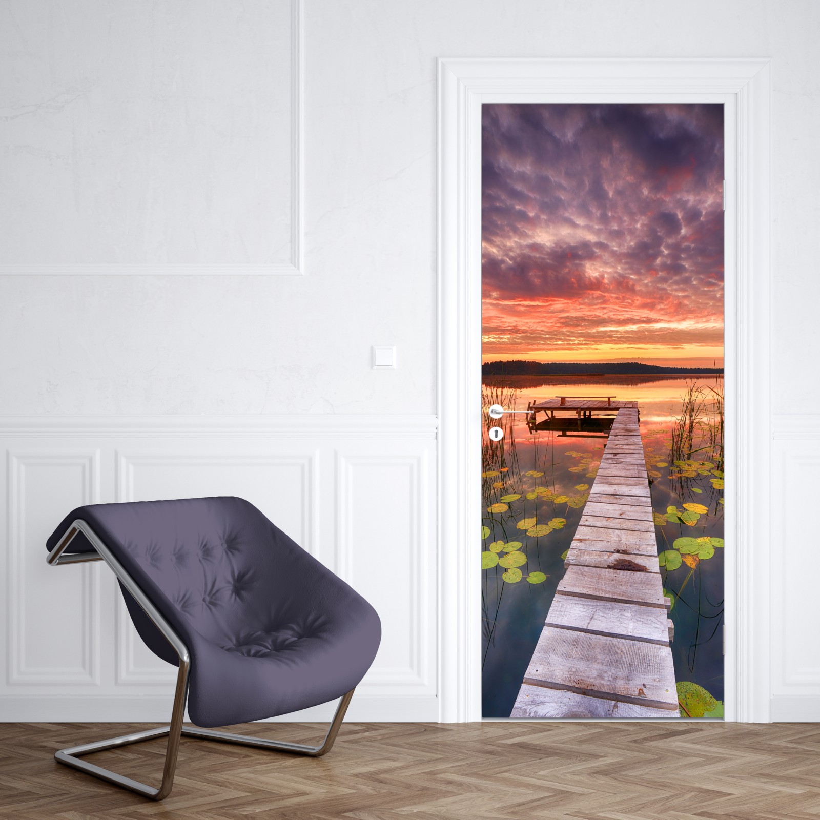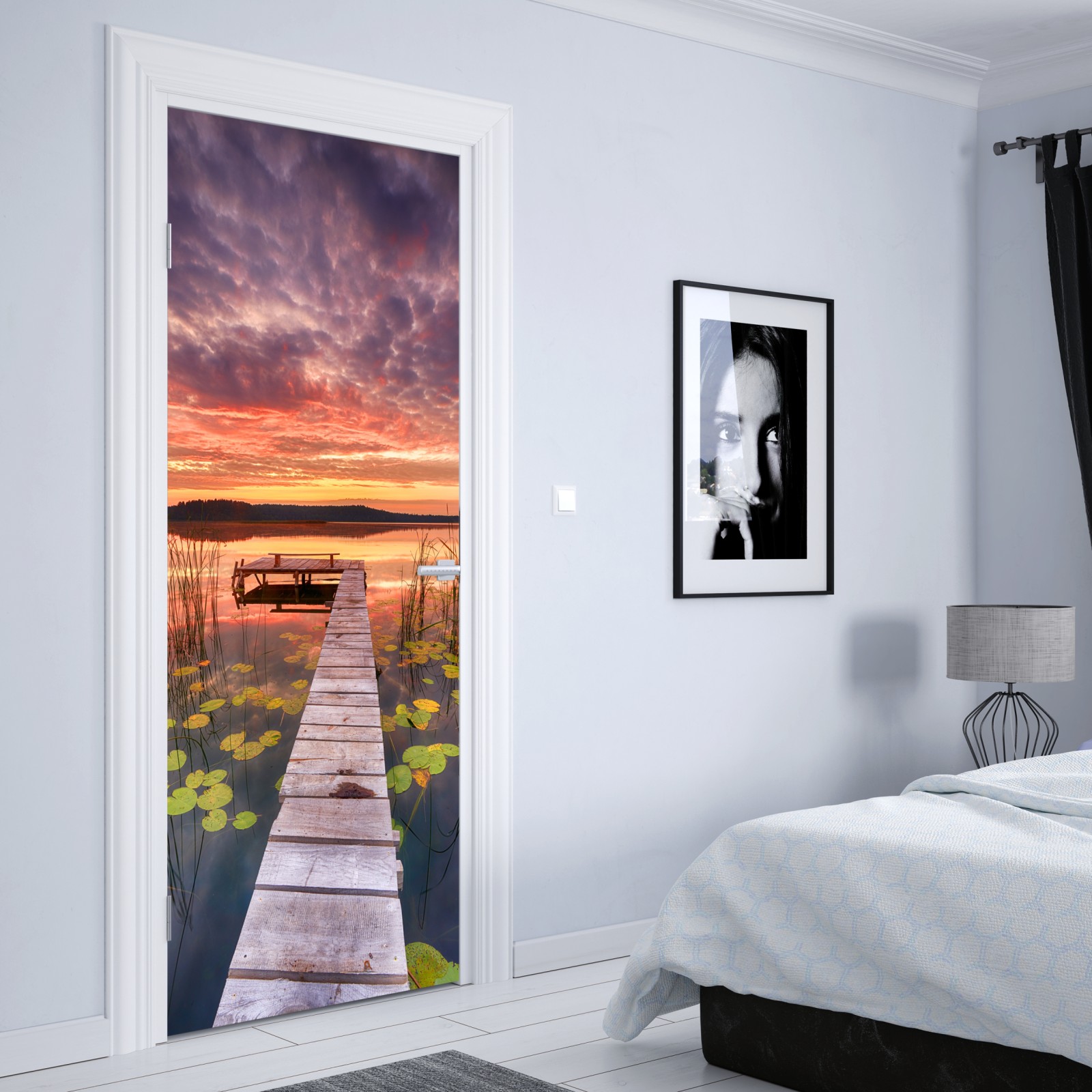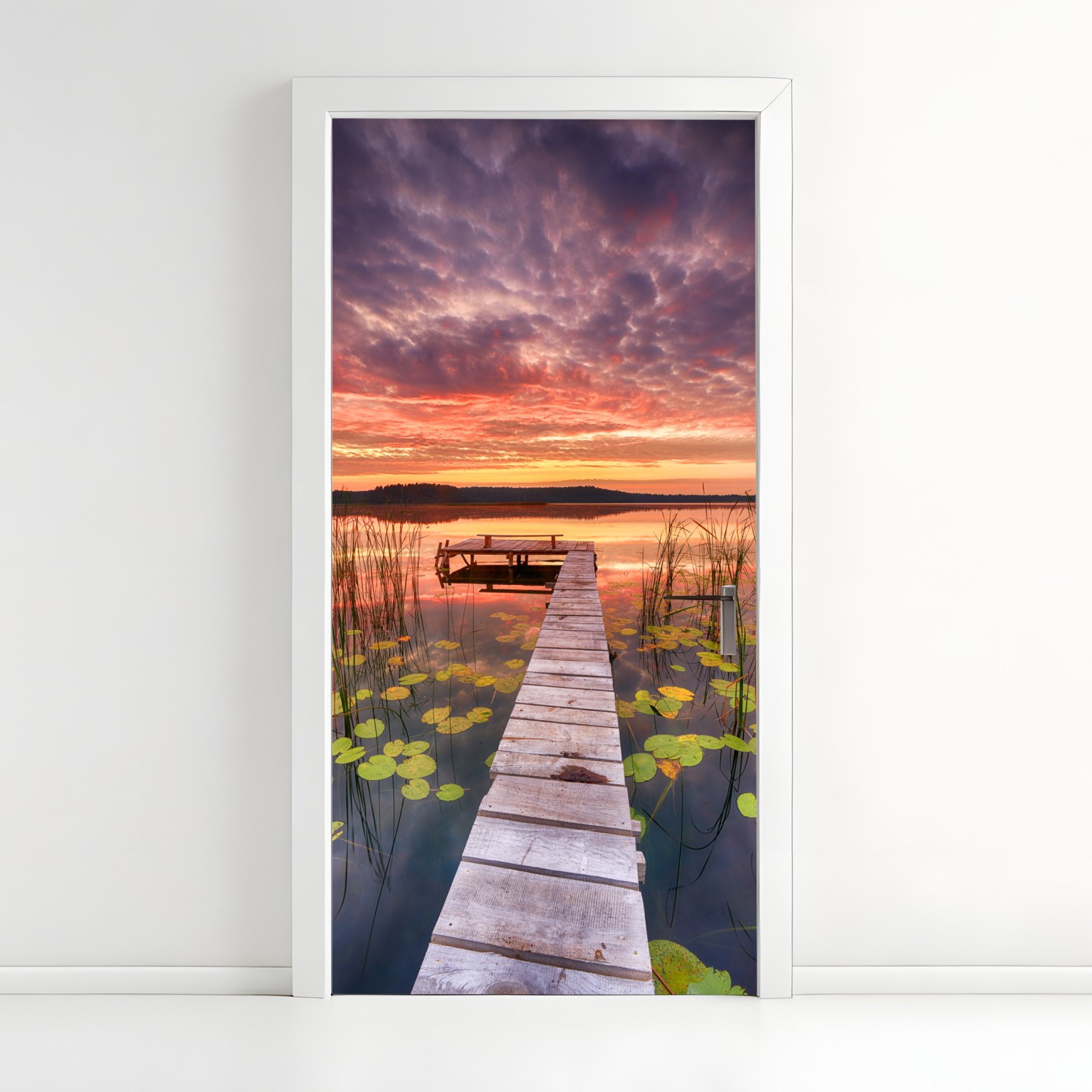 Naklejka na drzwi Wschód słońca nad spokojnym jeziorem