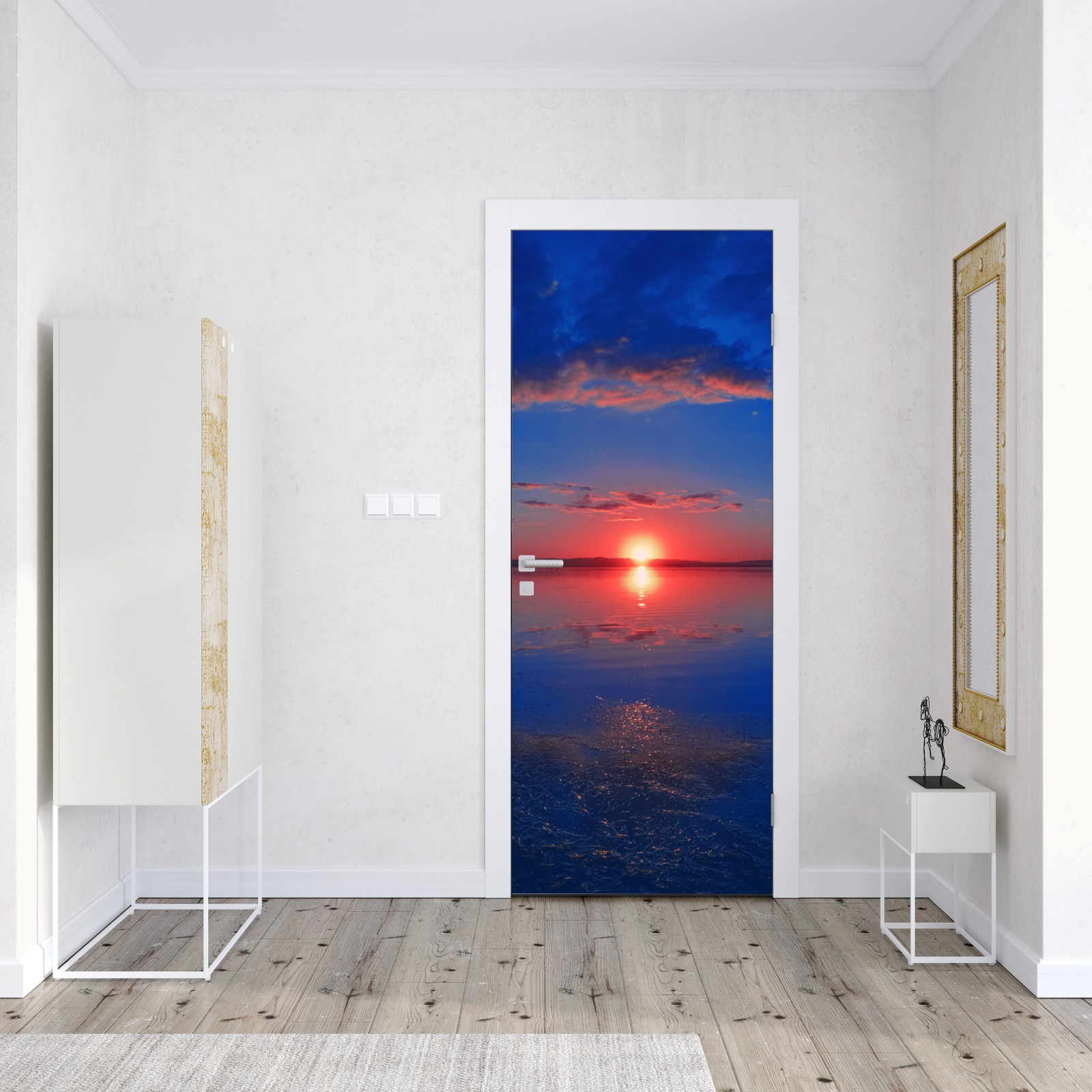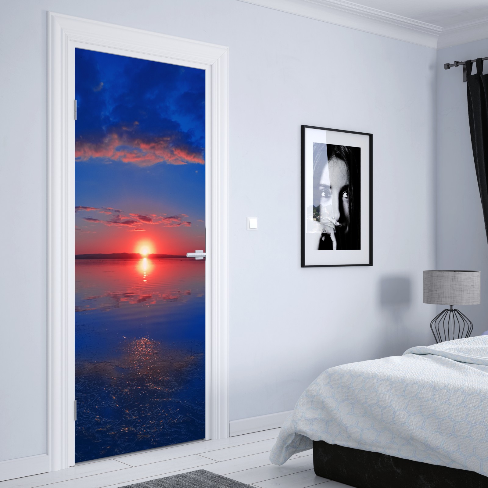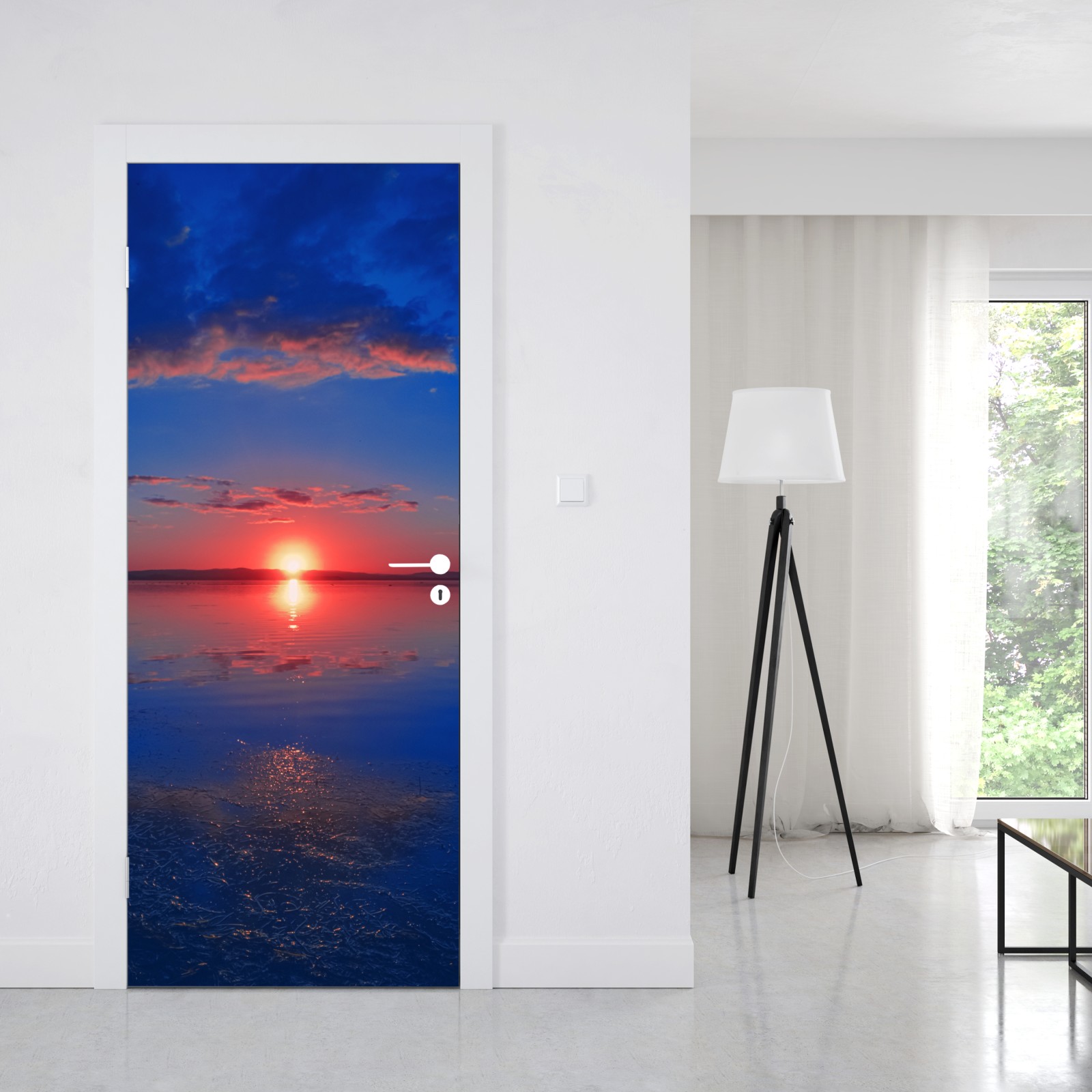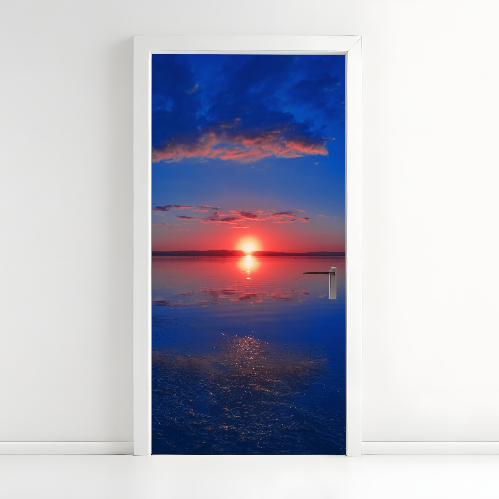 Naklejka na drzwi Zachód słońca nad spokojnym morzem z żywym odbiciem