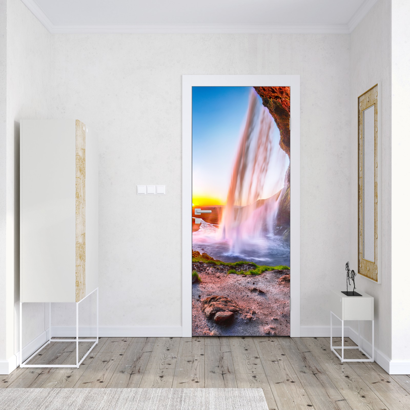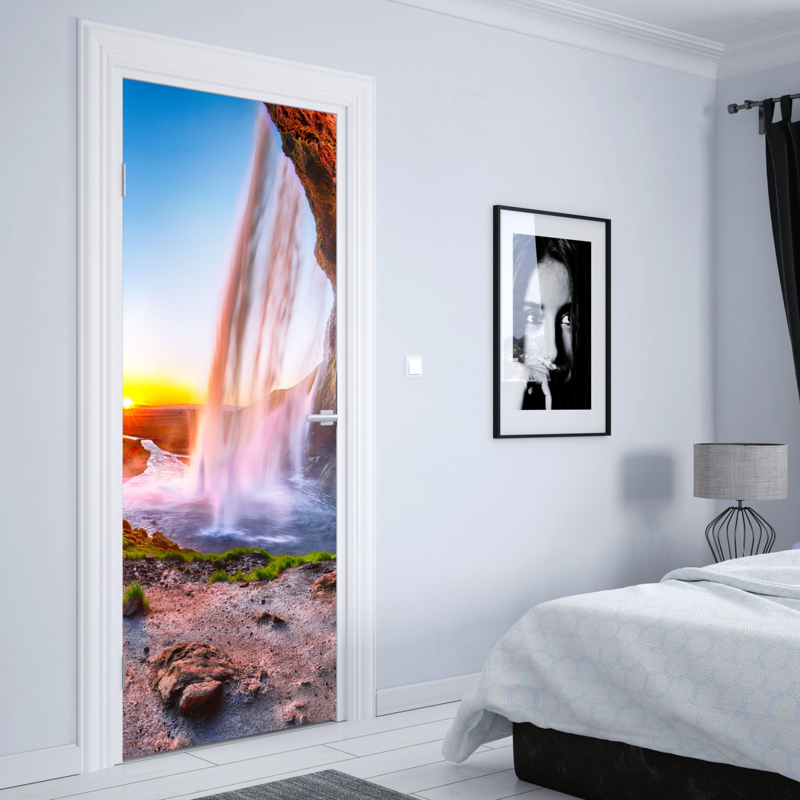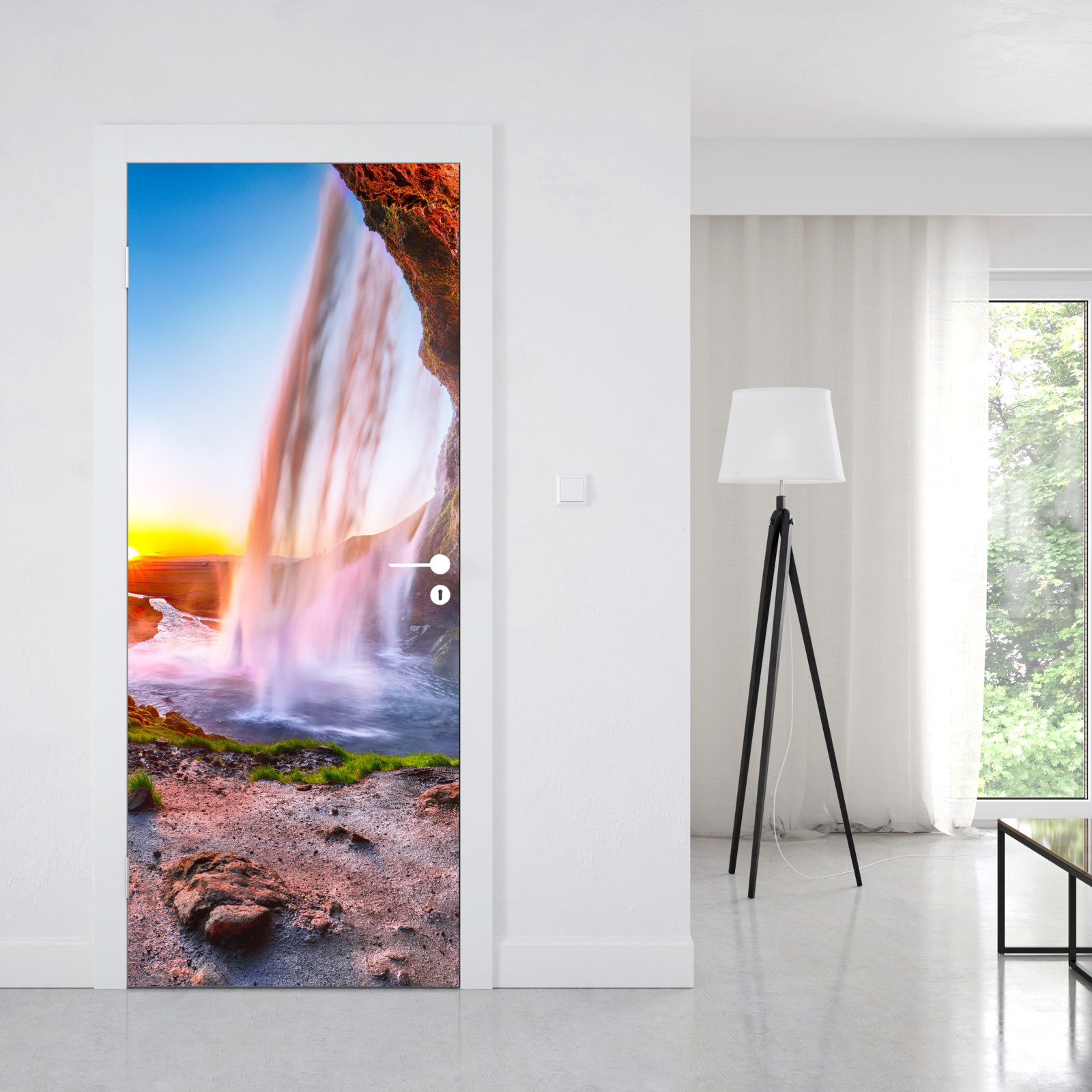 Naklejka na drzwi Seljalandsfoss wodospad o zachodzie słońca