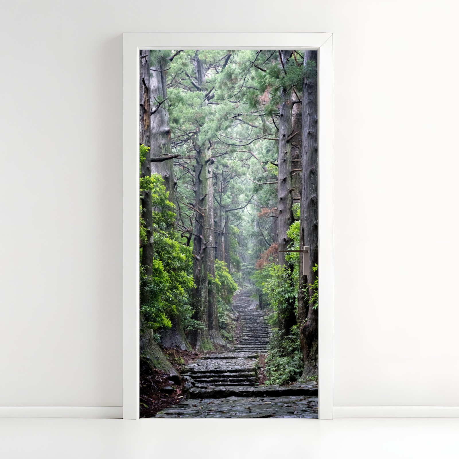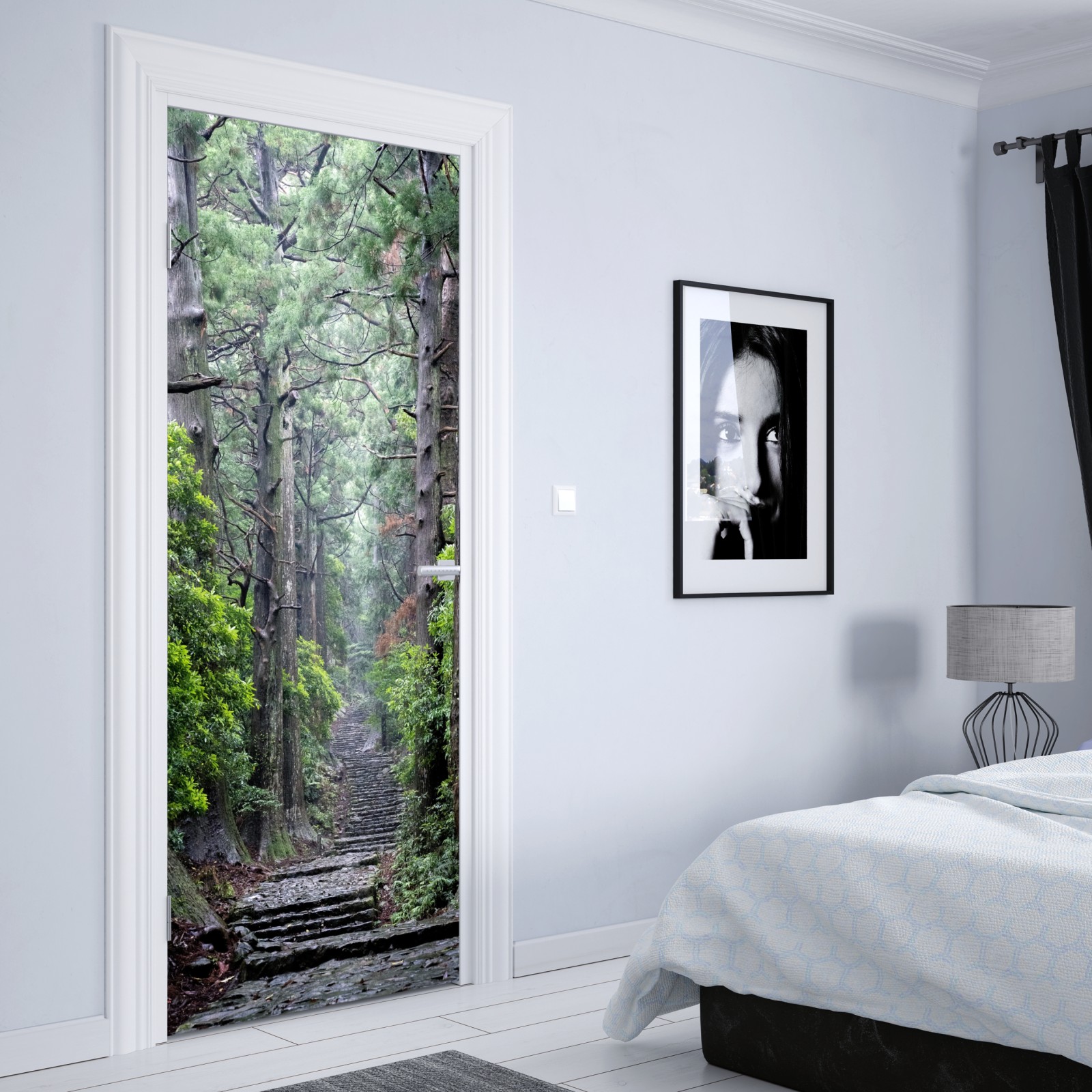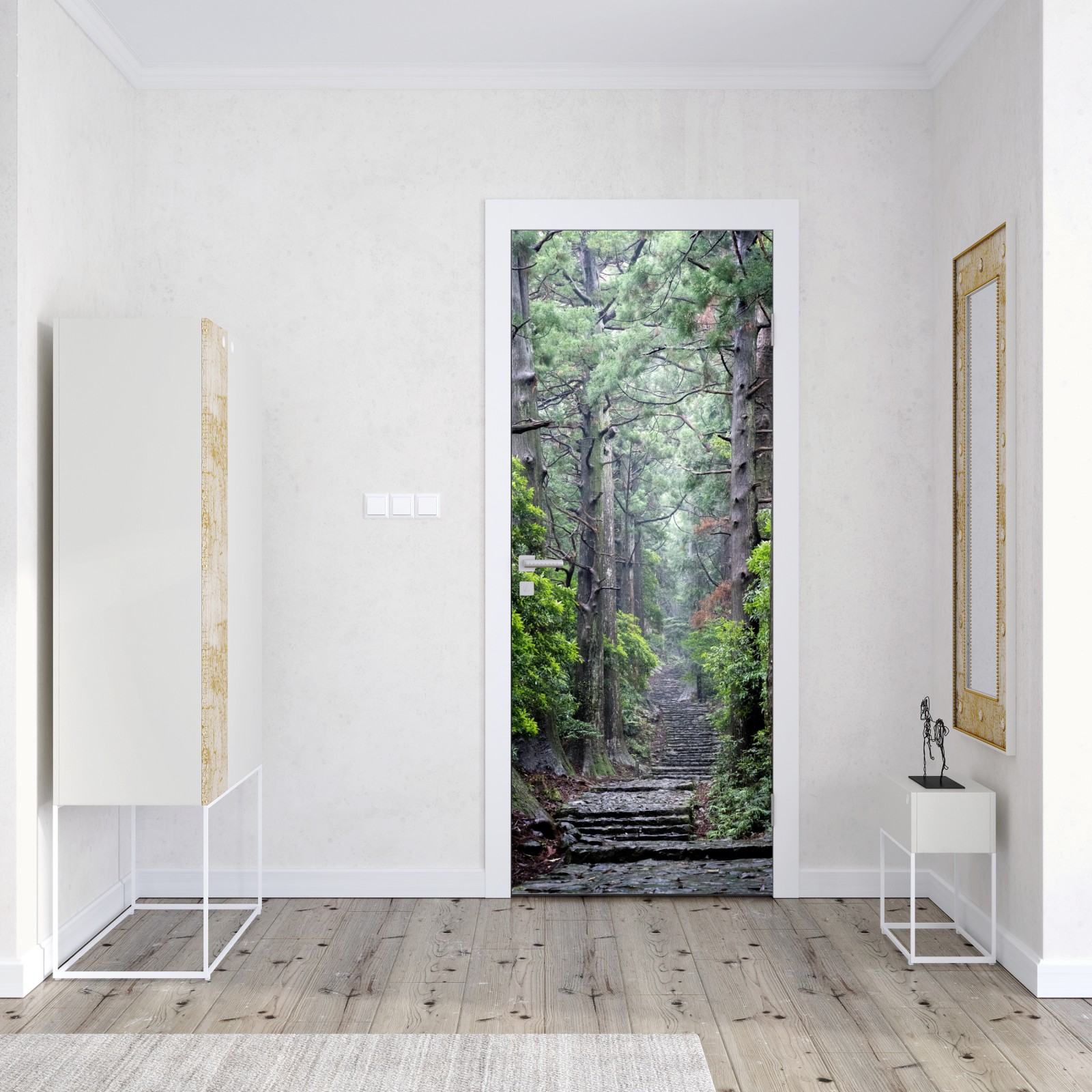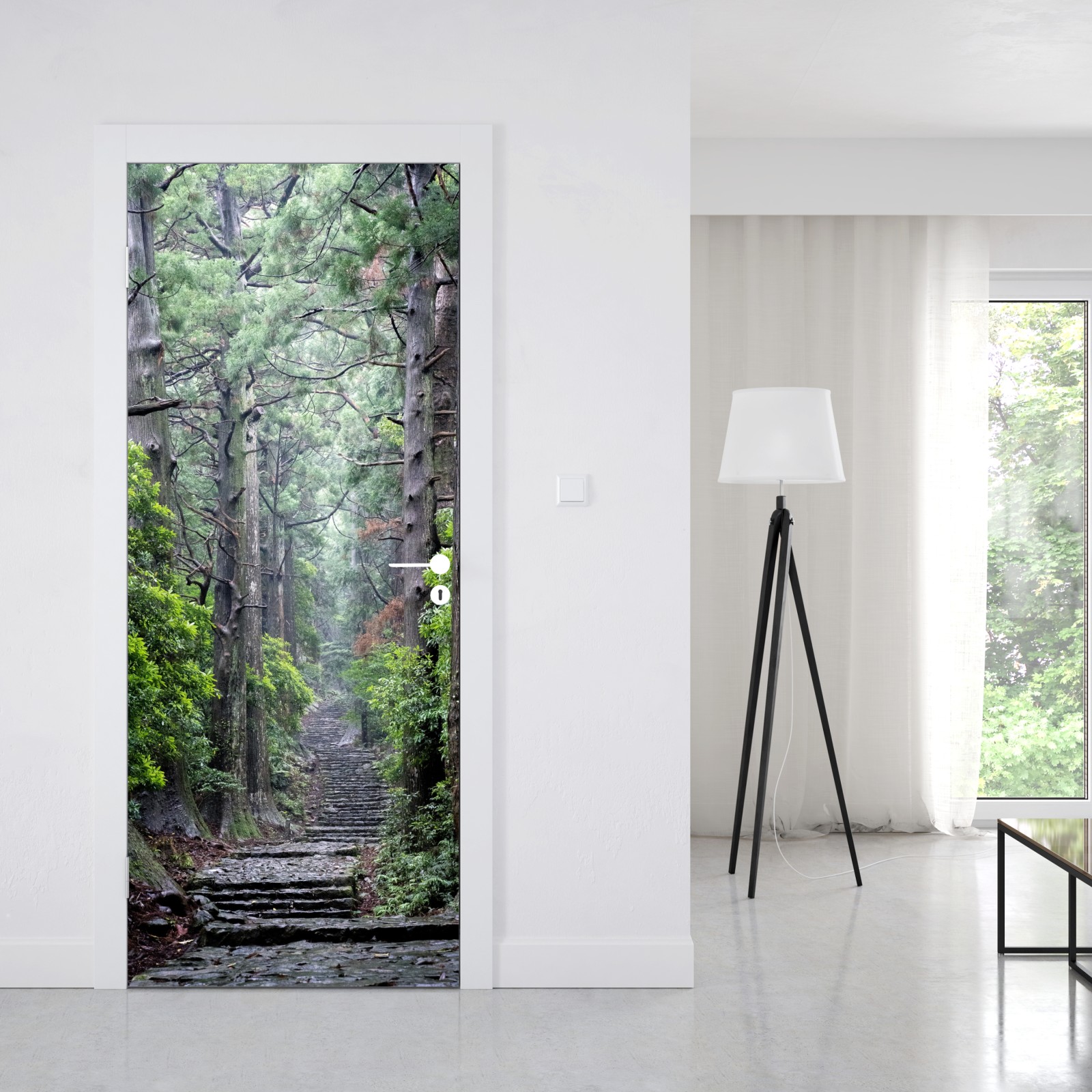 Naklejka na drzwi Mistyczna ścieżka leśna między starymi drzewami