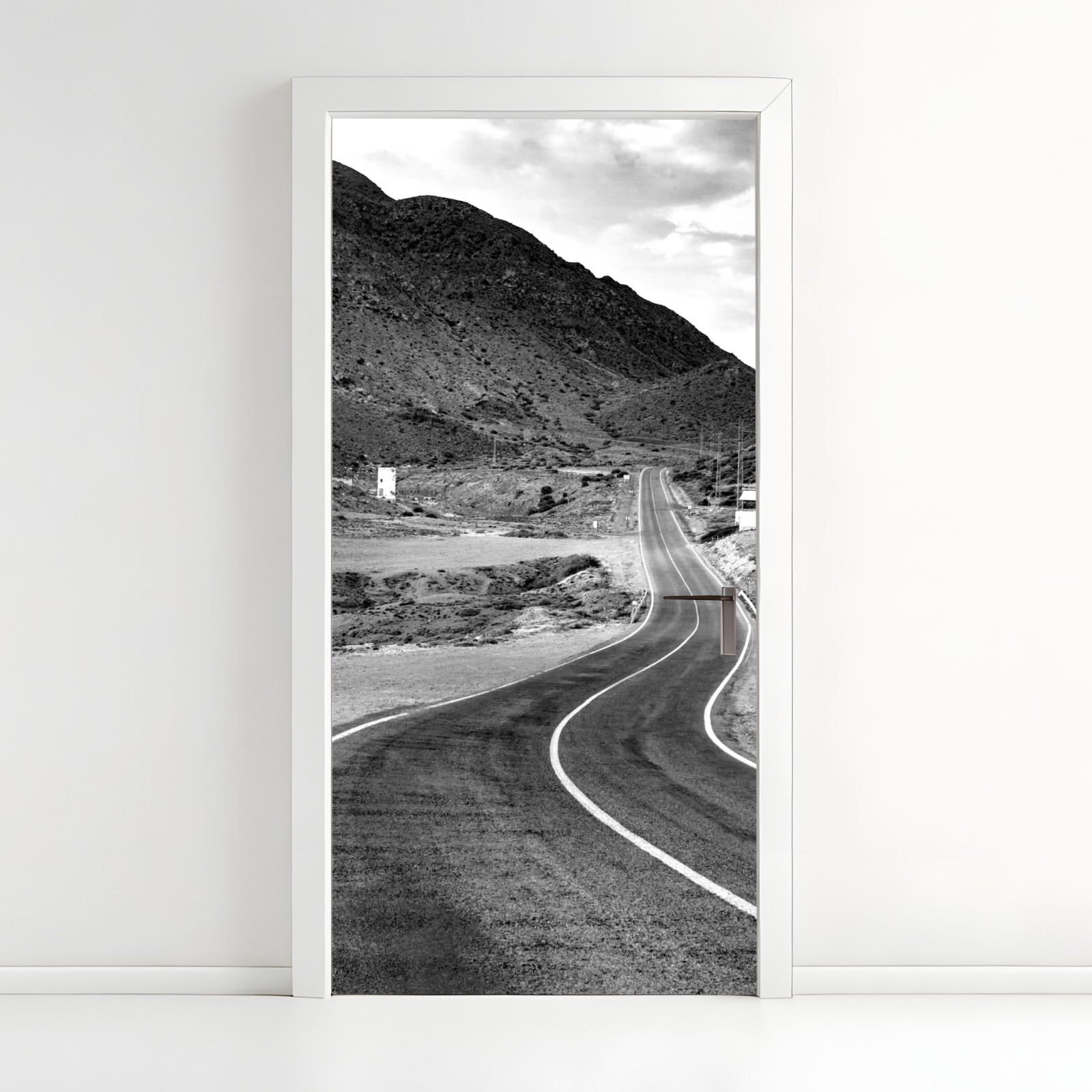 Wprowadź do wnętrza spokojny czarno-biały krajobraz z tą urokliwą fotografią krętej drogi, idealną do minimalistycznych aranżacji i dla miłośników podróży.