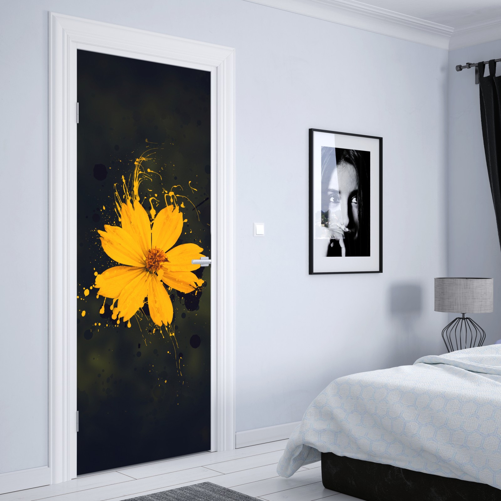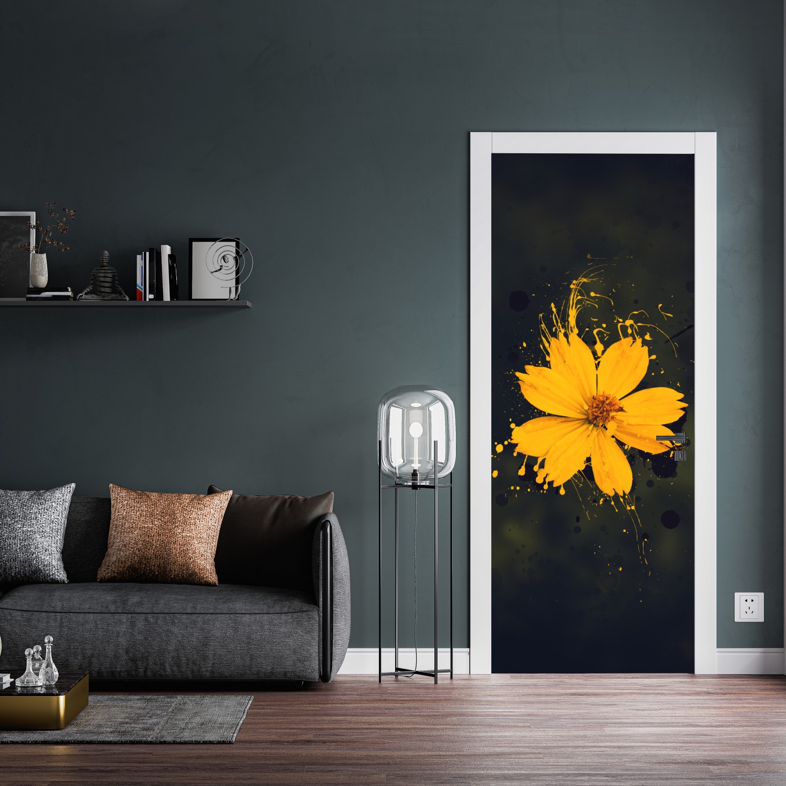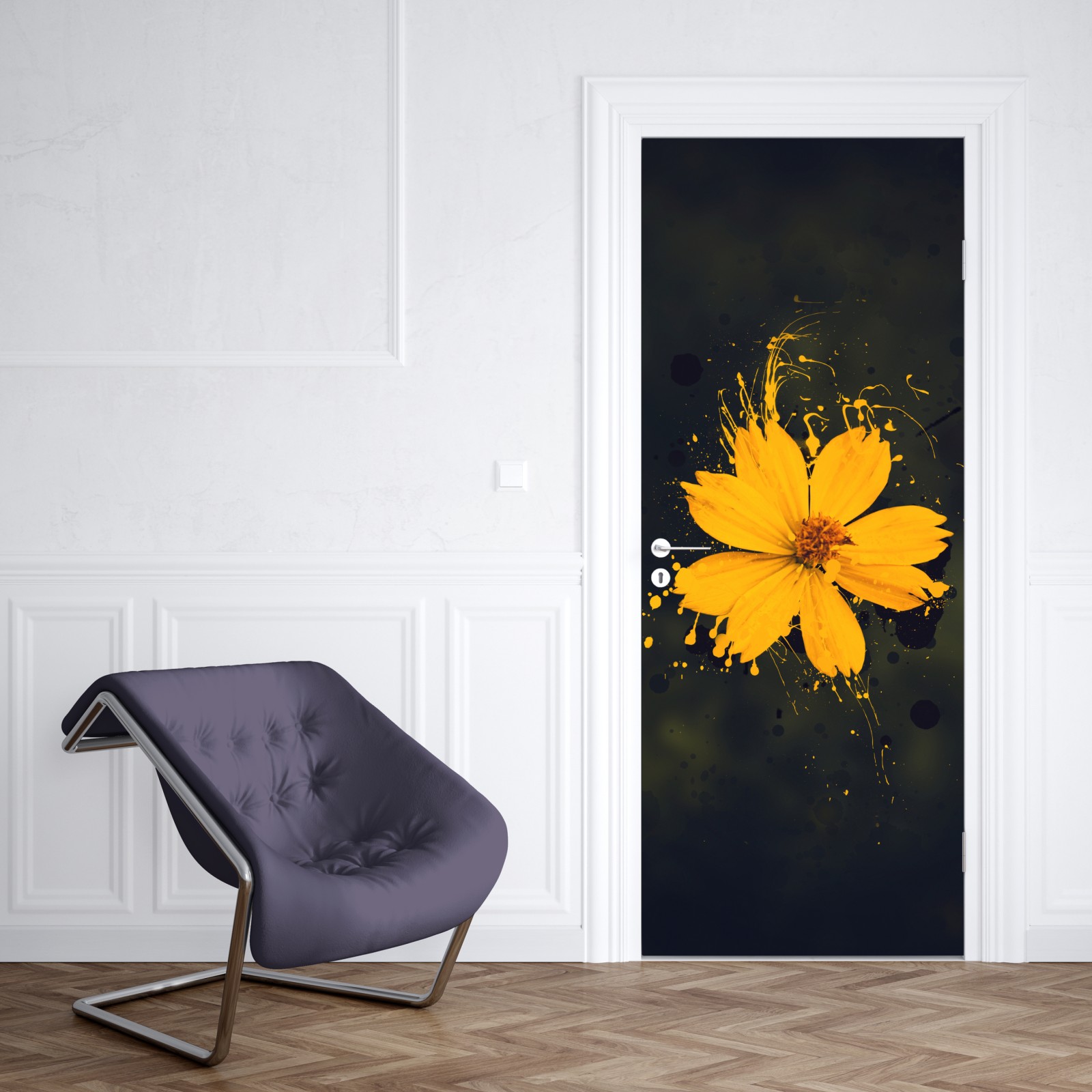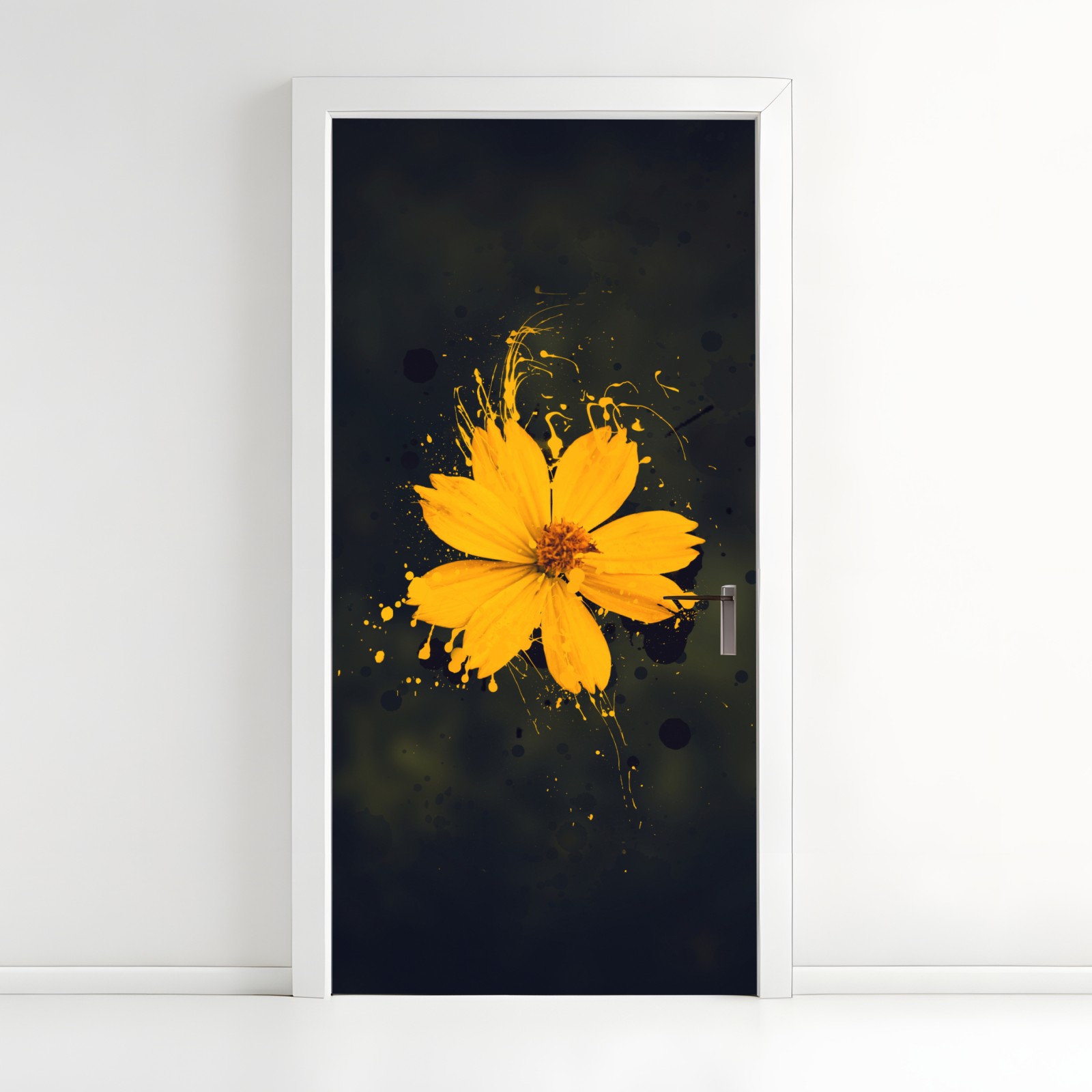 Naklejka na drzwi Intensywny żółty kwiat na ciemnym tle