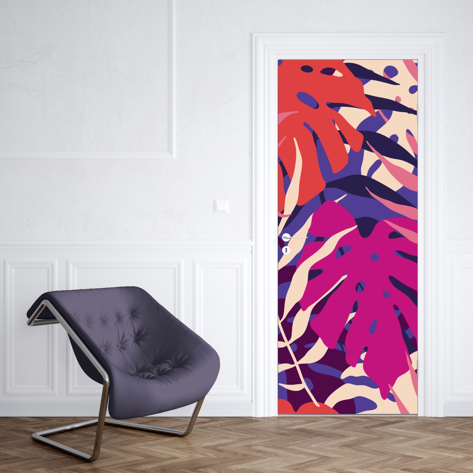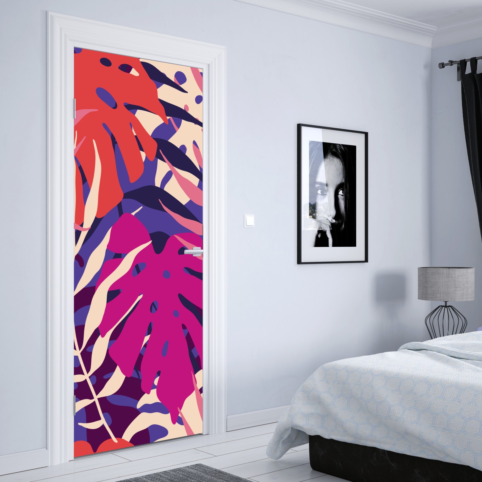 Naklejka na drzwi Pastelowy tropikalny wzór liści