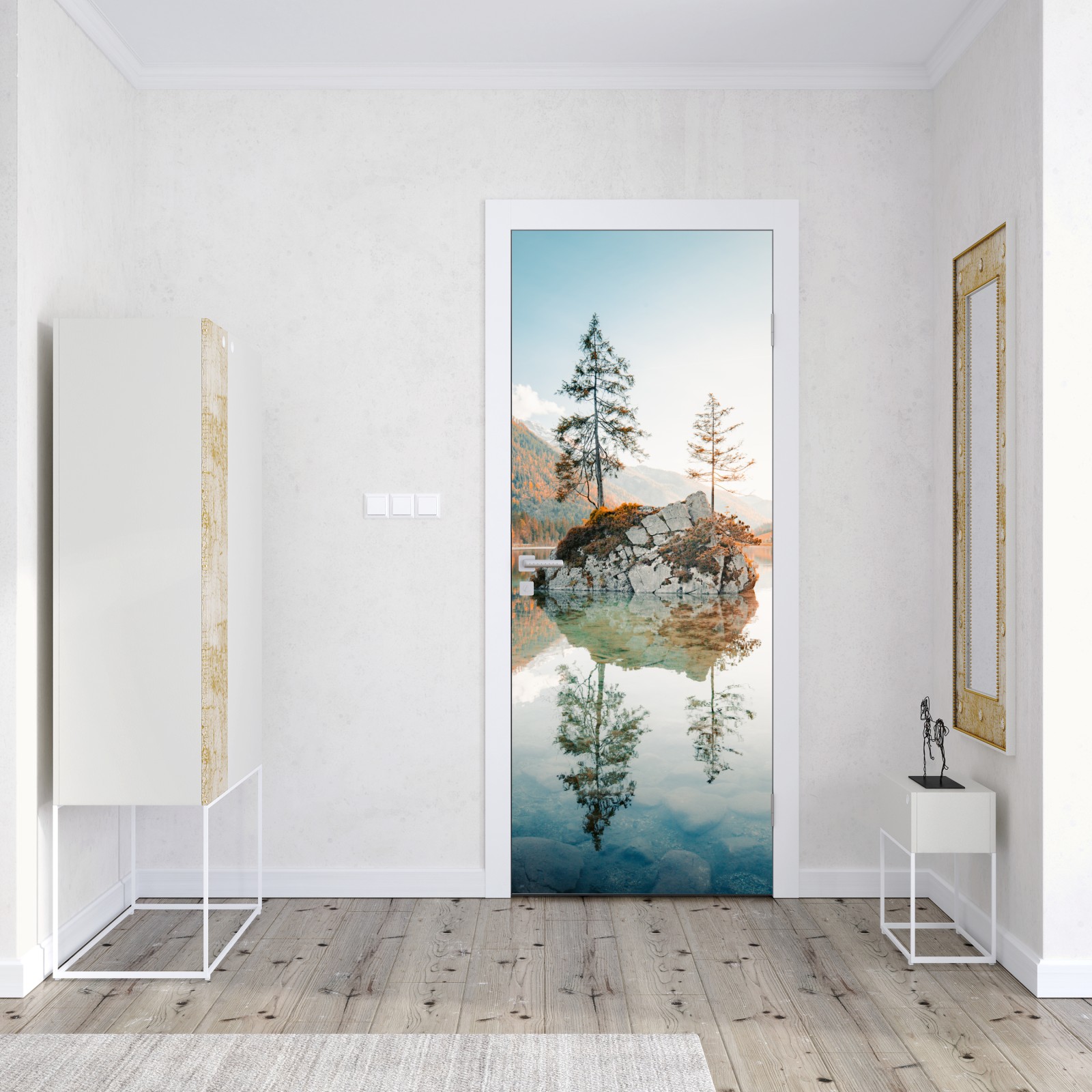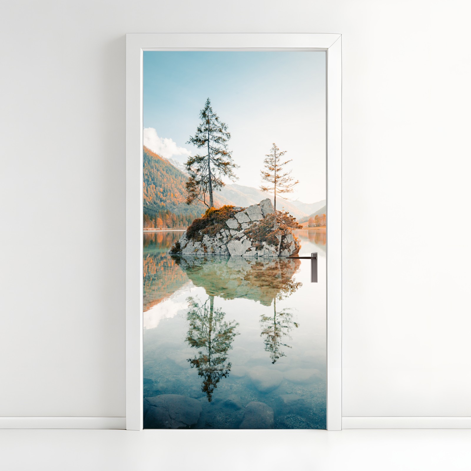 Naklejka na drzwi Słoneczna skalna wyspa nad jeziorem Hintersee