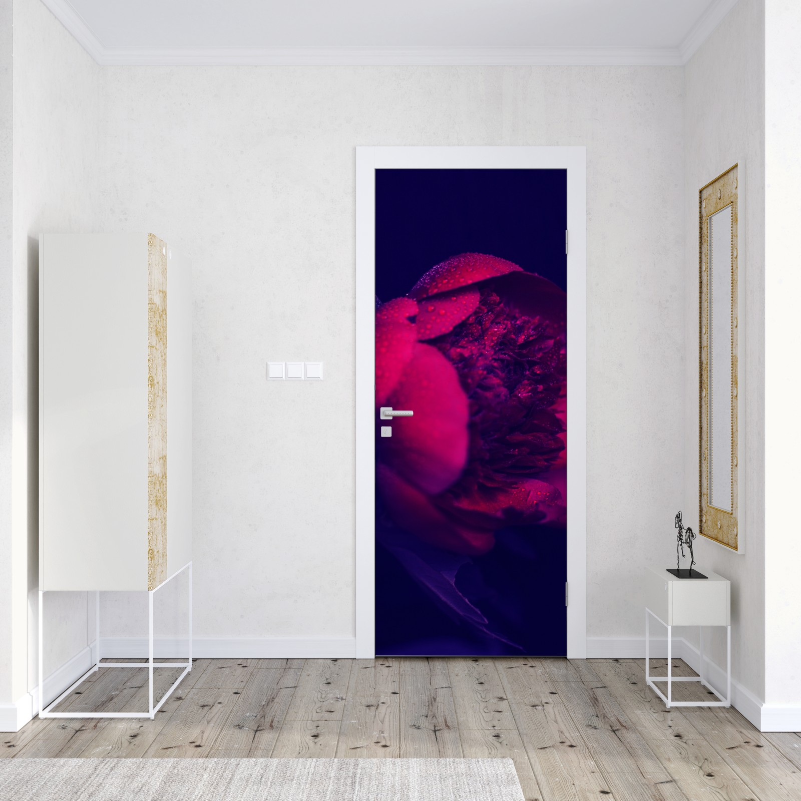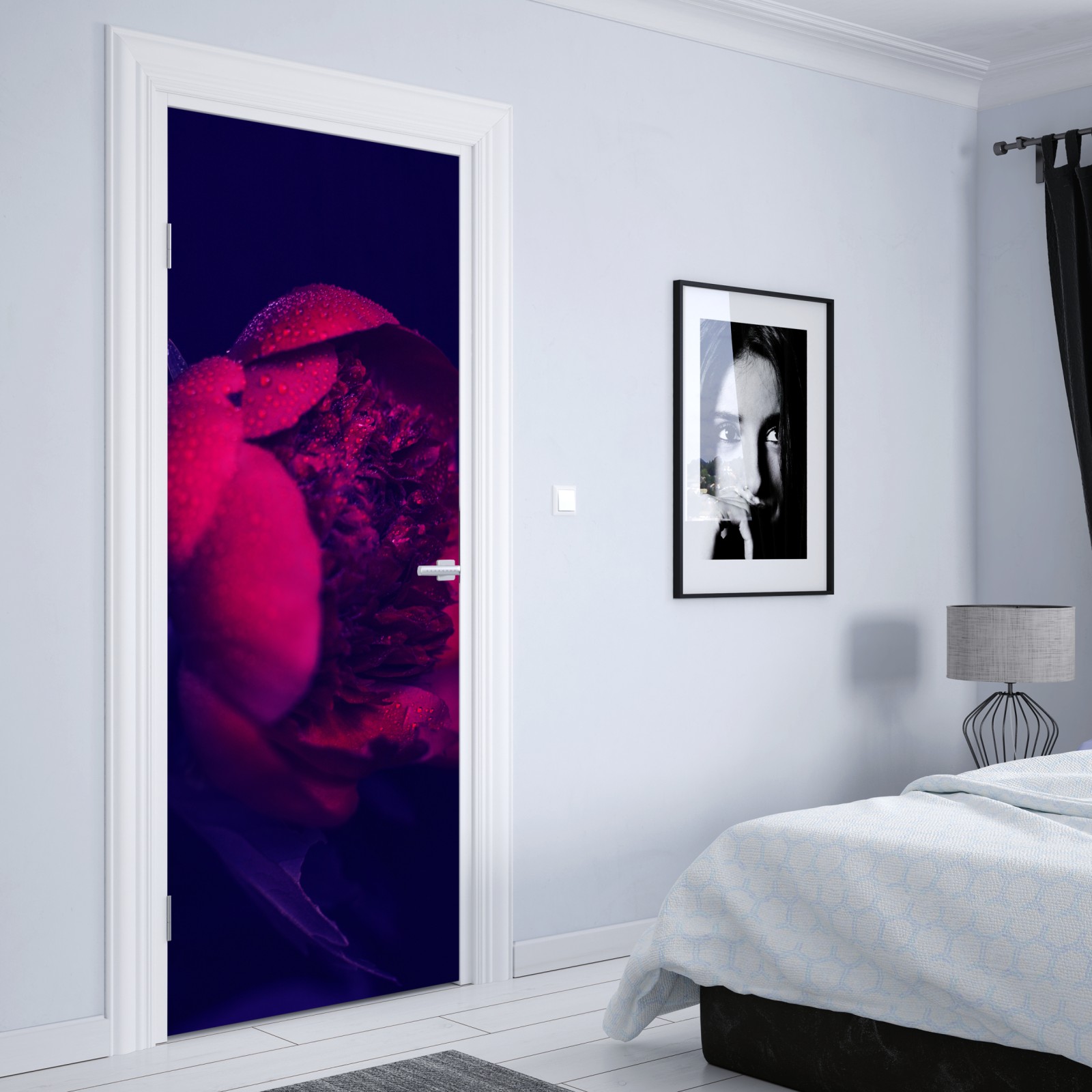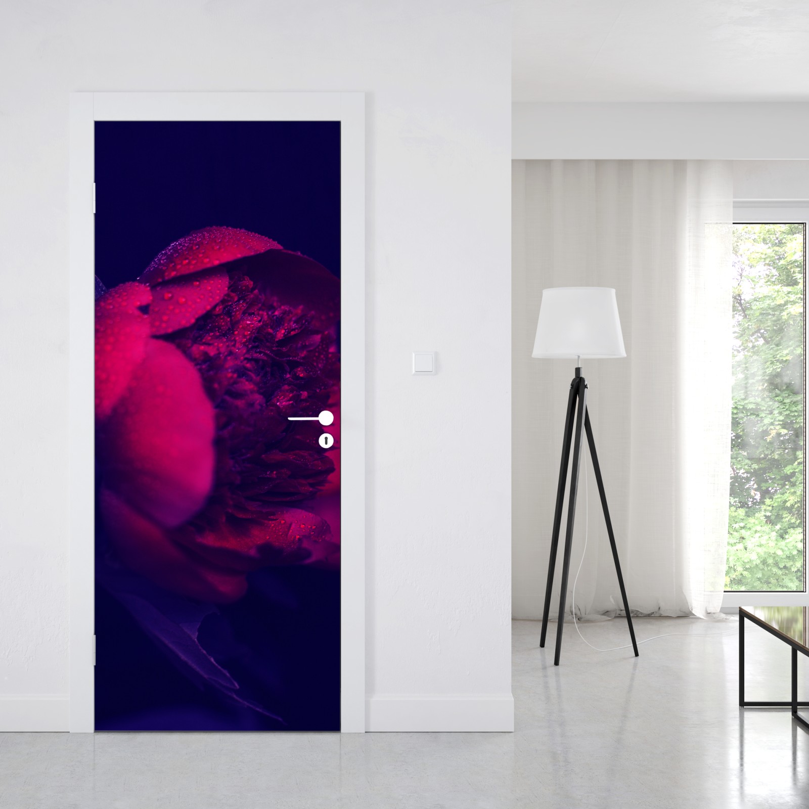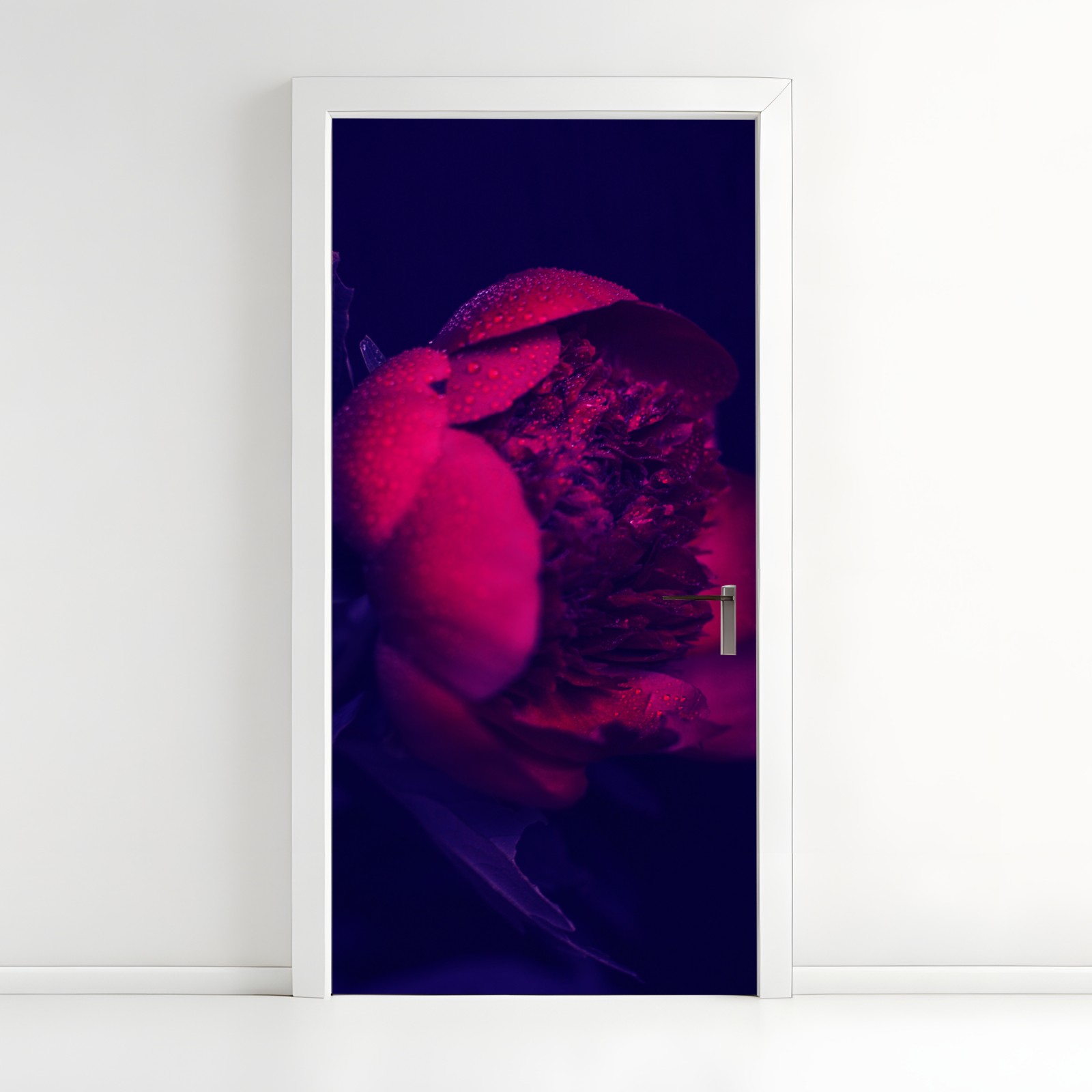 Naklejka na drzwi Nastrojowa różowa piwonia zbliżenie