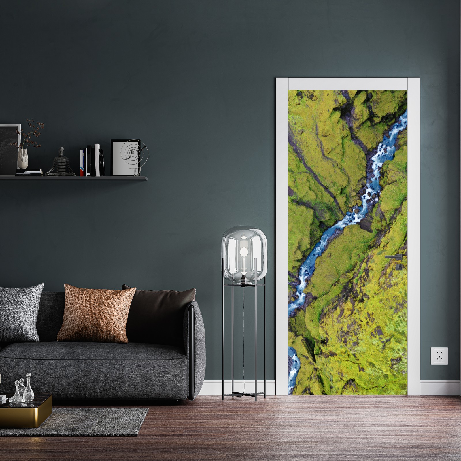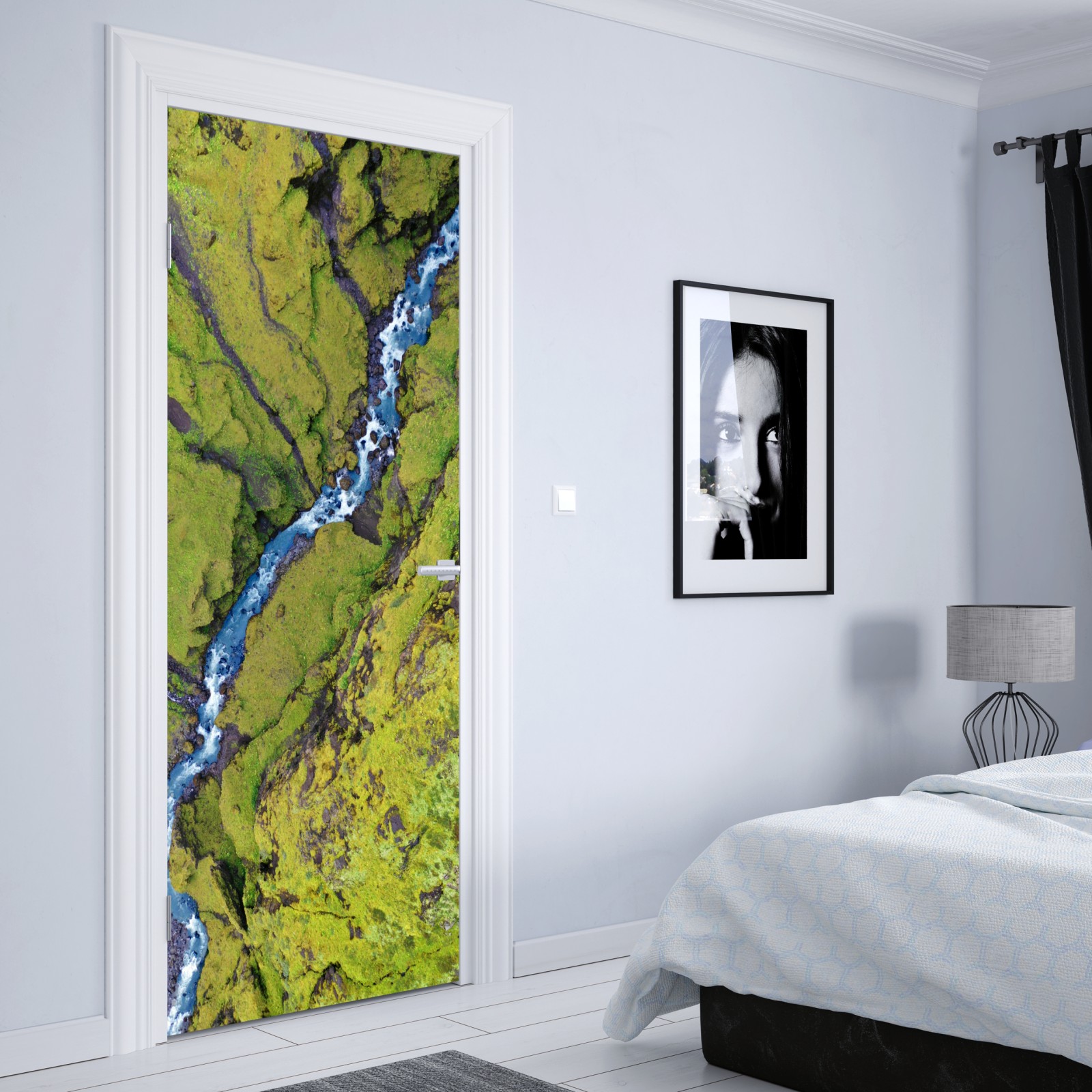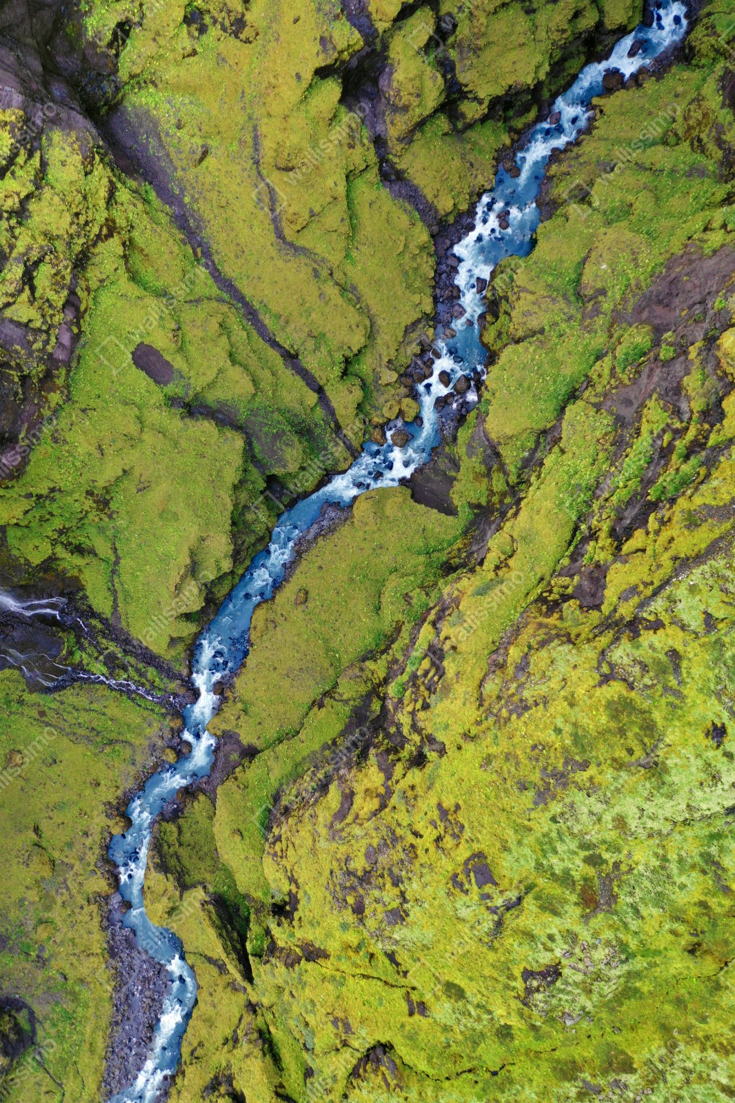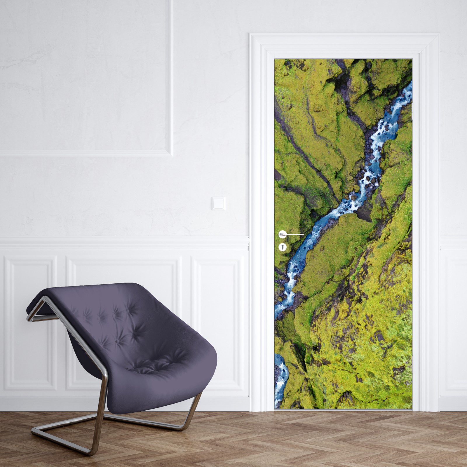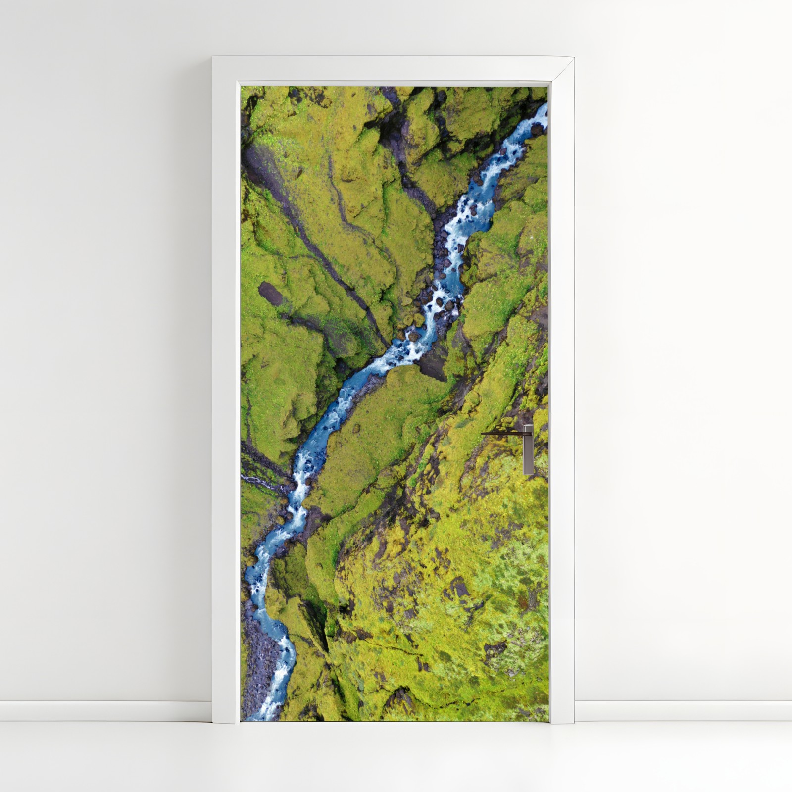 Naklejka na drzwi Rzeka z lotu ptaka w mchem porośniętym wąwozie