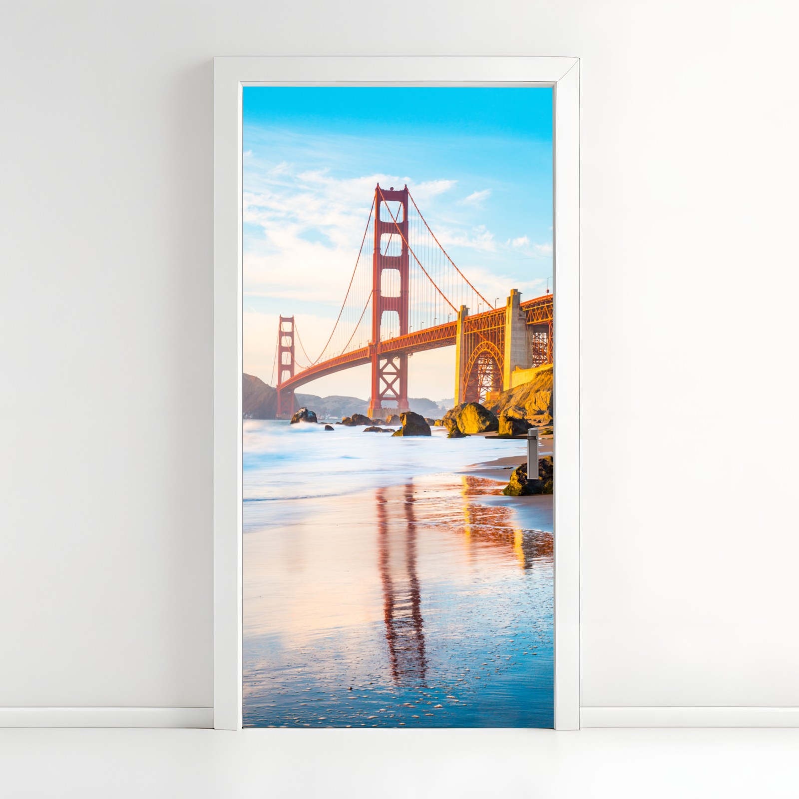 Wprowadź ikoniczny widok San Francisco do wnętrza dzięki żywemu ujęciu mostu Golden Gate z Baker Beach.
