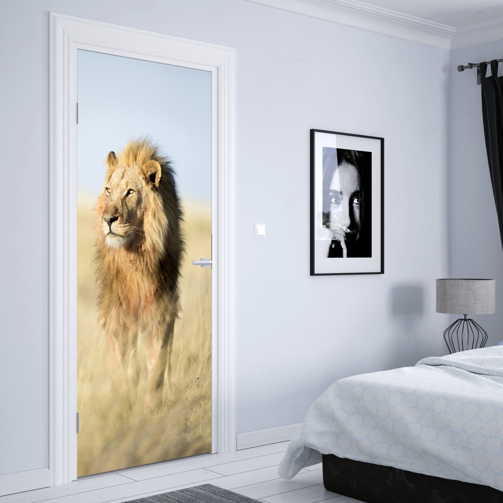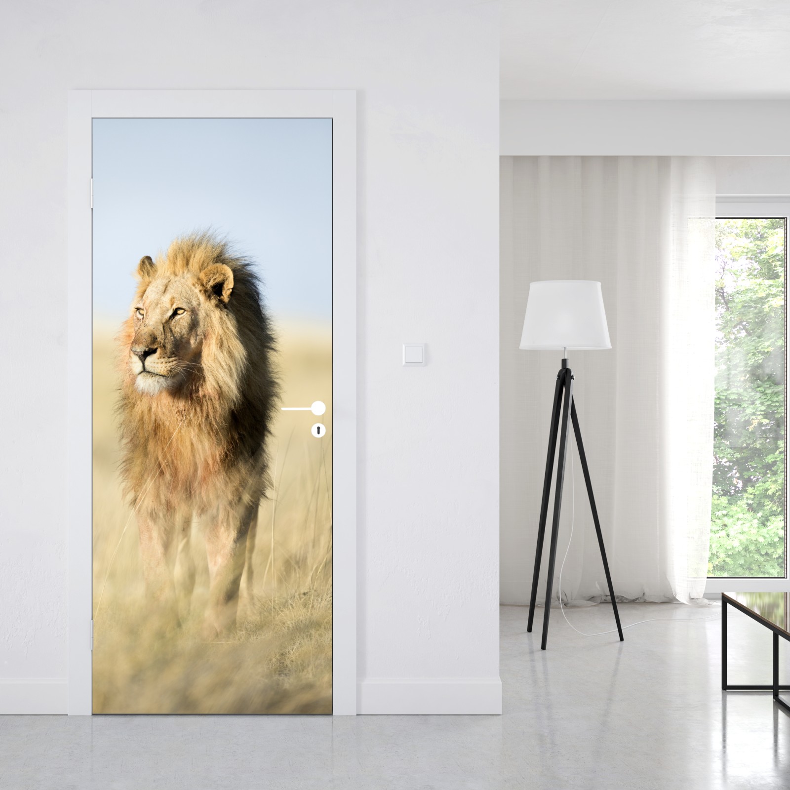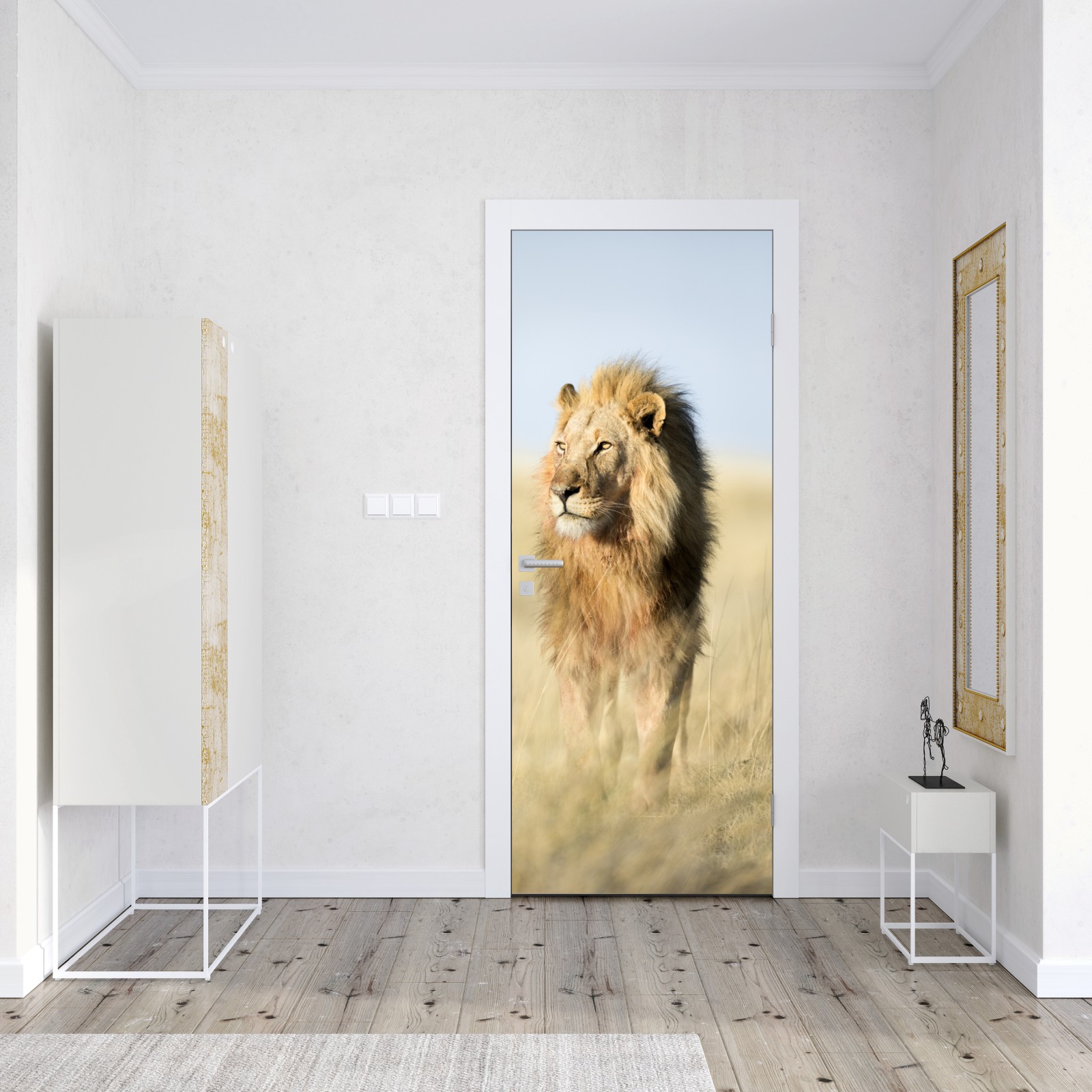 Naklejka na drzwi Majestatyczny lew na sawannie
