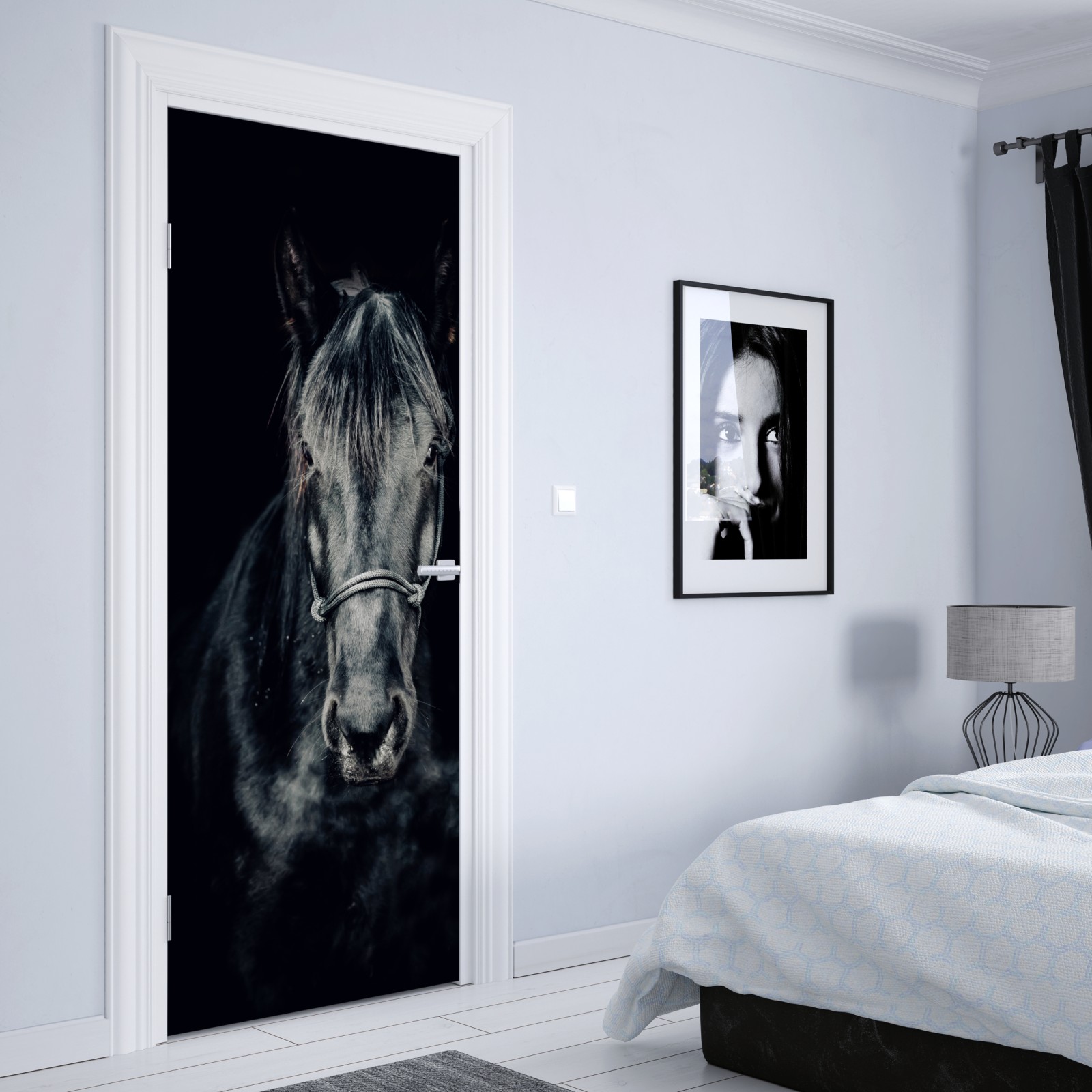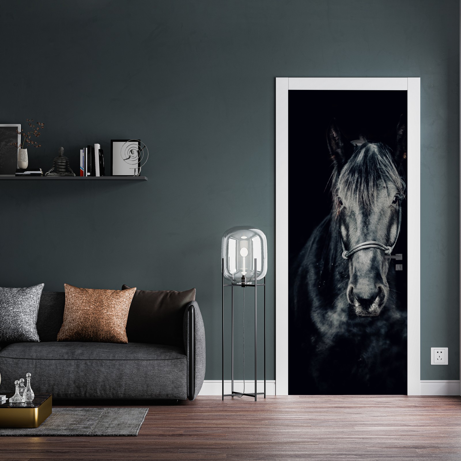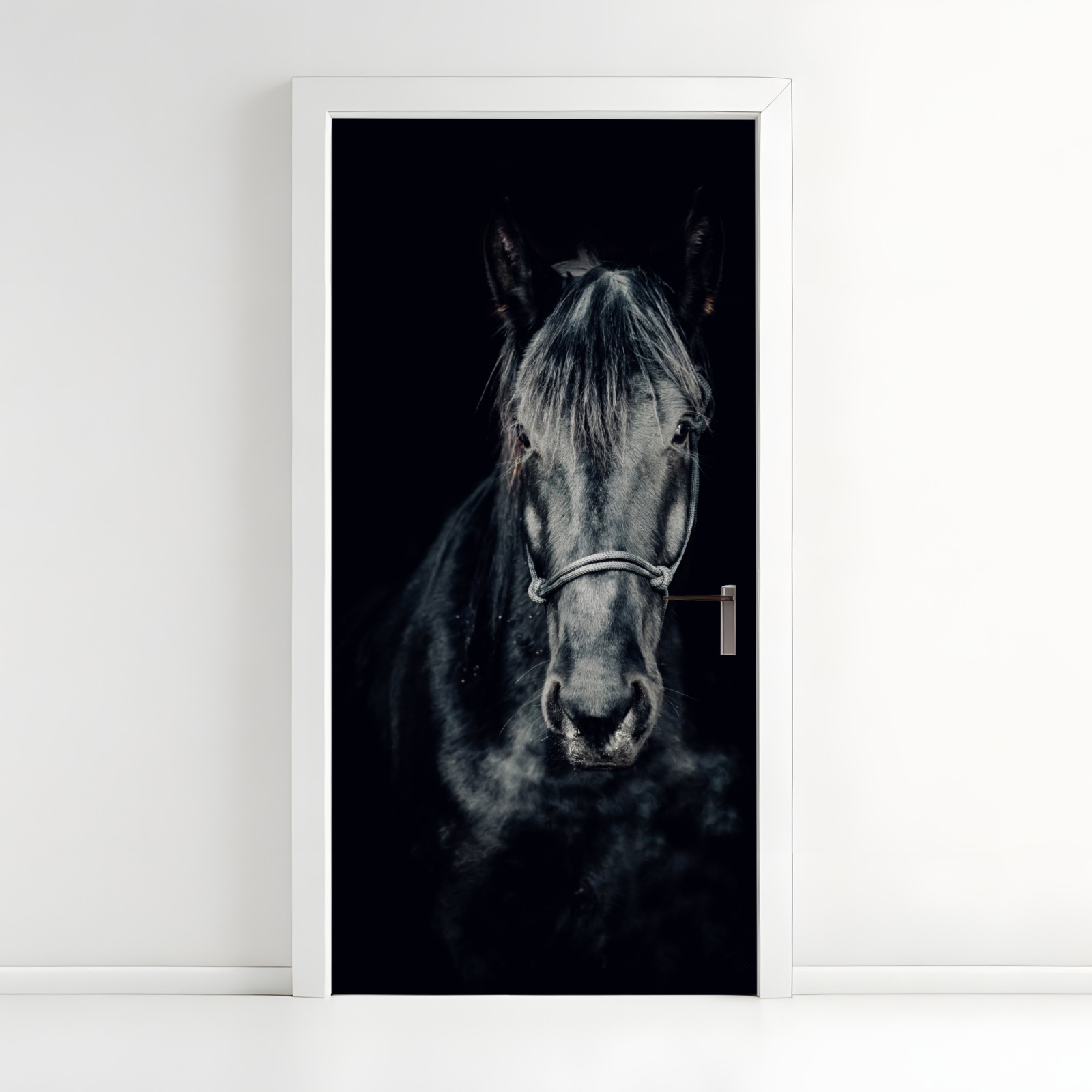 Naklejka na drzwi Majestatyczny czarny portret konia