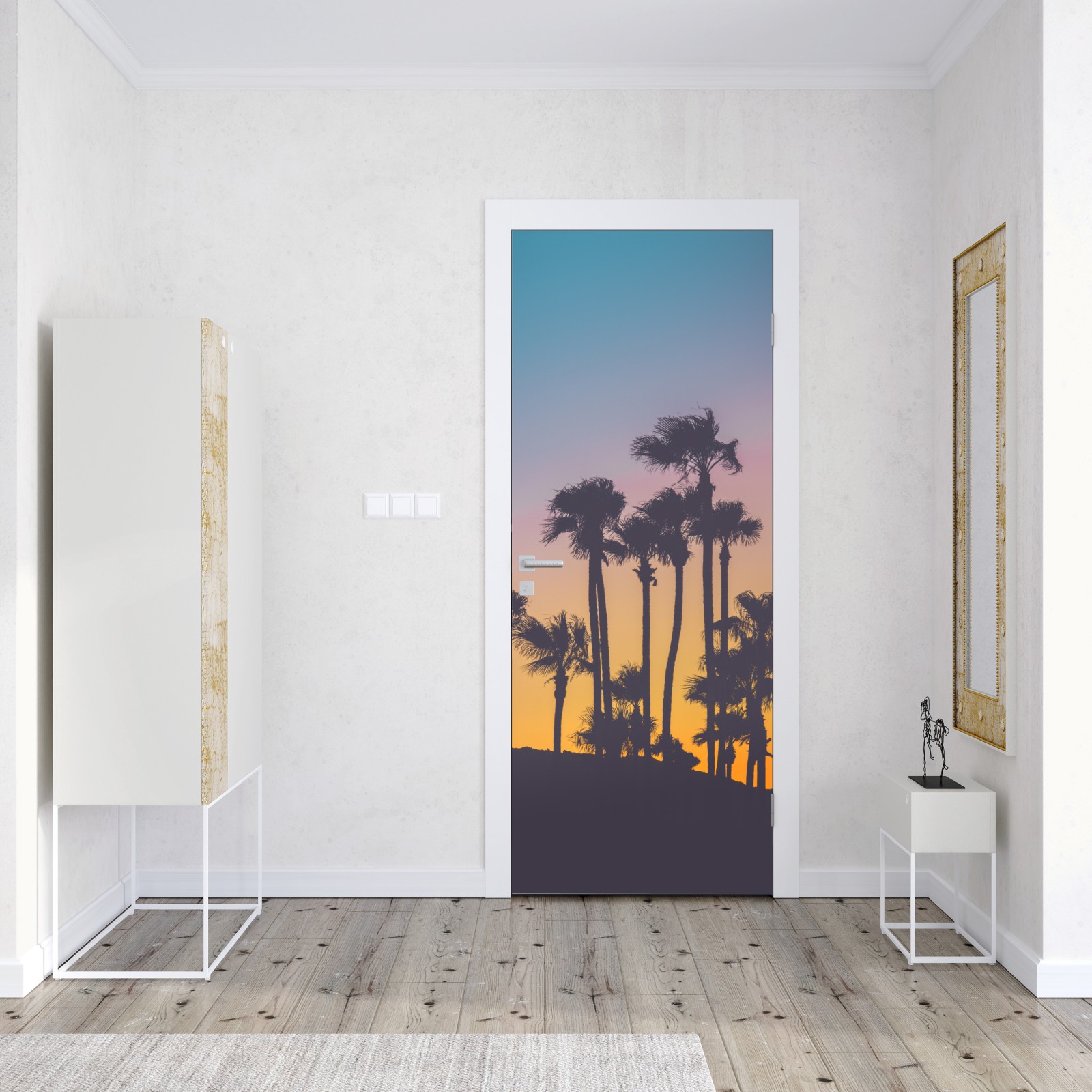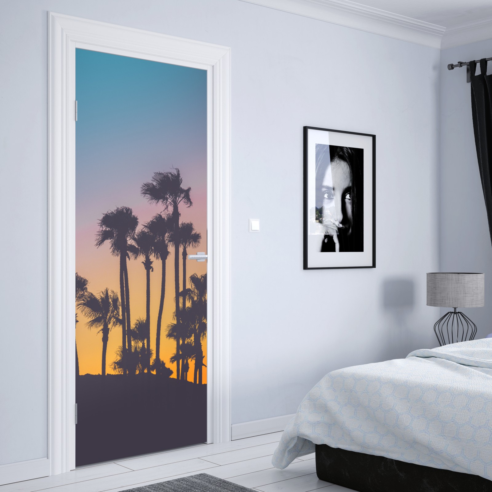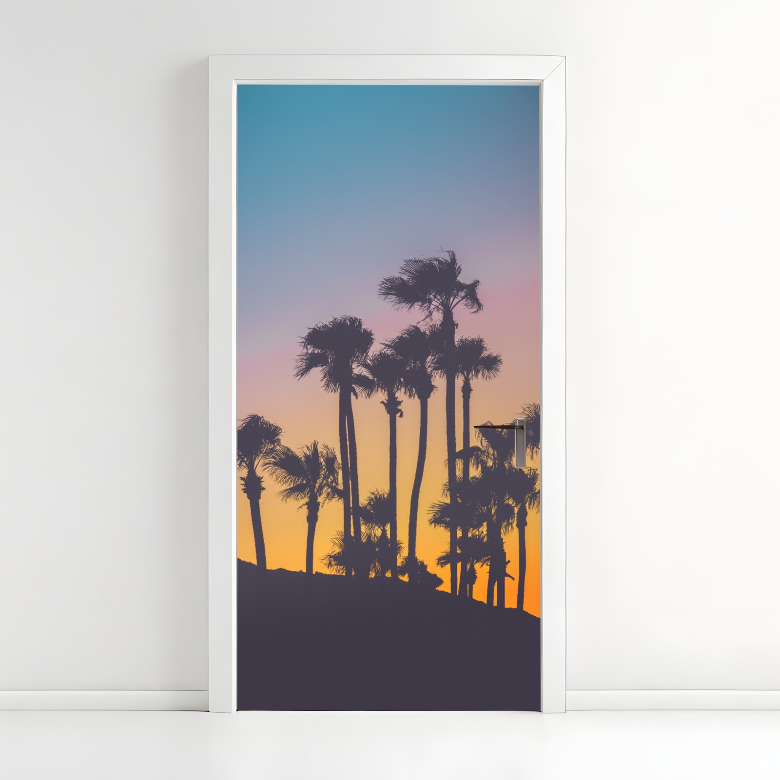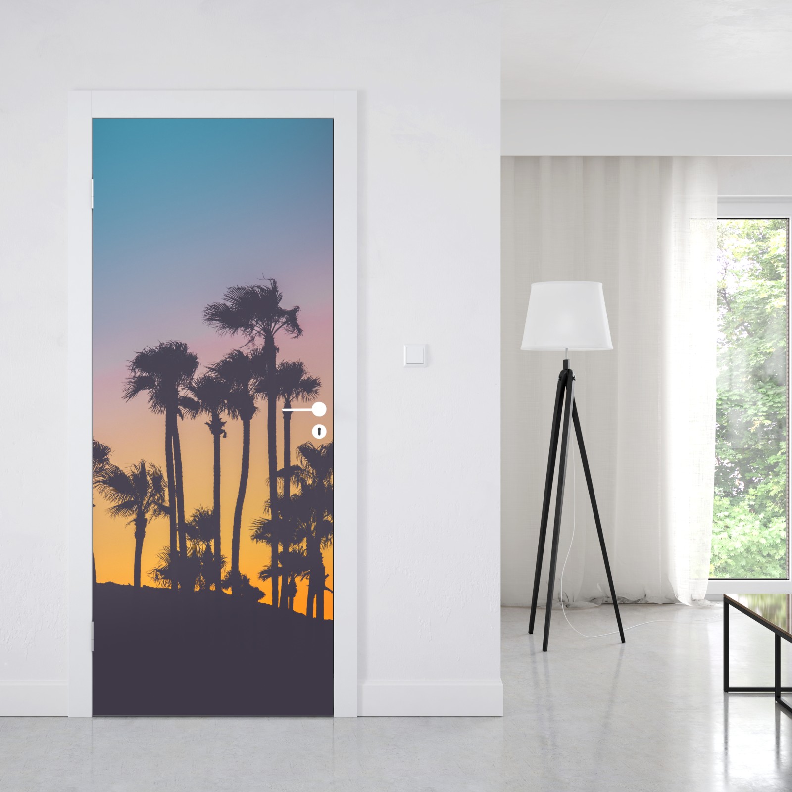 Naklejka na drzwi Retro tropikalne palmy o zachodzie słońca
