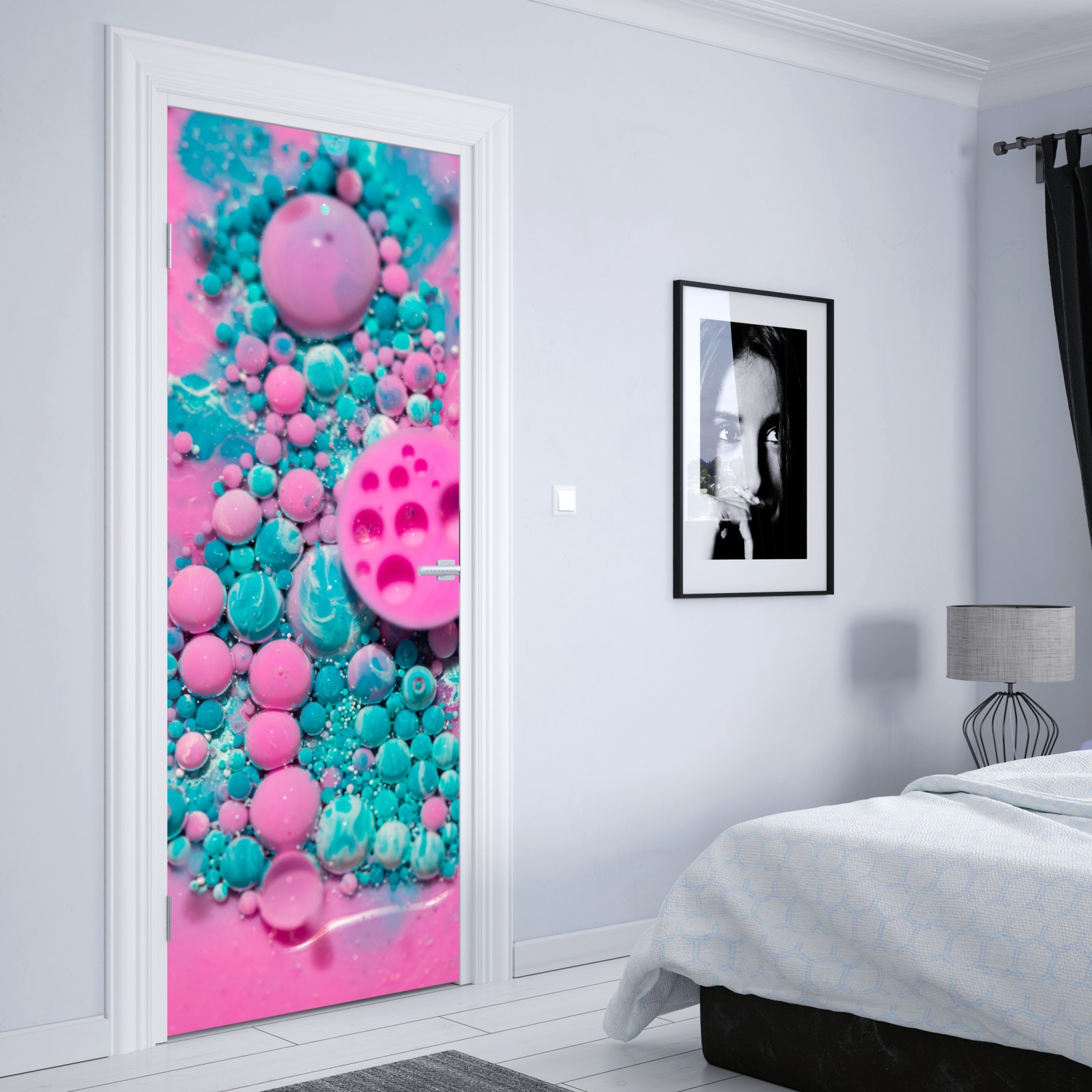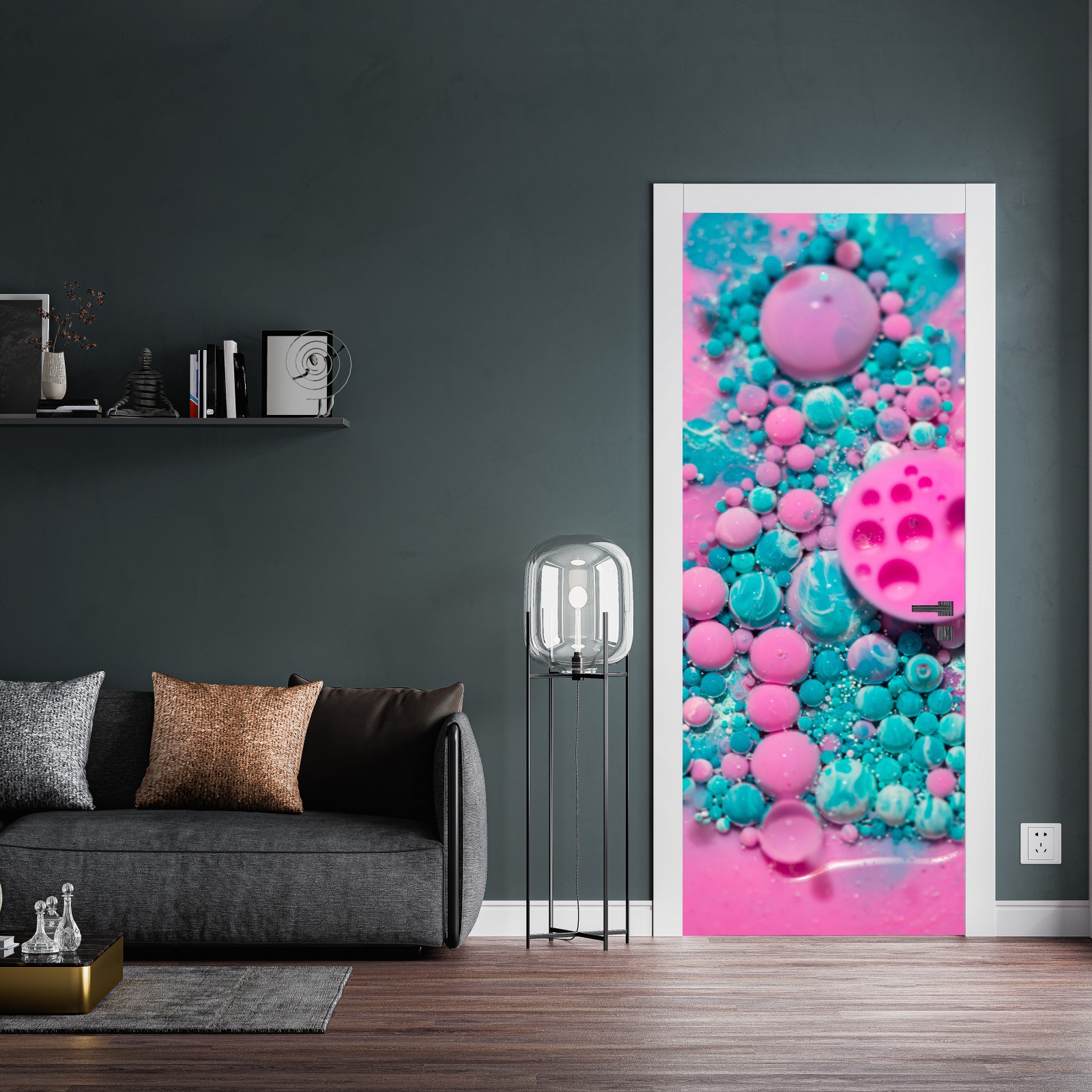 Naklejka na drzwi Różowy i turkusowy marmur abstrakcyjny