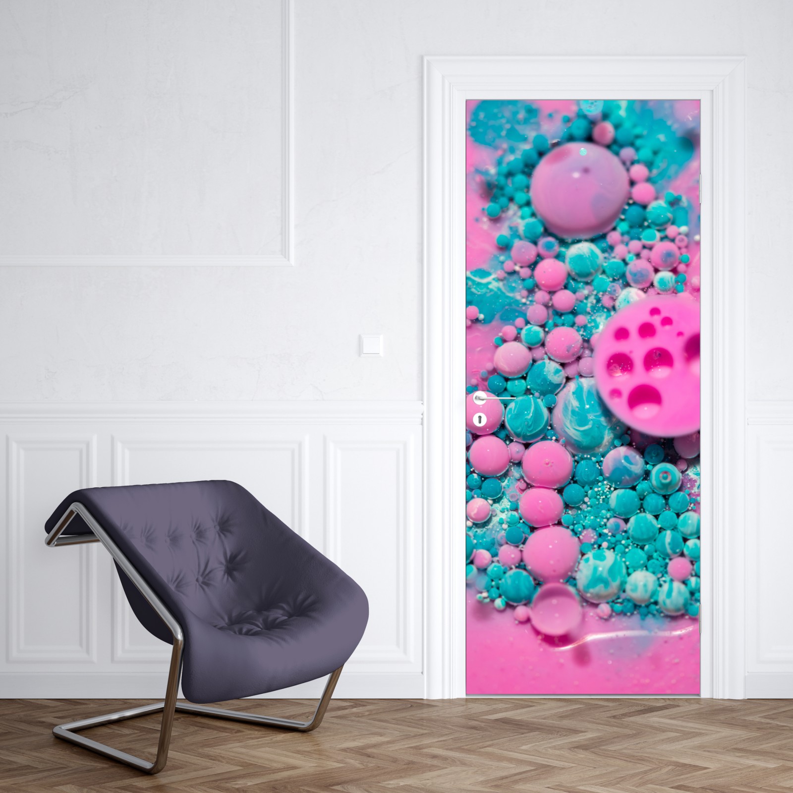 Ożyw swoją przestrzeń tym żywym różowo-turkusowym marmurowym obrazem o płynnych wzorach i zabawnych bąbelkach.