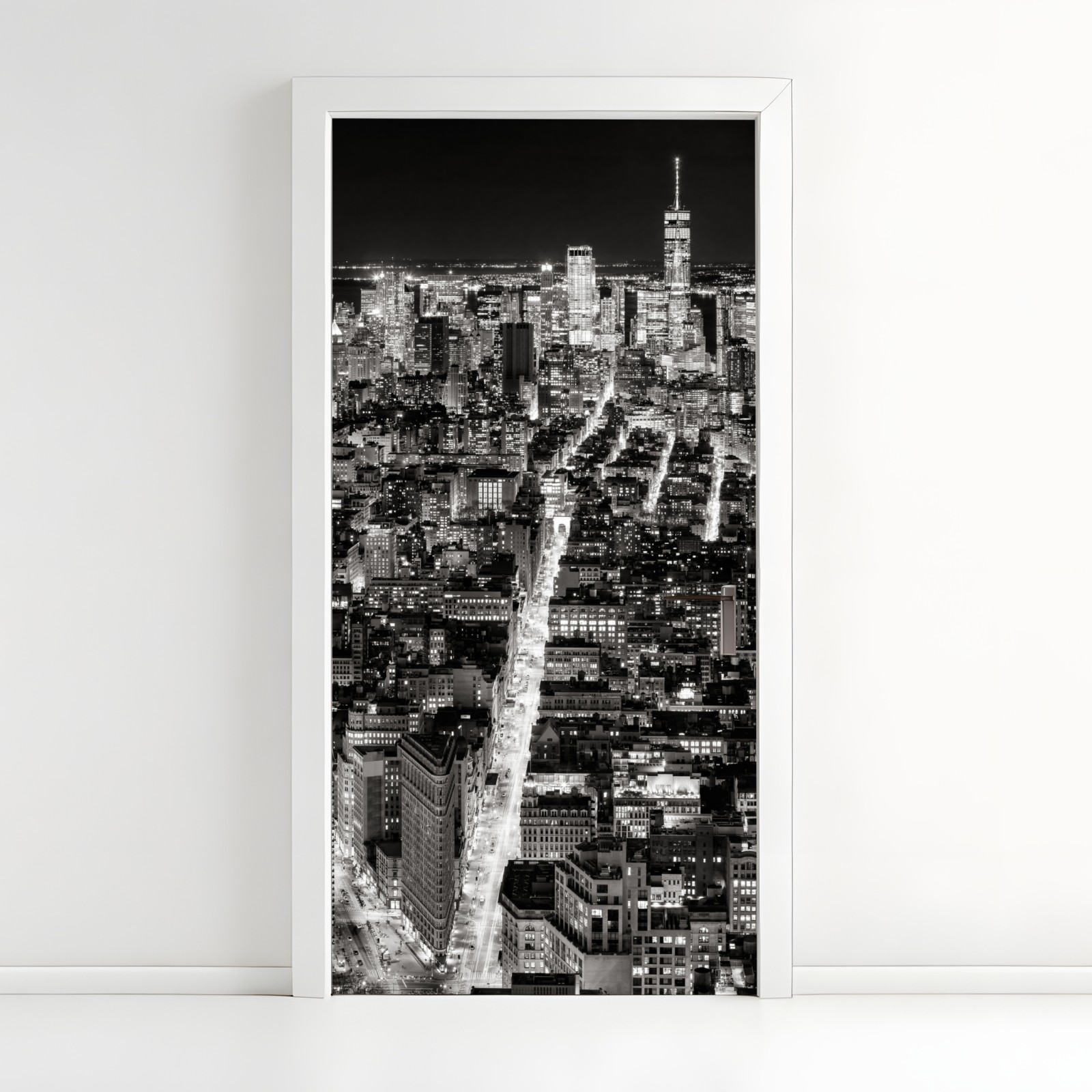 Naklejka na drzwi Monochromatyczna panorama miasta nocą