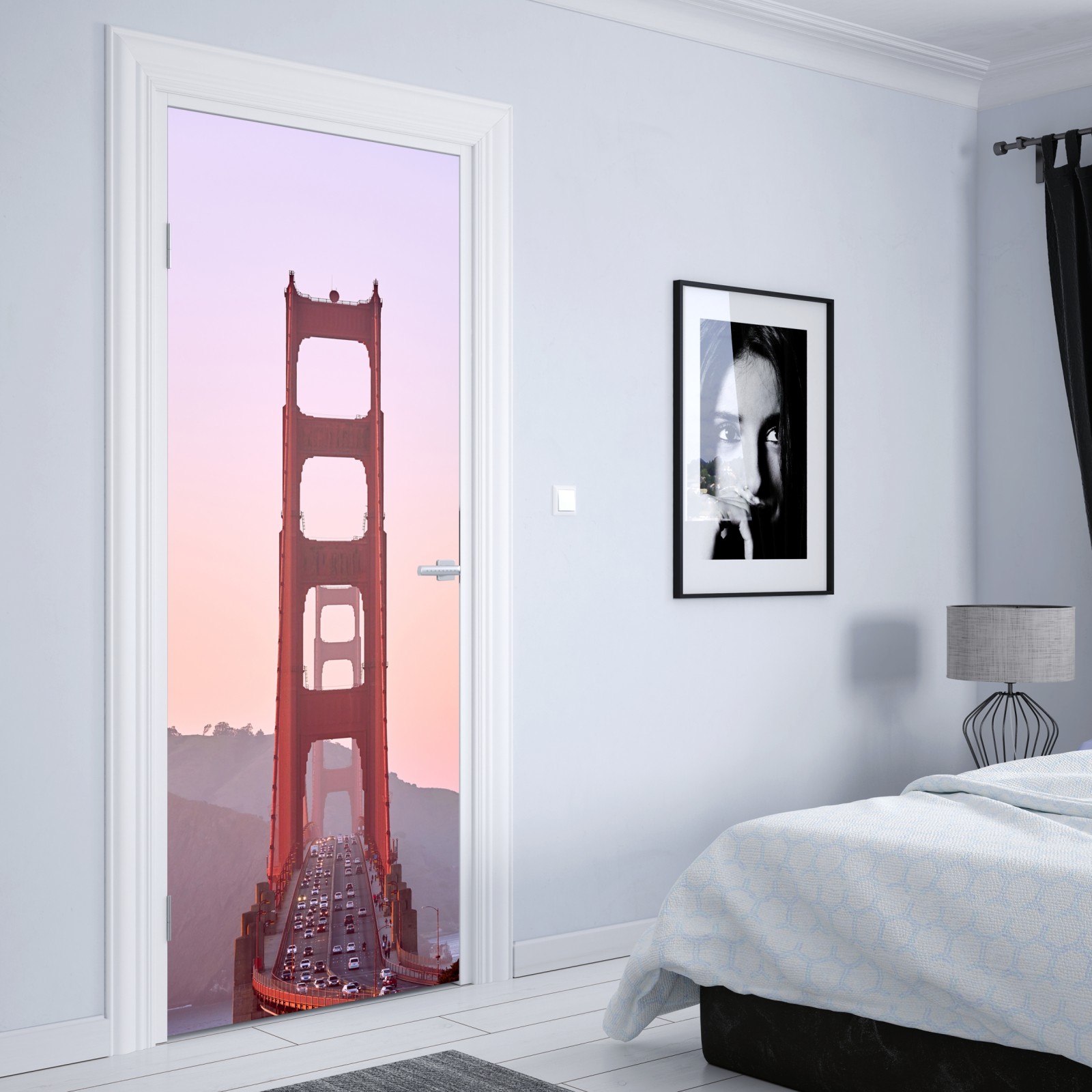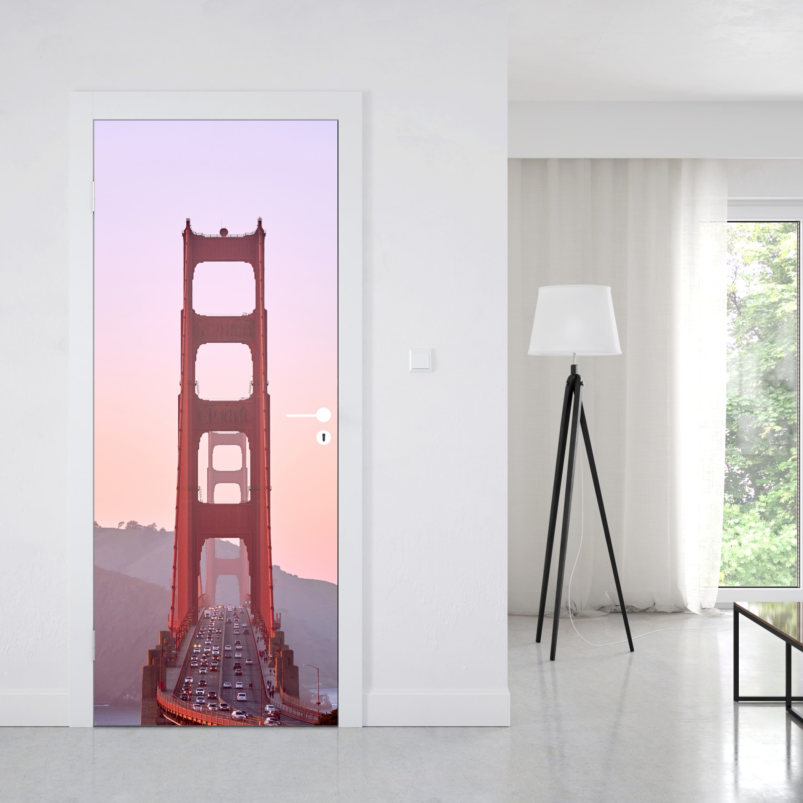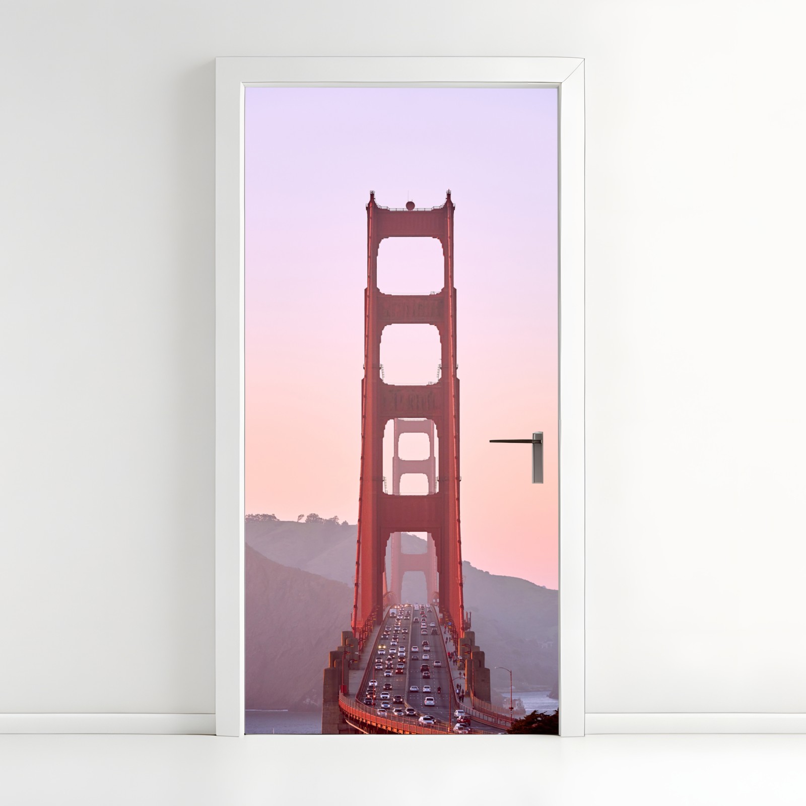 Naklejka na drzwi Golden Gate o pastelowym zachodzie słońca