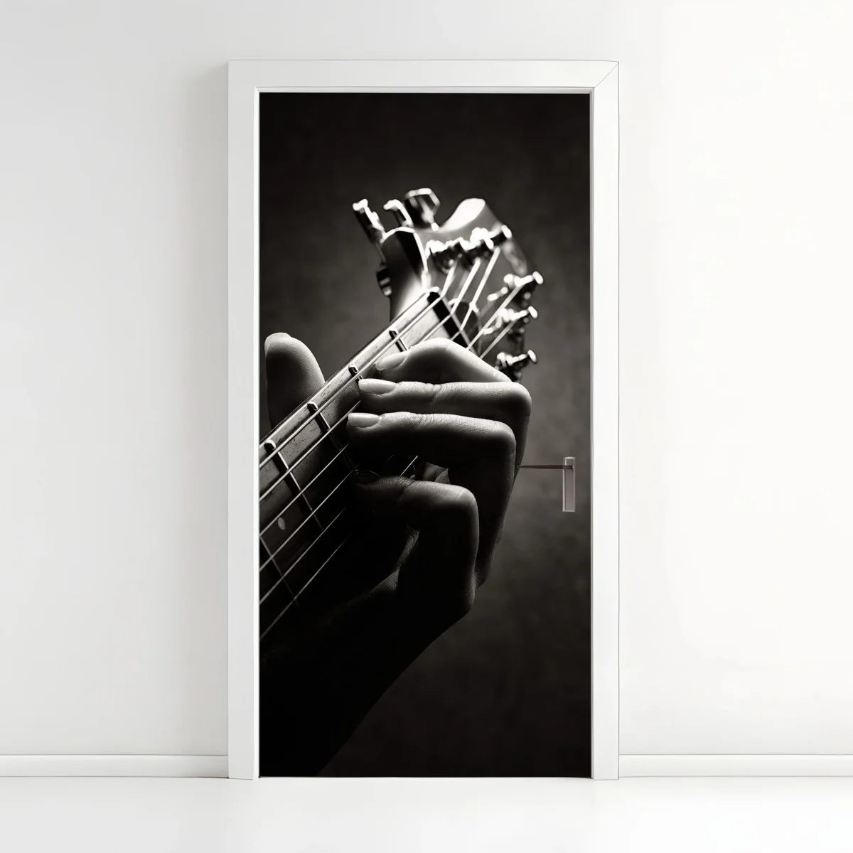 Naklejka na drzwi Zbliżenie dłoni gitarzysty na gryfie