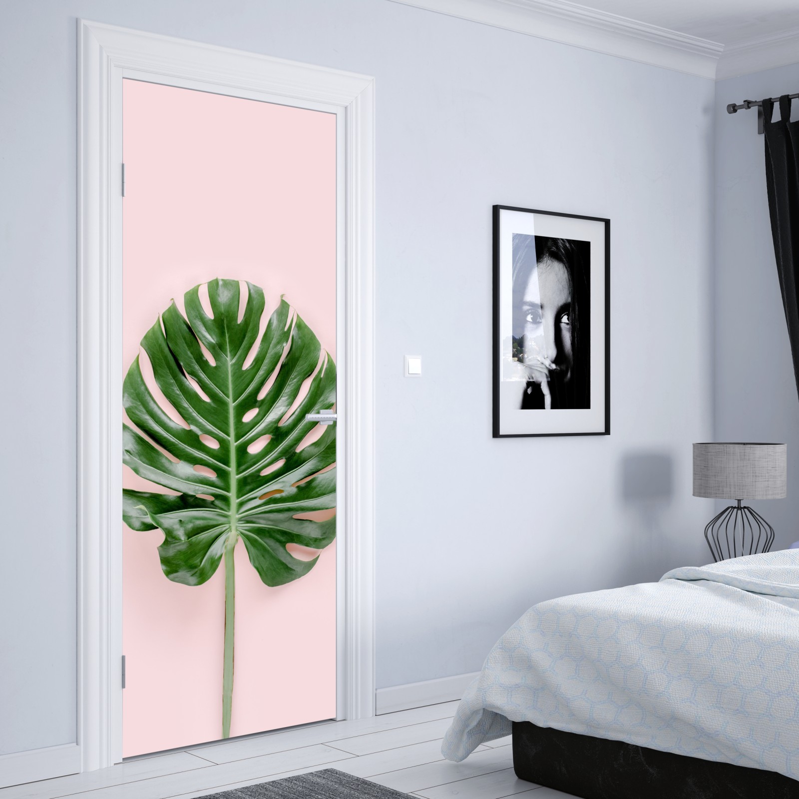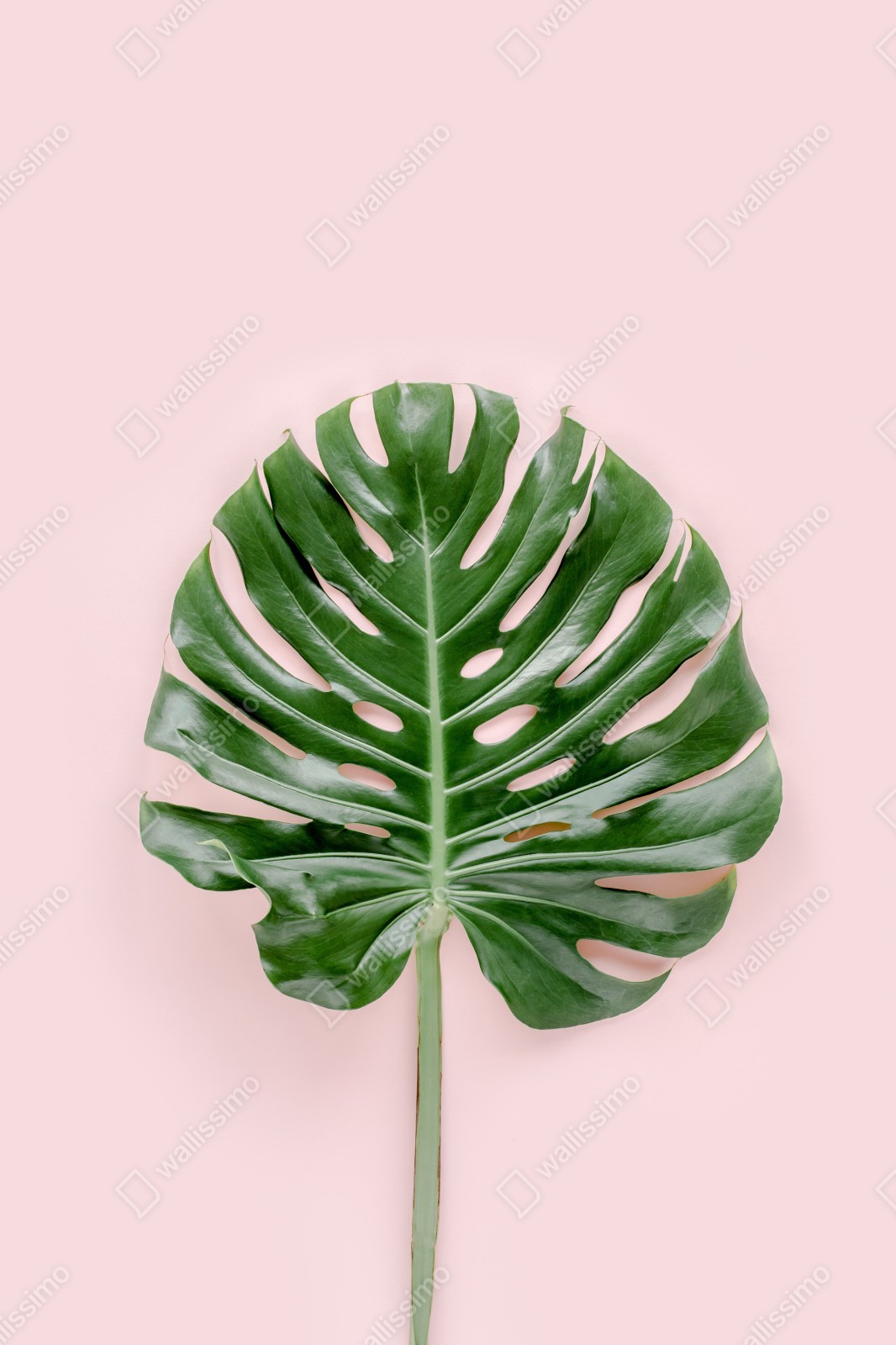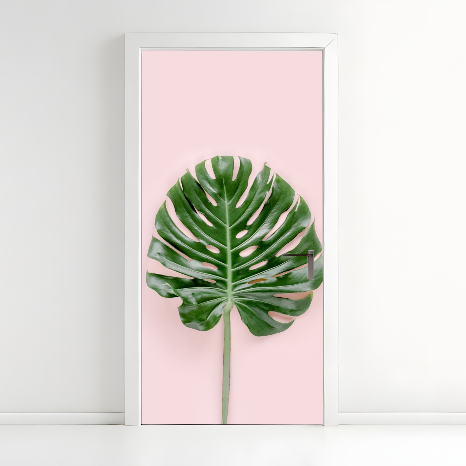 Dodaj wnętrzu spokoju dzięki liściowi monstera na delikatnym różowym tle, idealny do nowoczesnych i skandynawskich aranżacji.