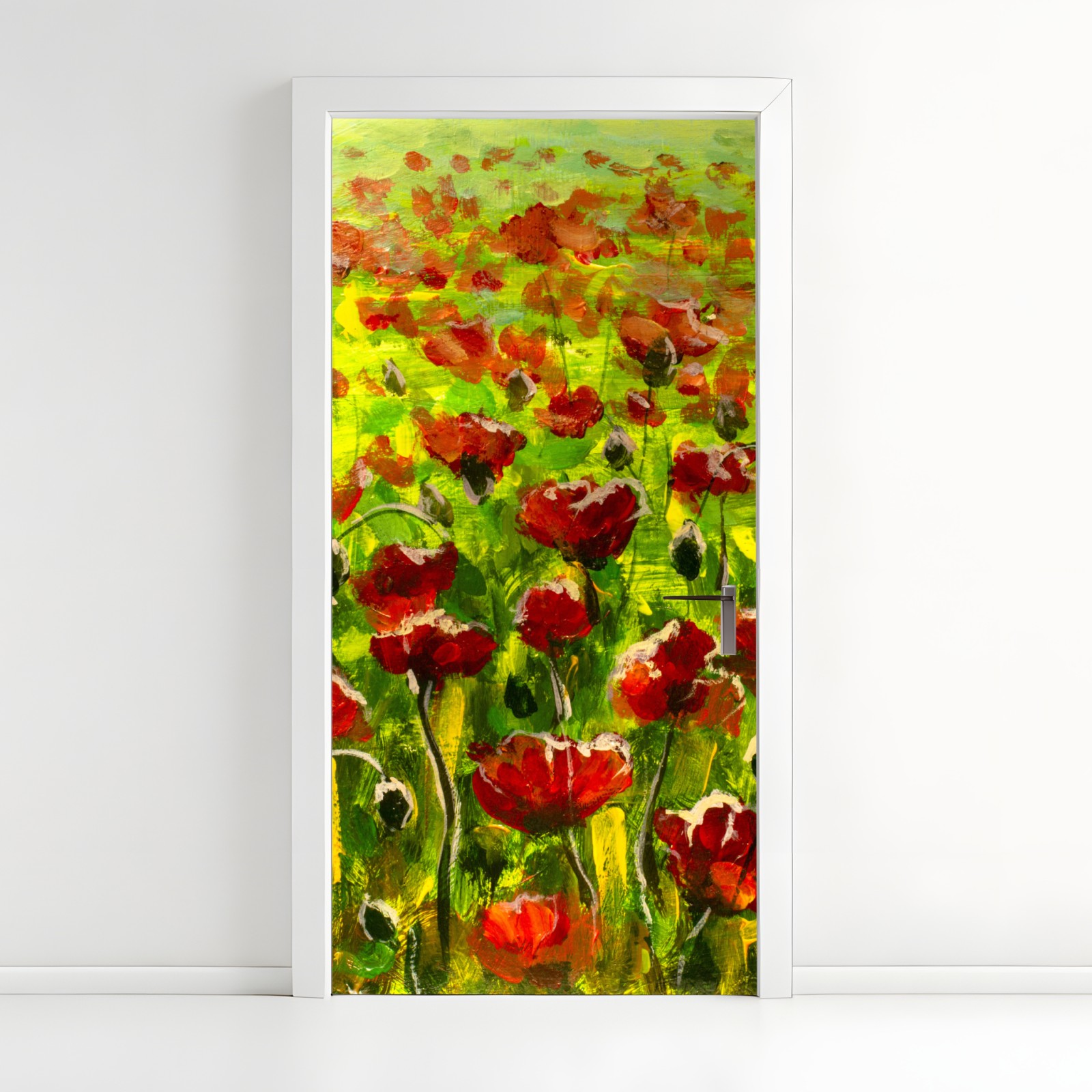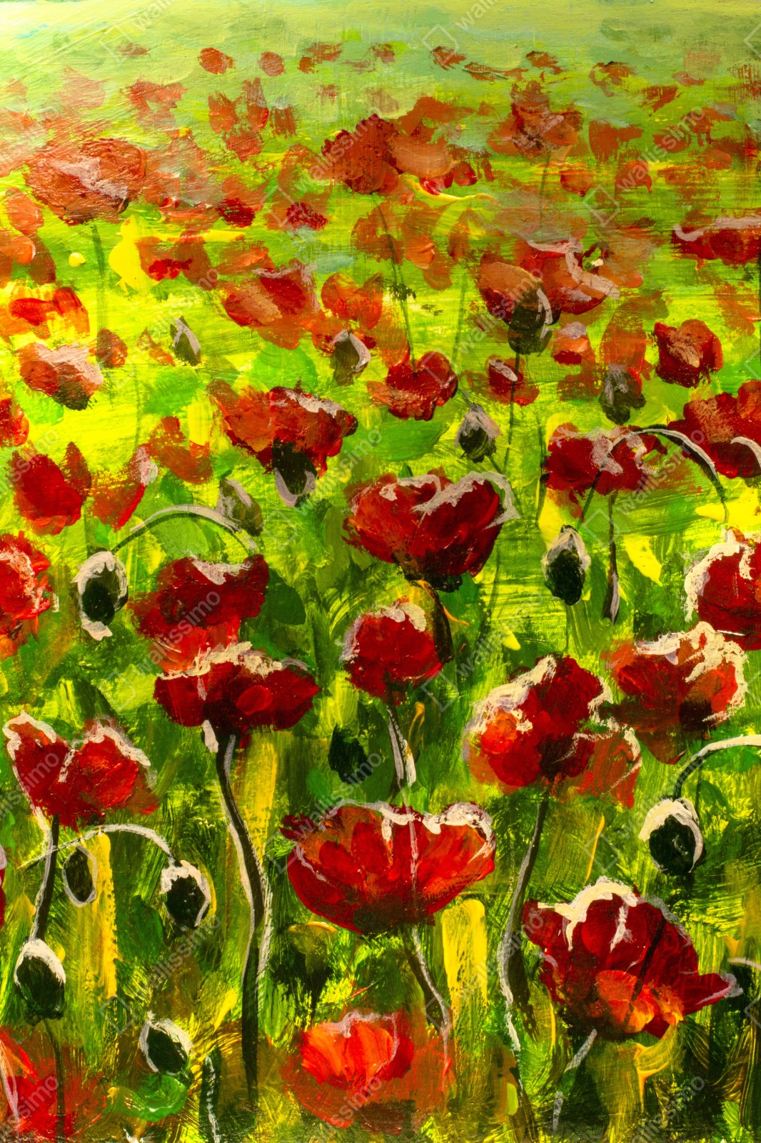 Wprowadź do wnętrza żywe kolory i naturalny urok dzięki temu ekspresyjnemu obrazowi olejnemu przedstawiającemu pole czerwonych maków.