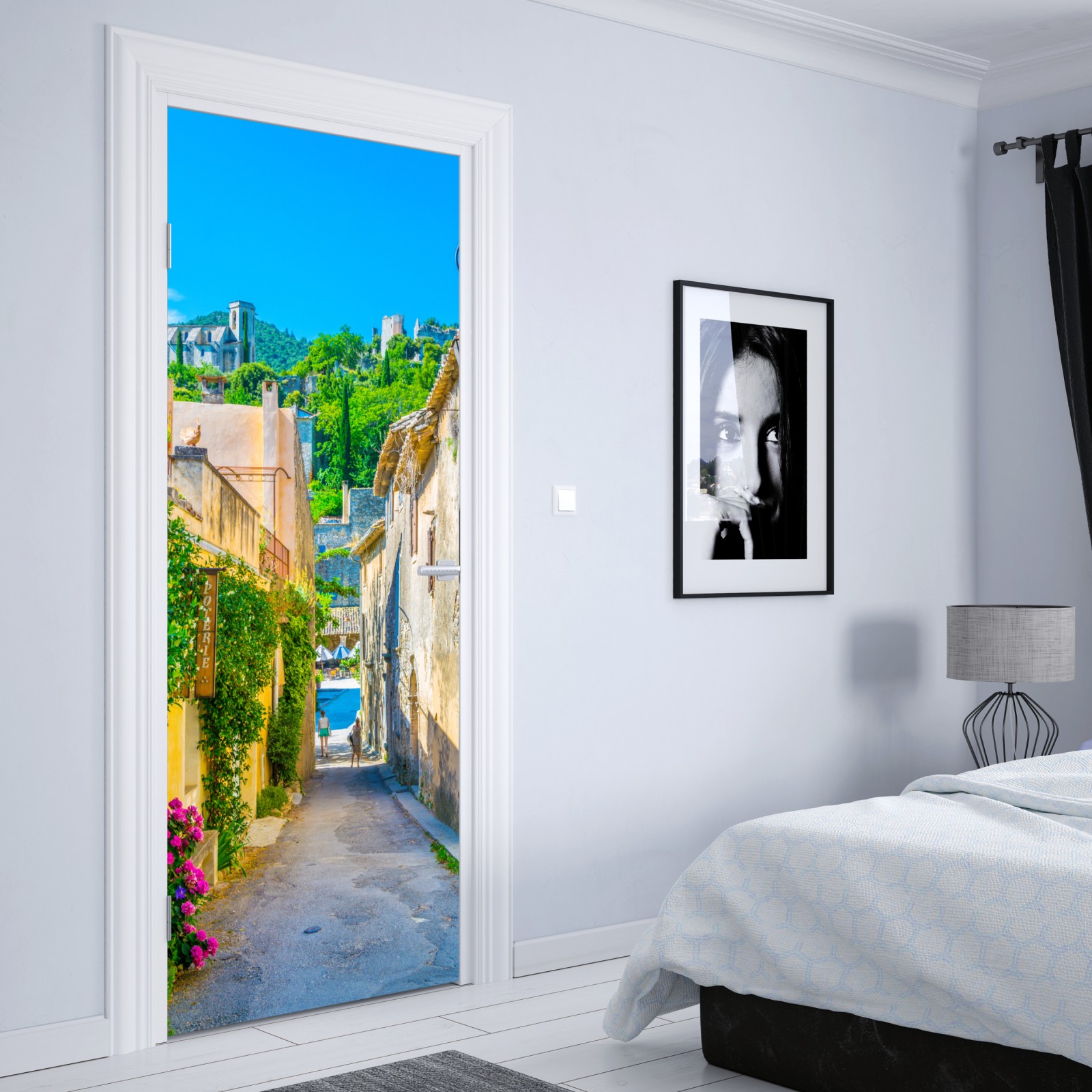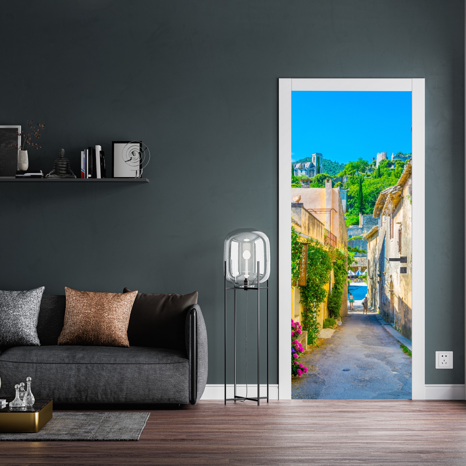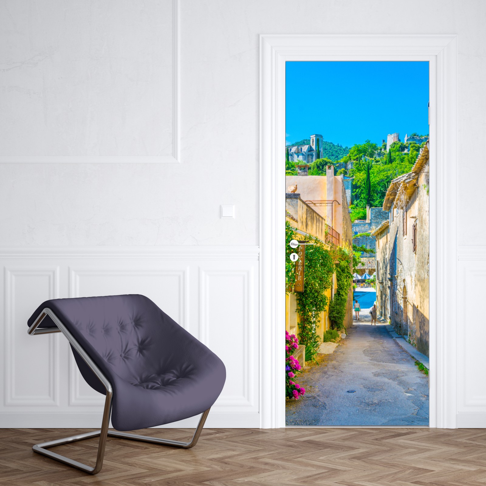 Naklejka na drzwi Słoneczna uliczka wioski śródziemnomorskiej