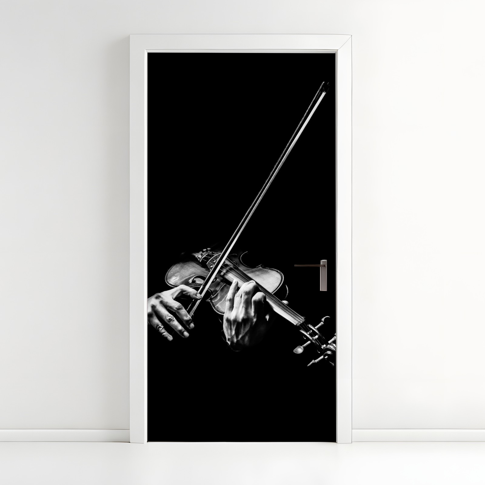 Naklejka na drzwi Monochromatyczne dłonie skrzypka