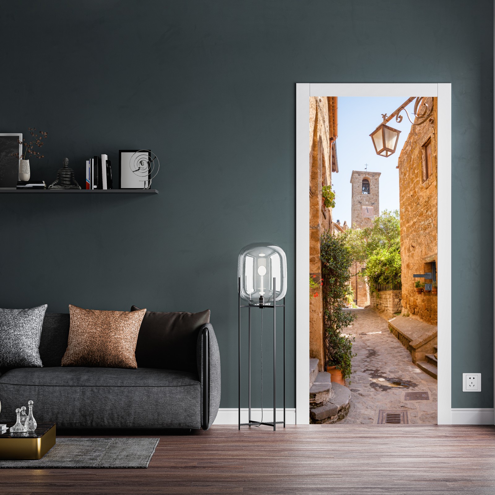 Wprowadź ponadczasowy włoski urok do wnętrza dzięki słonecznej średniowiecznej uliczce z Civita di Bagnoregio, ukazującej ciepłe kamienne faktury i spokojną dzwonnicę.