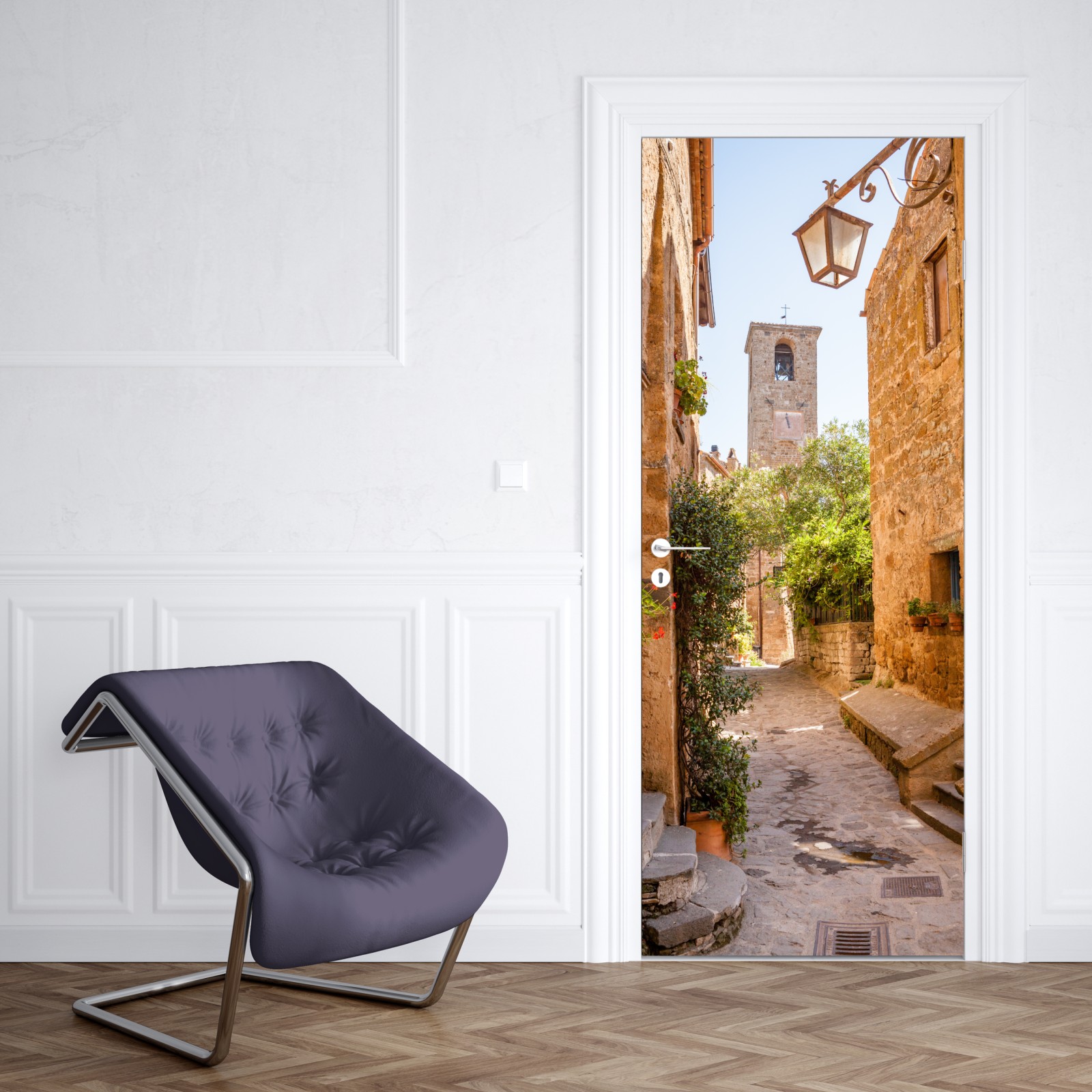 Naklejka na drzwi Słoneczna uliczka w Civita di Bagnoregio