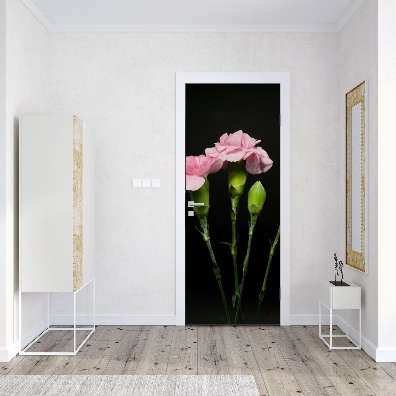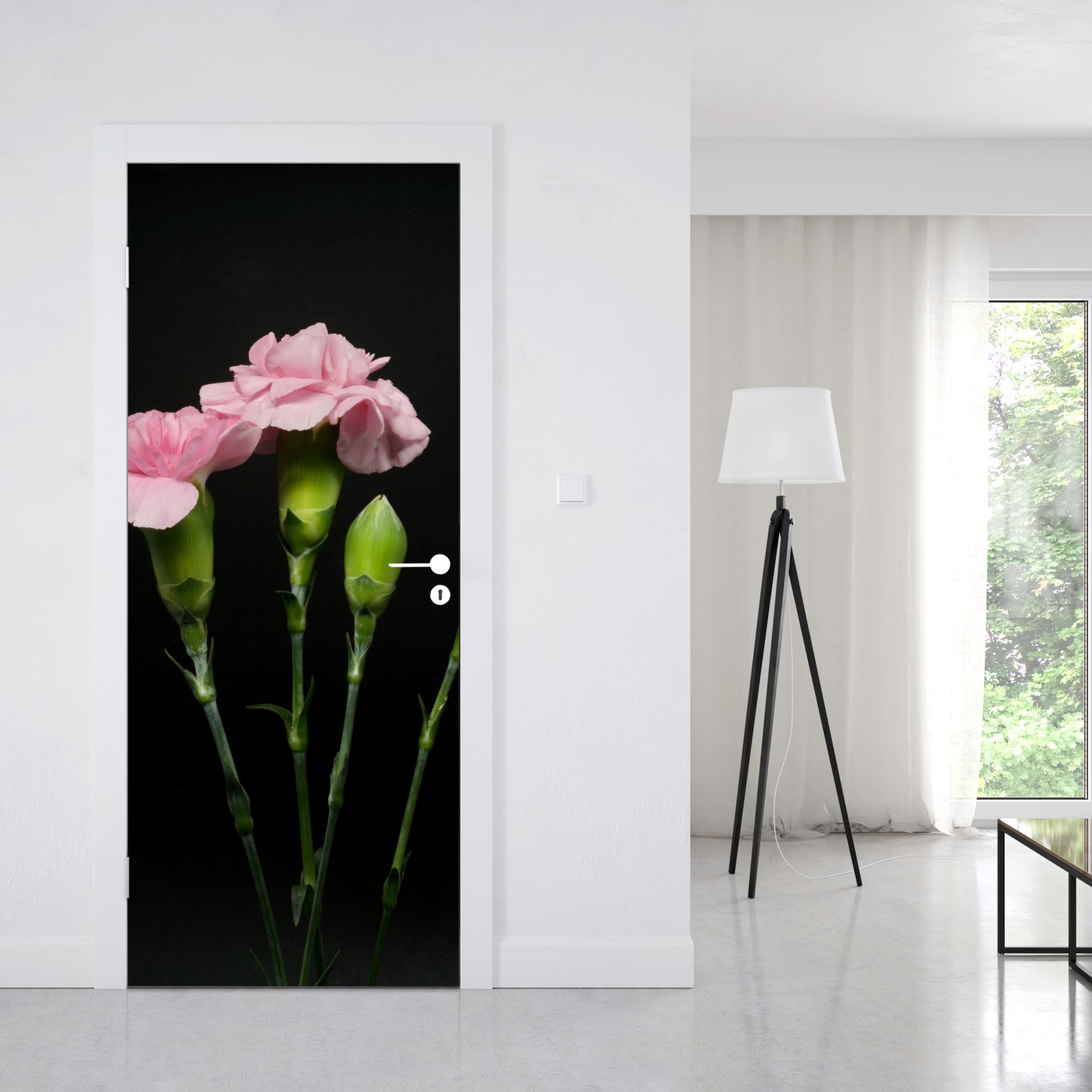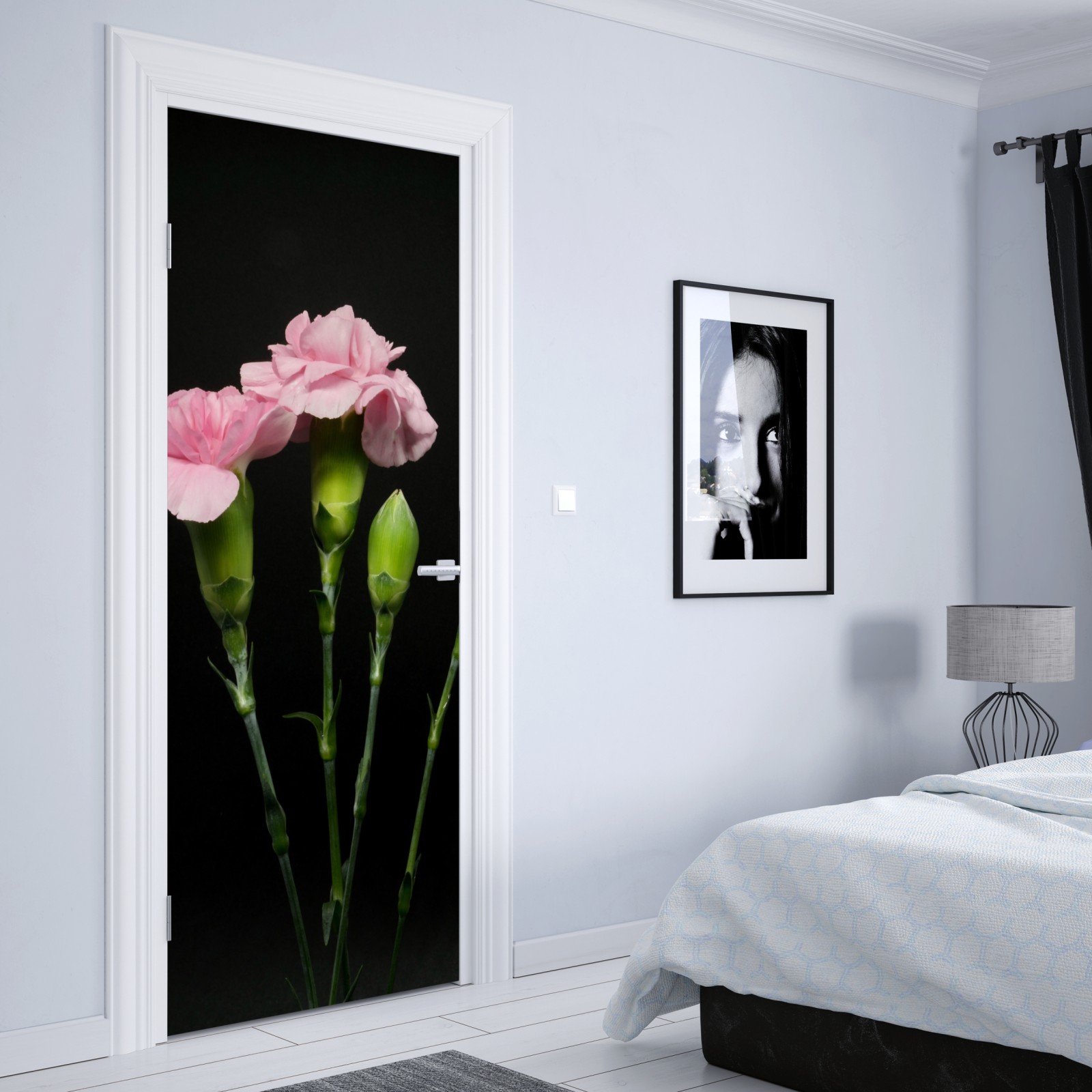 Naklejka na drzwi Różowe goździki na czarnym tle