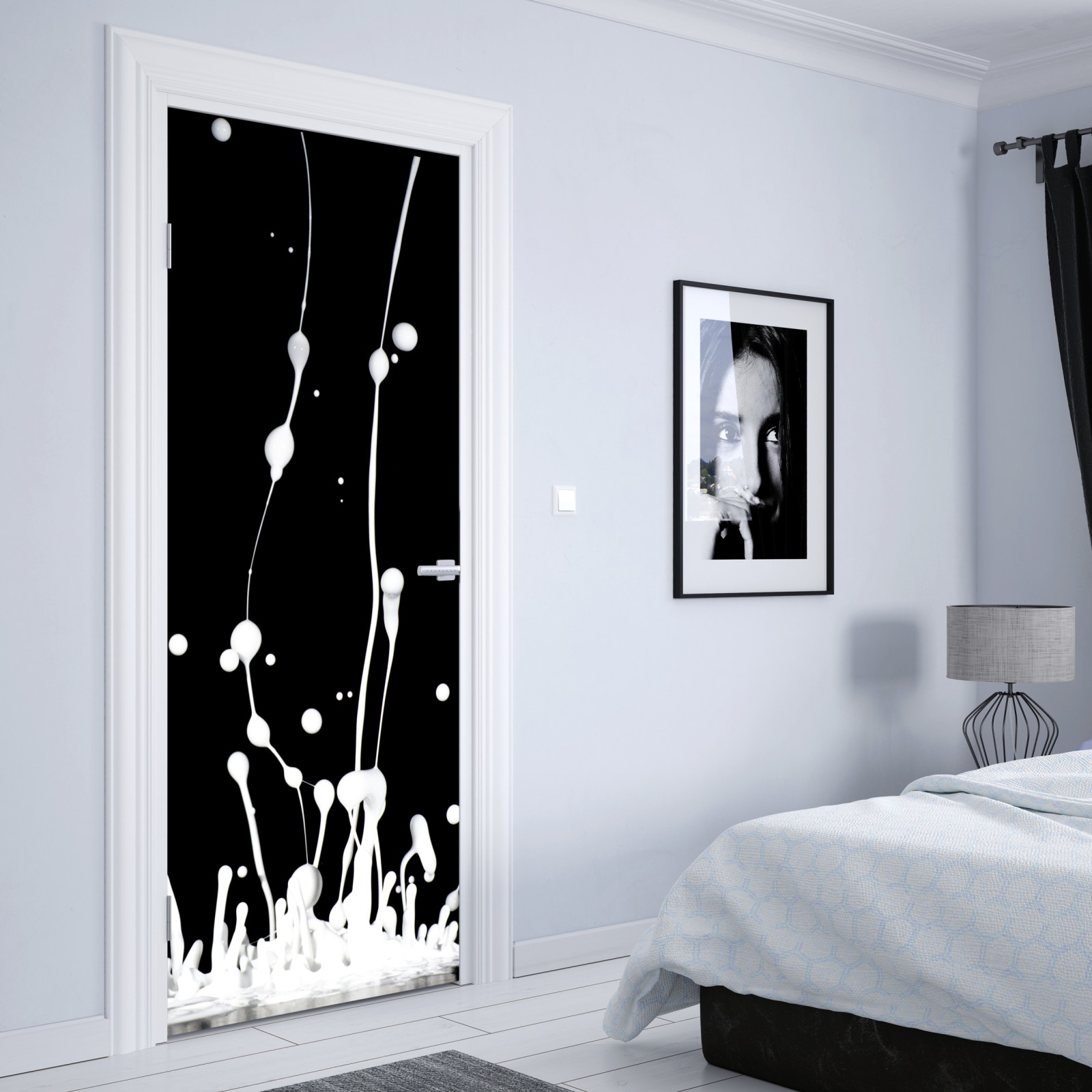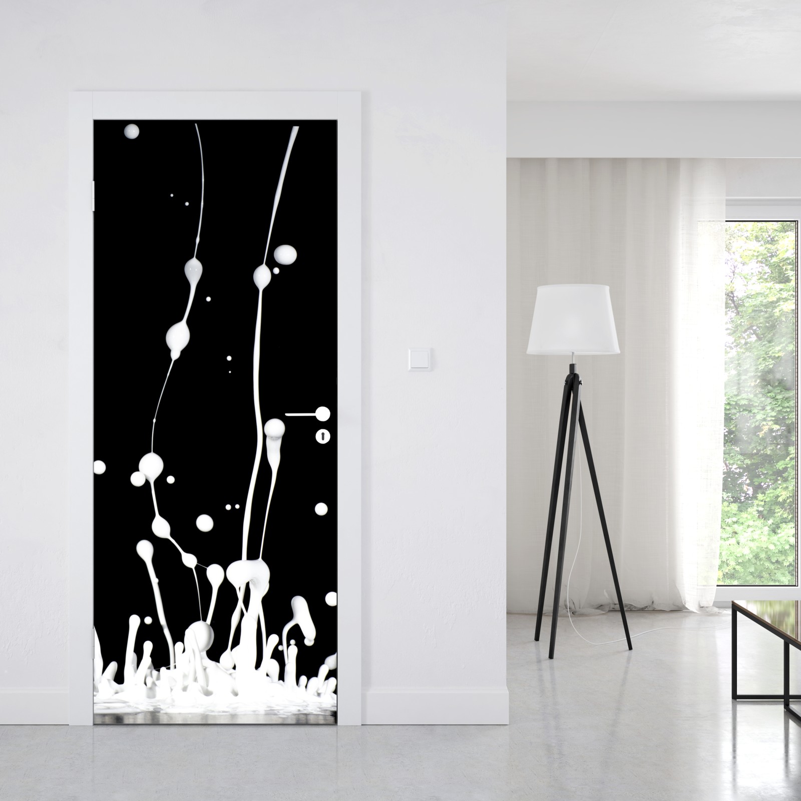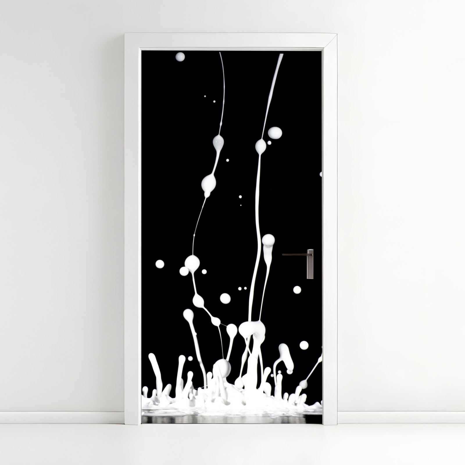 Naklejka na drzwi Biały rozprysk na czarnym tle