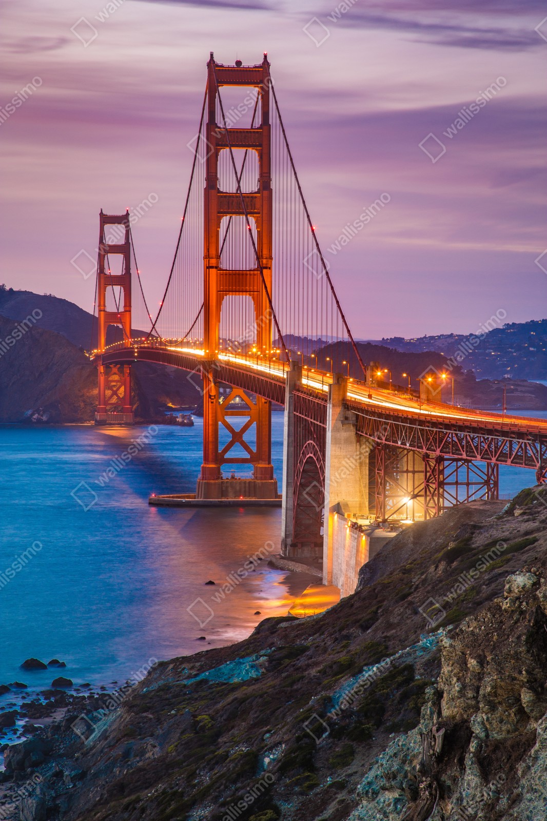 Dodaj swojemu wnętrzu atmosferę nadmorskiego zmierzchu dzięki ikonicznemu mostowi Golden Gate uchwyconemu w ciepłych barwach.
