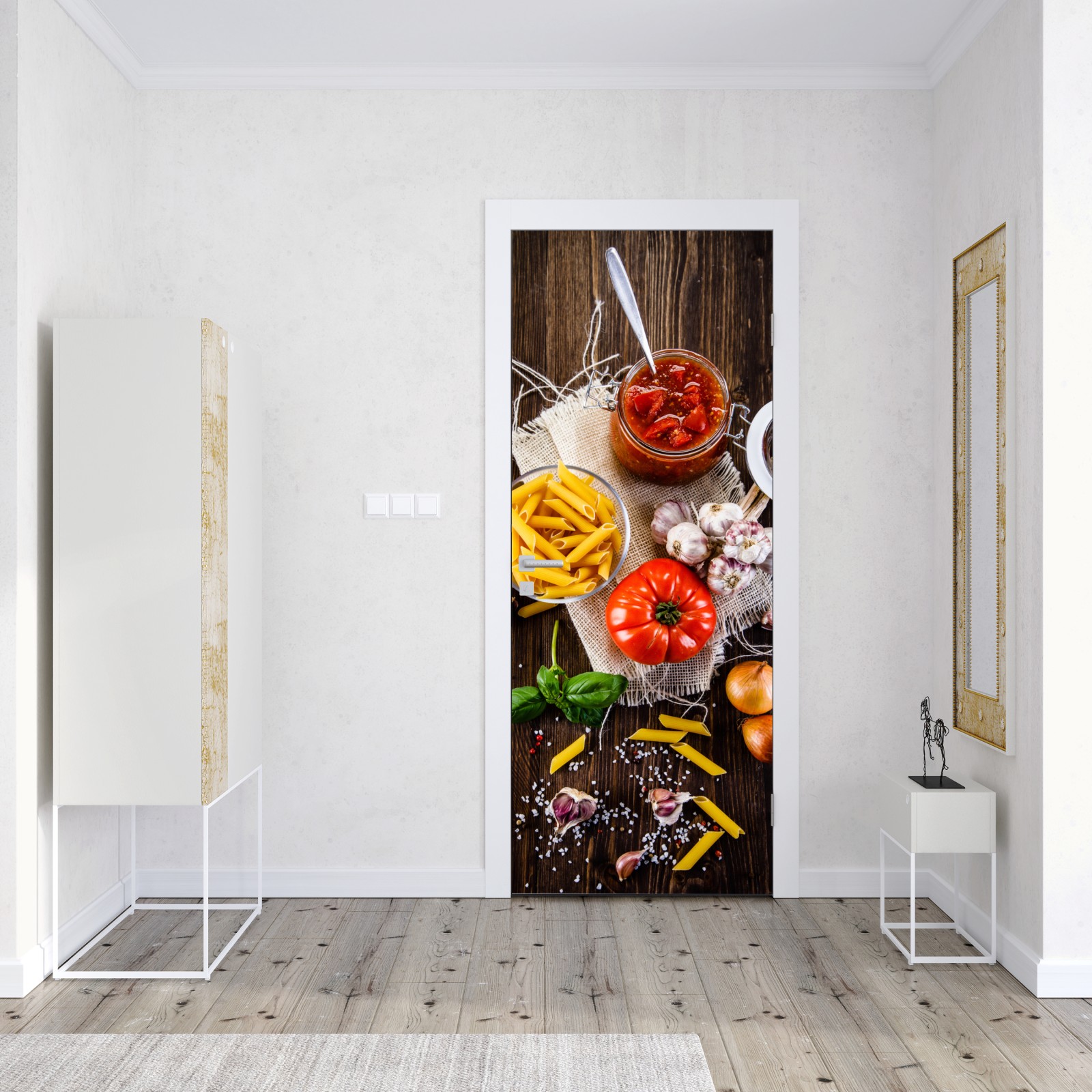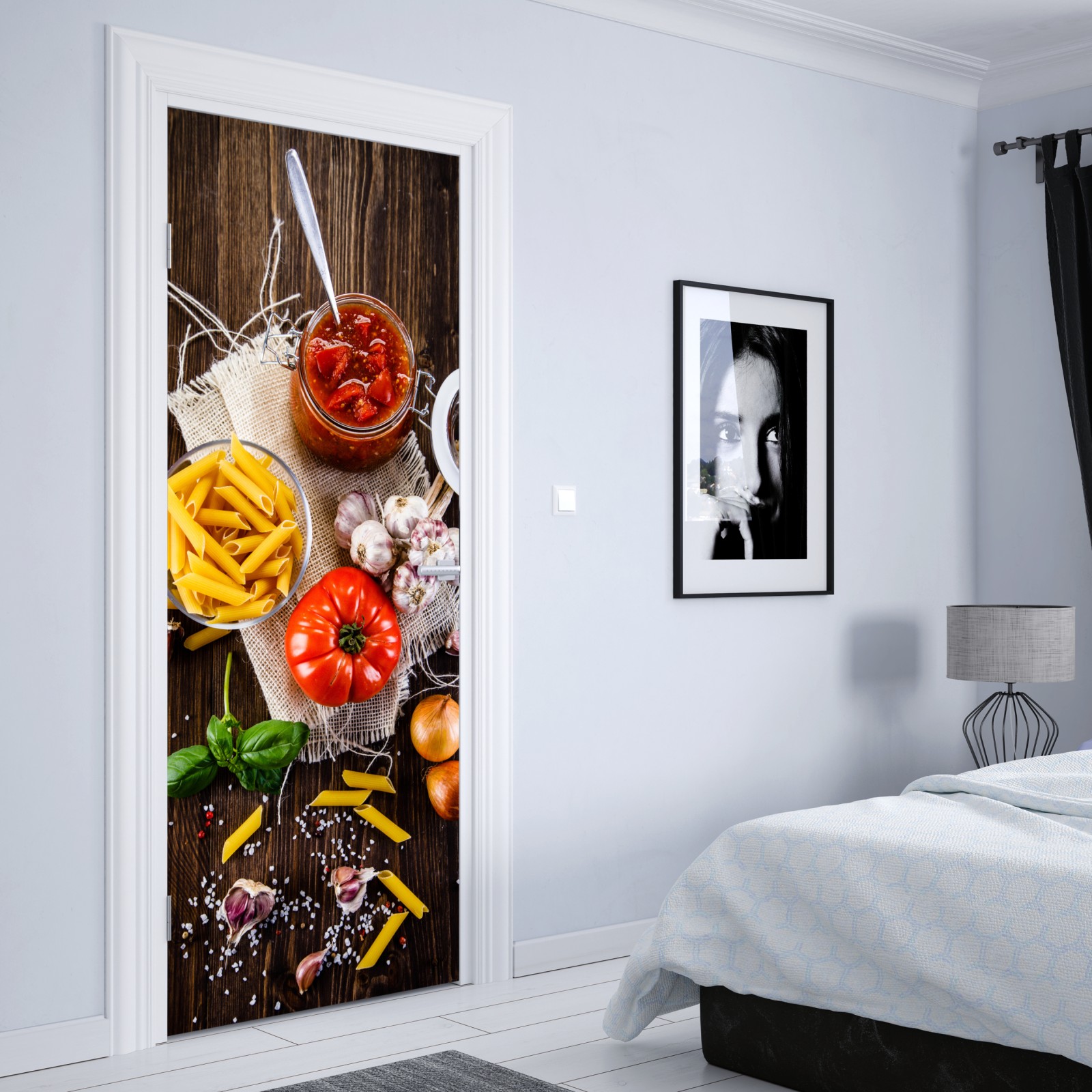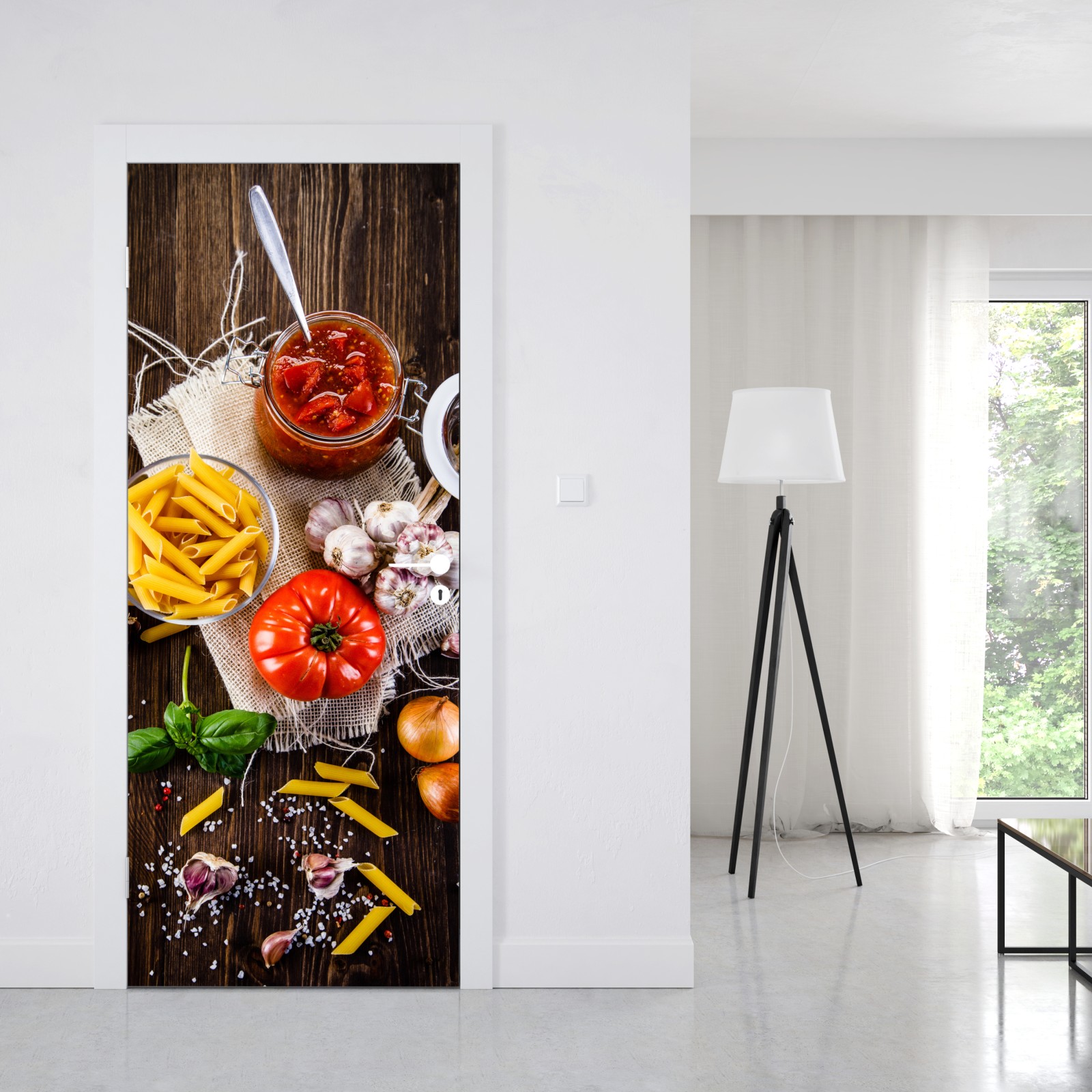 Naklejka na drzwi Rustykalne włoskie składniki do makaronu