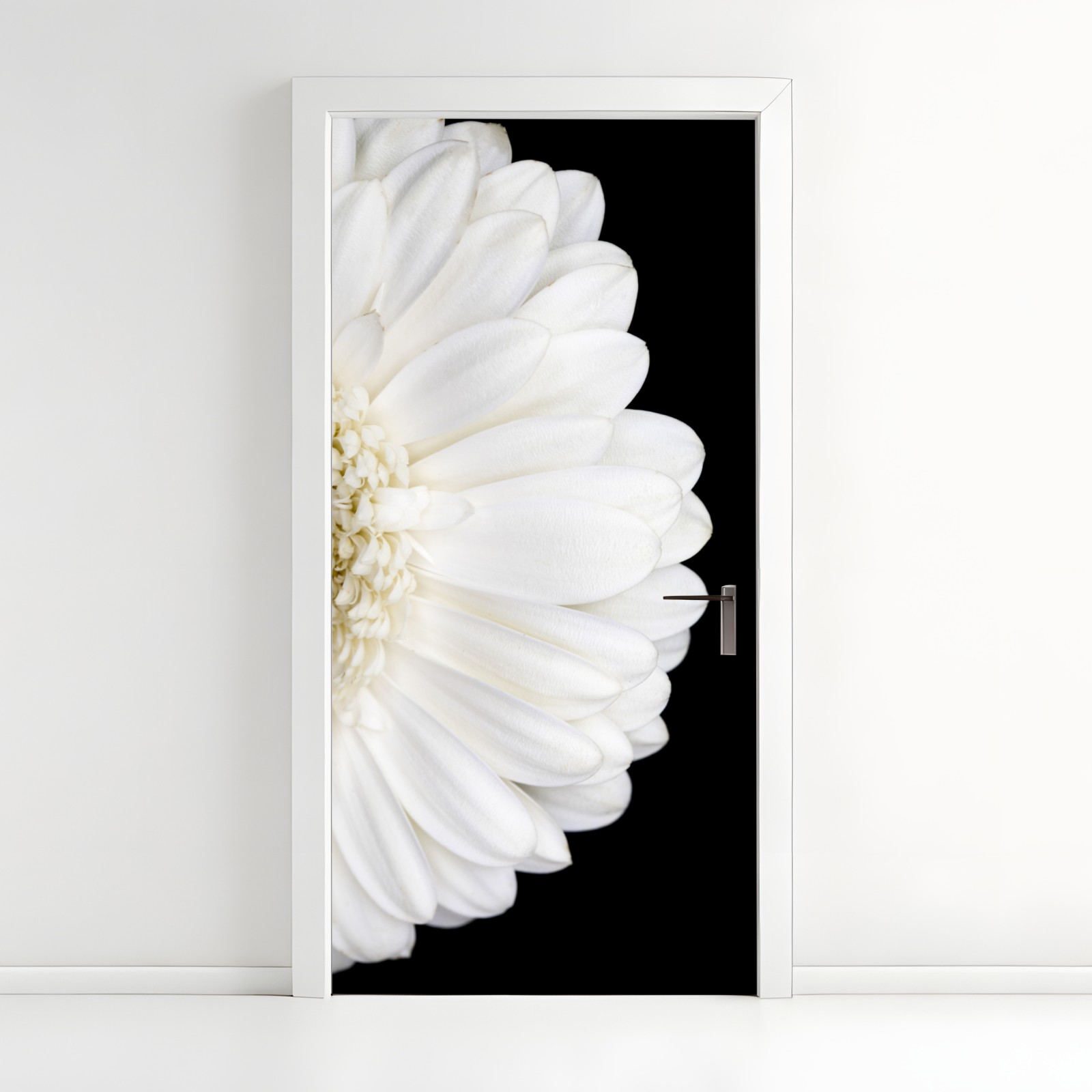 Naklejka na drzwi Biała gerbera na czarnym tle minimalistyczne zbliżenie