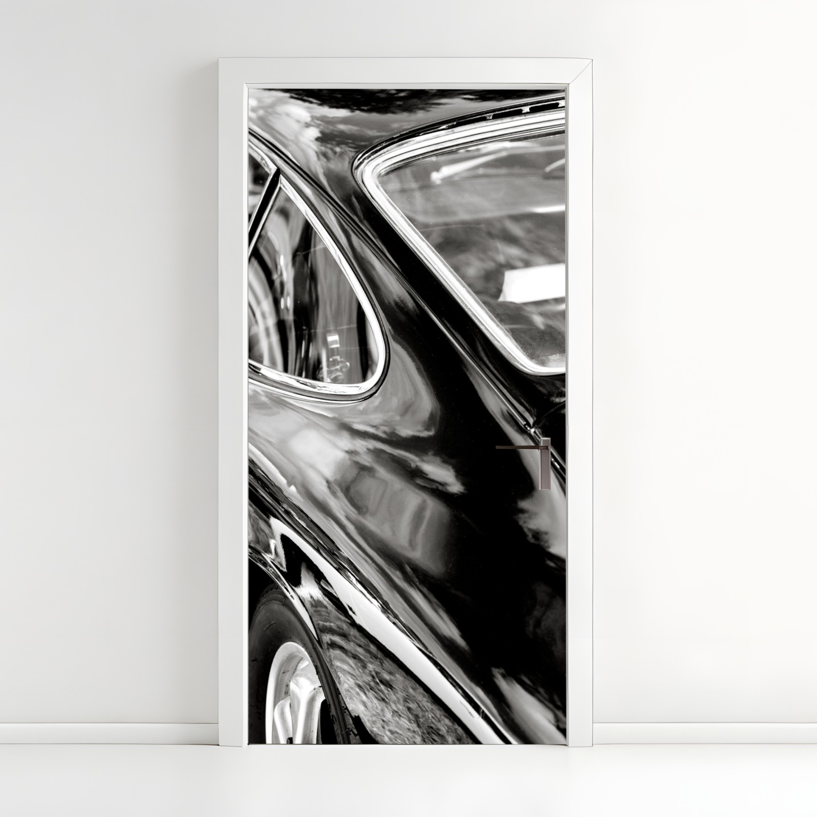 Naklejka na drzwi Zabytkowy tył samochodu w czerni i bieli