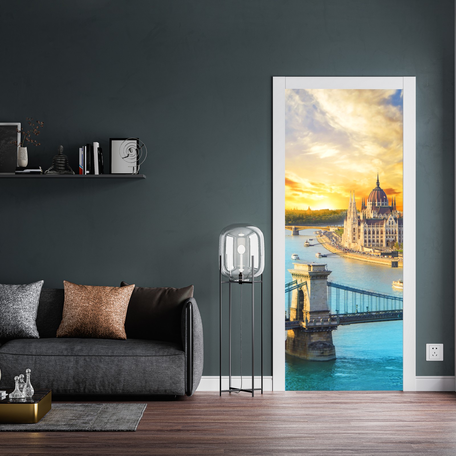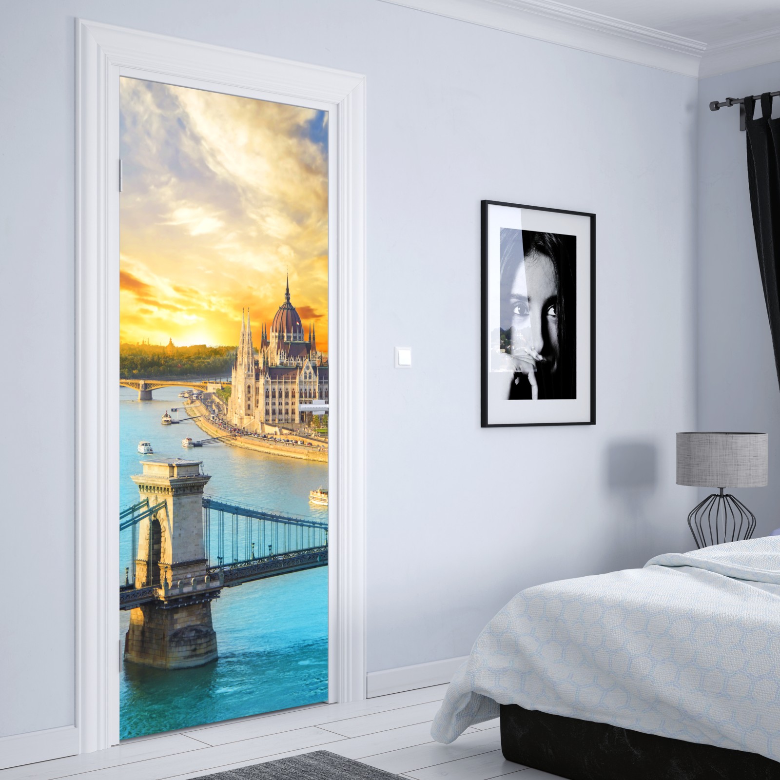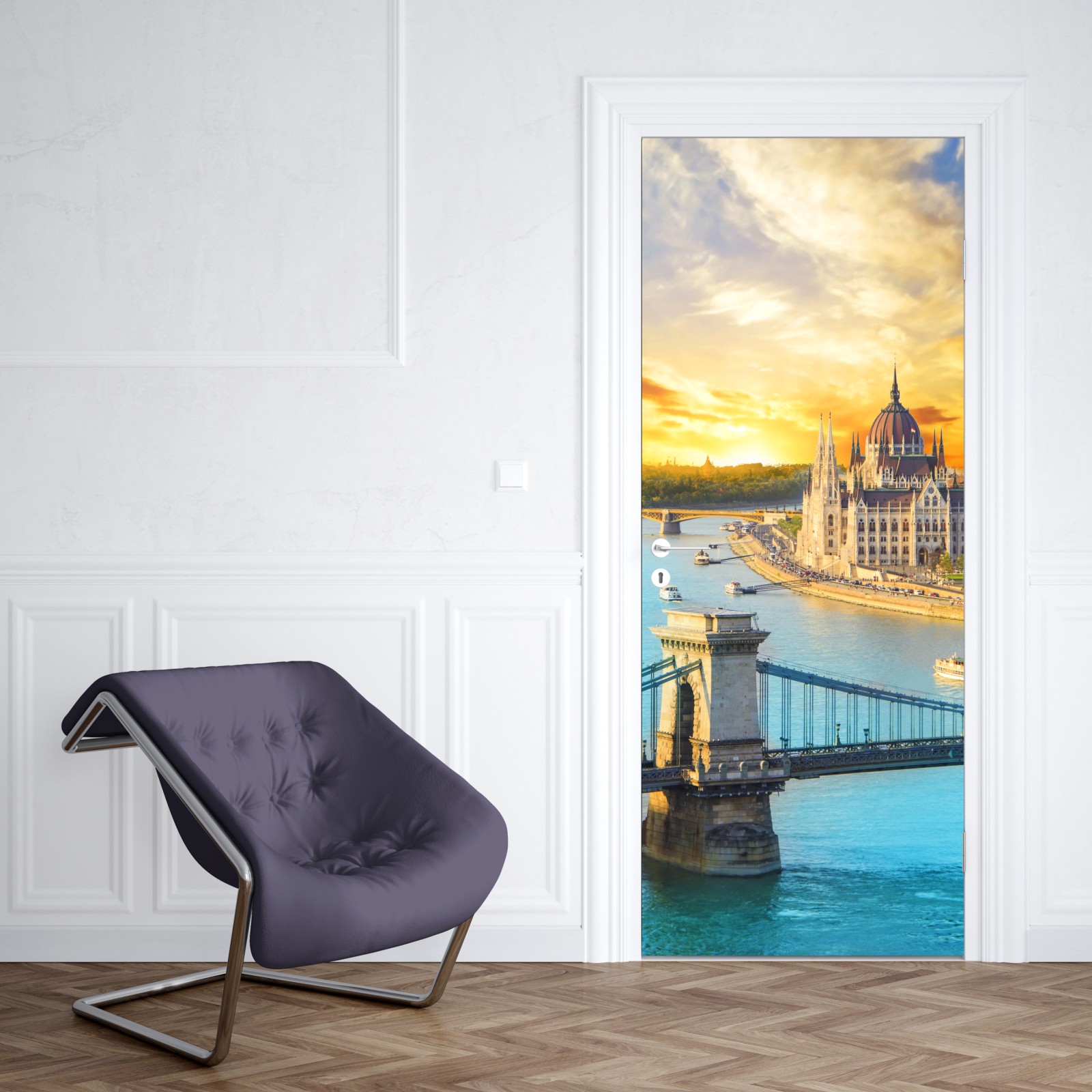 Naklejka na drzwi Zachód słońca nad Budapesztem i mostem łańcuchowym