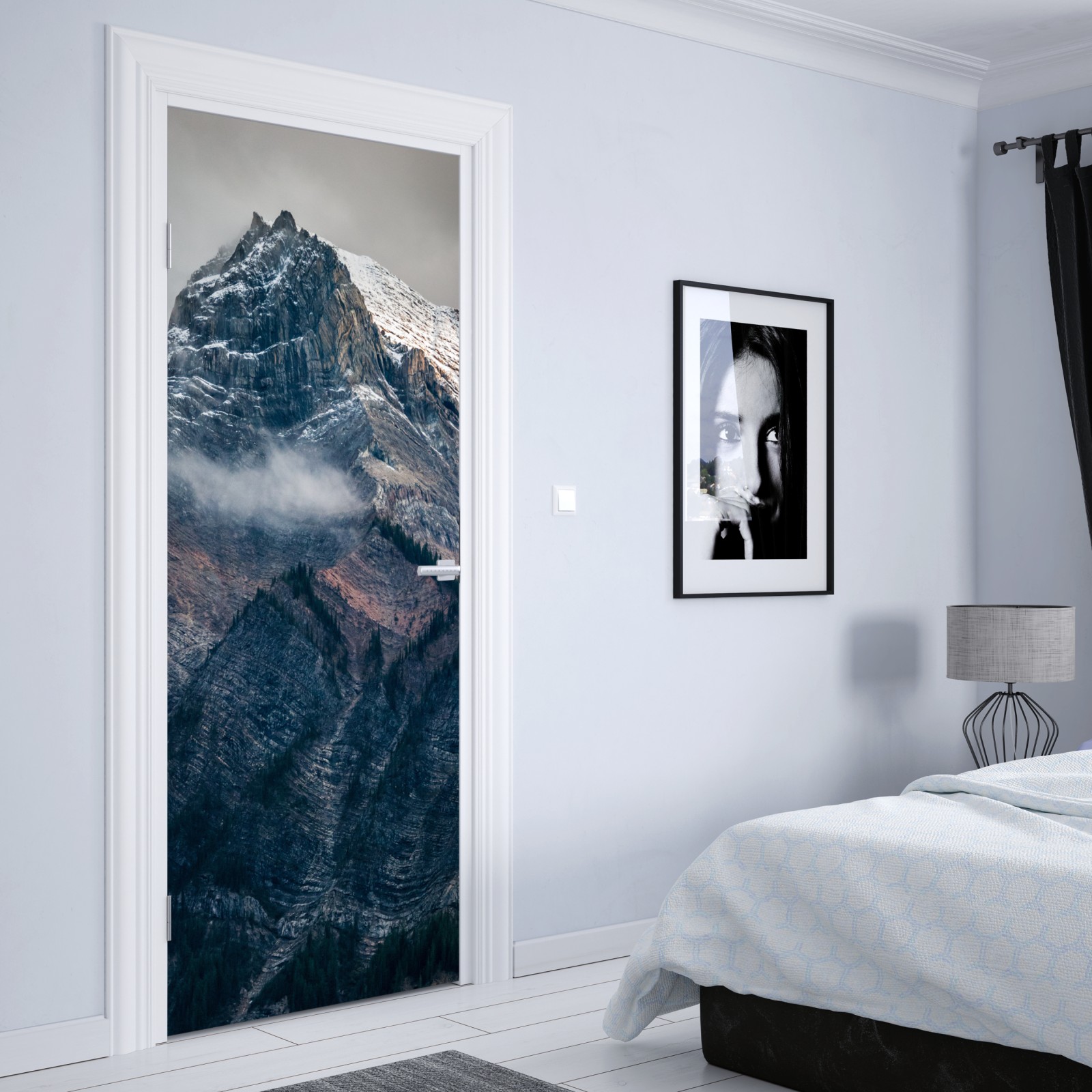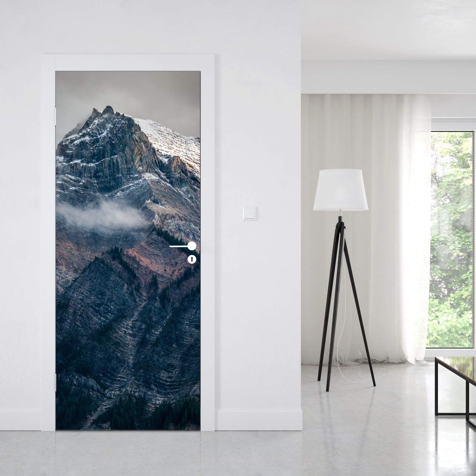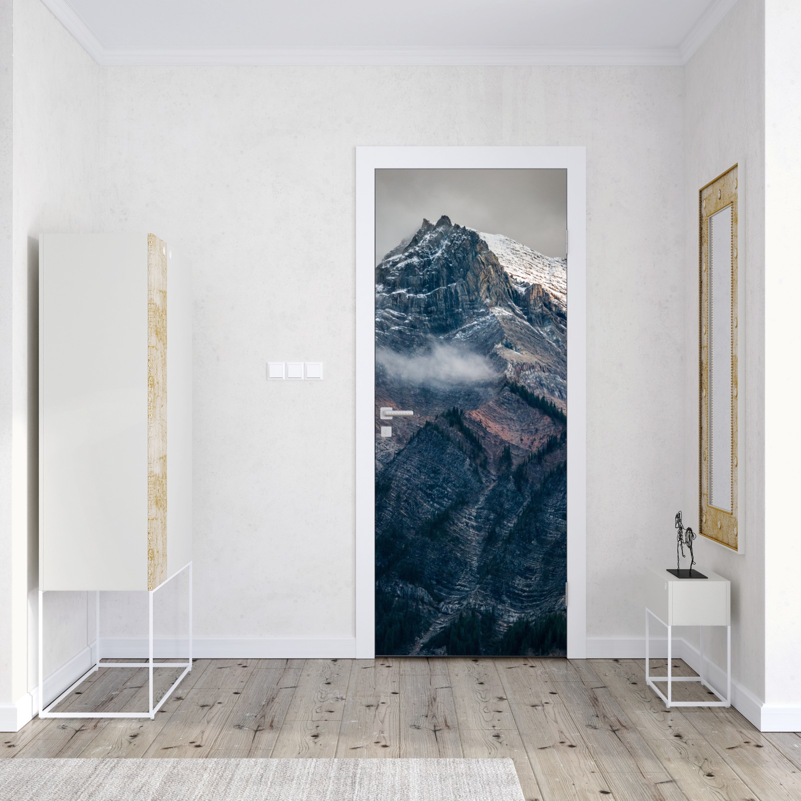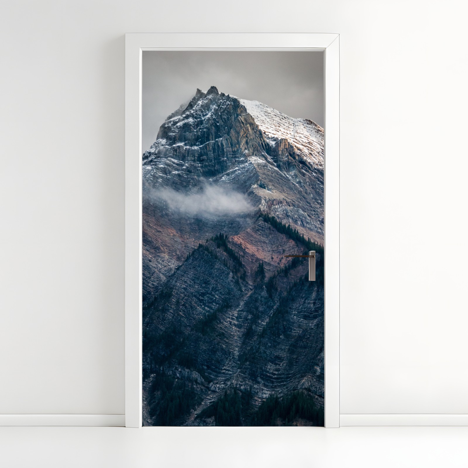 Naklejka na drzwi Dramatyczny alpejski szczyt we mgle
