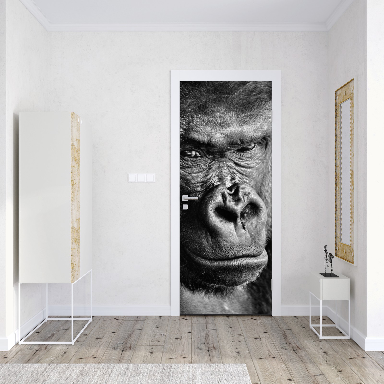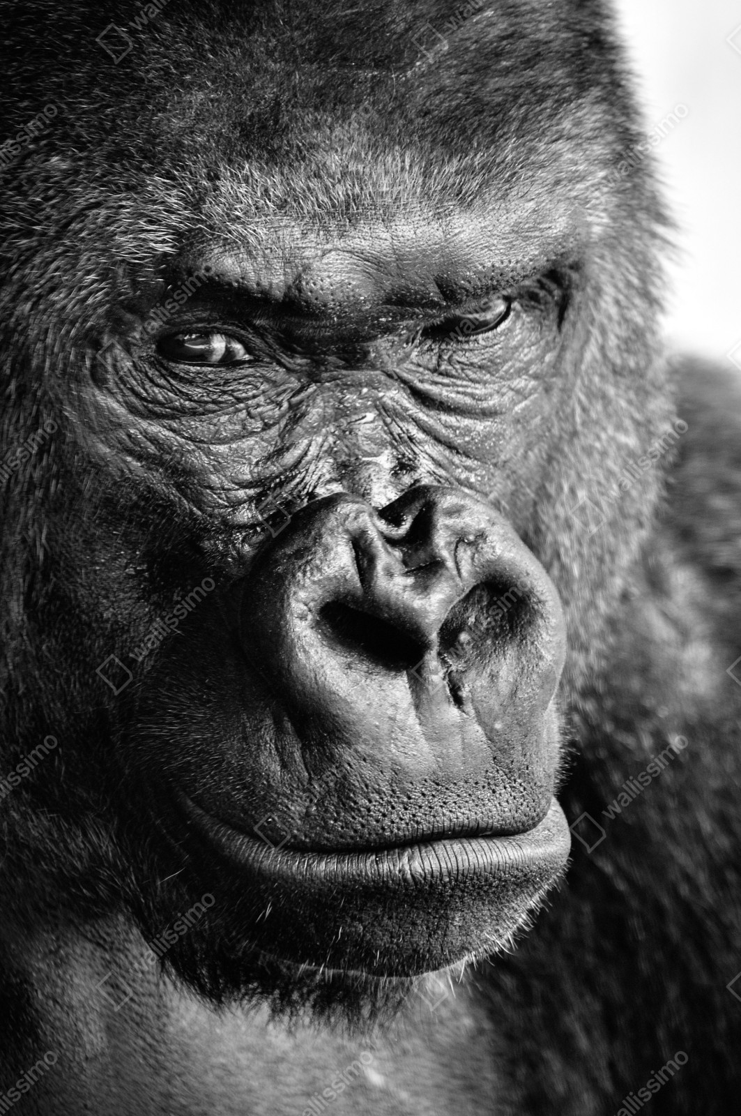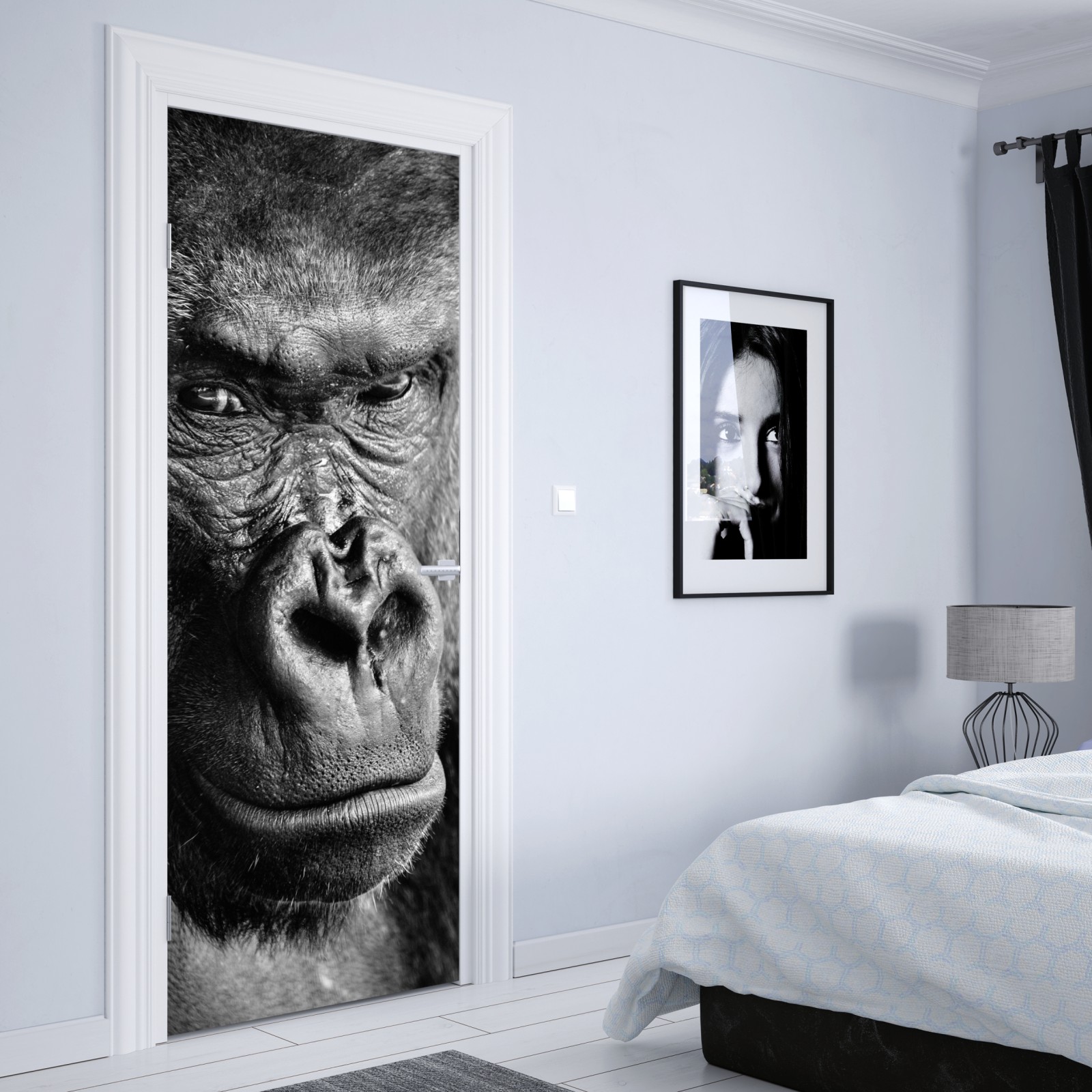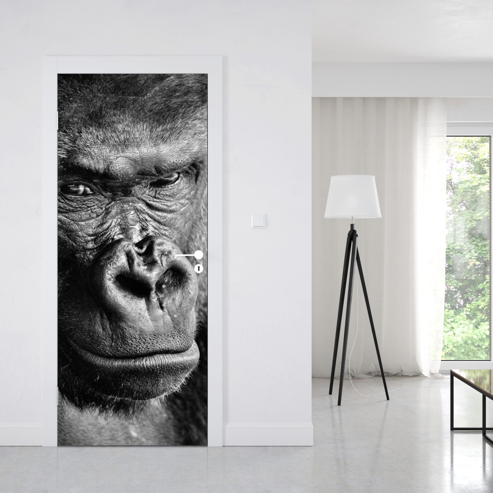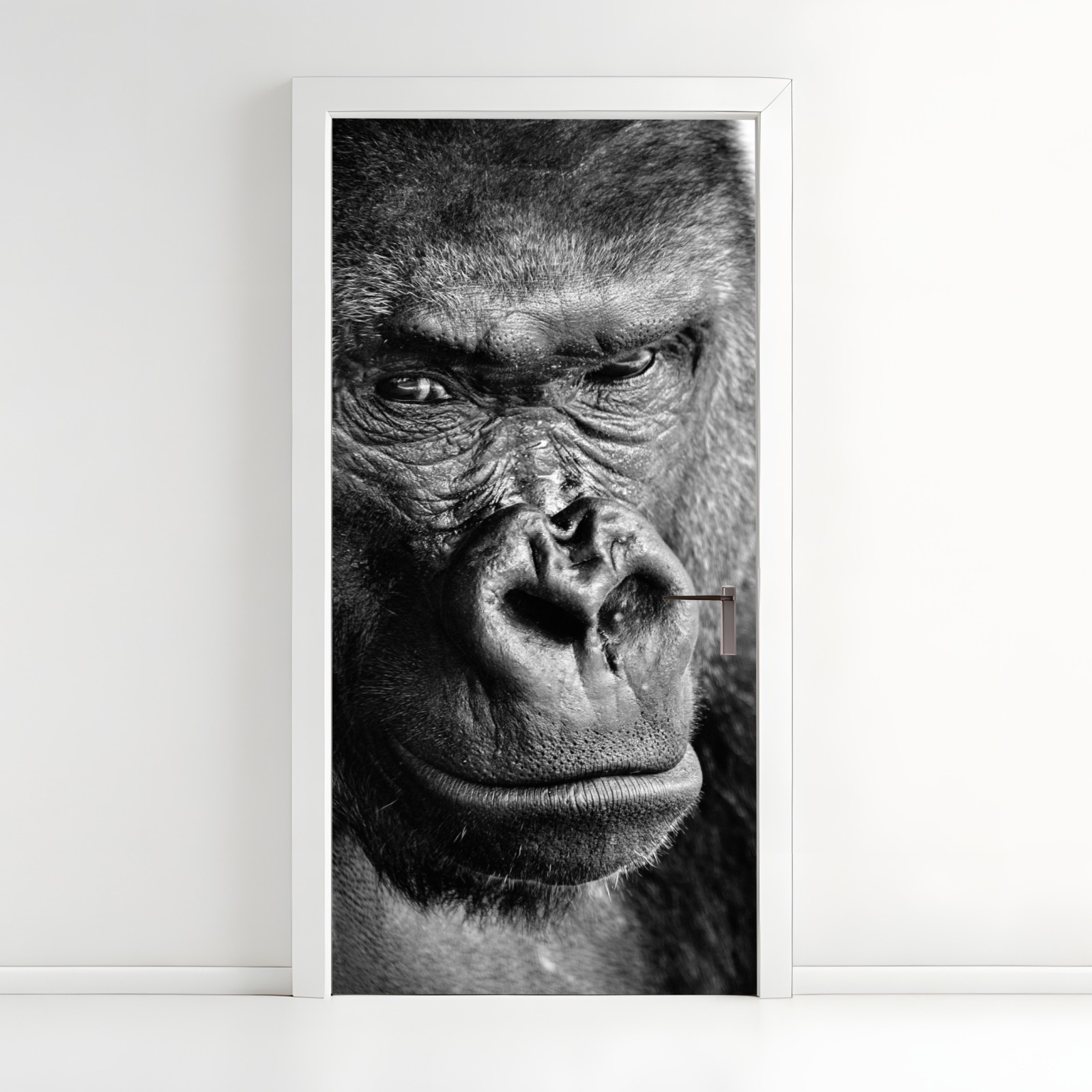 Naklejka na drzwi Intensywny portret goryla w czerni i bieli