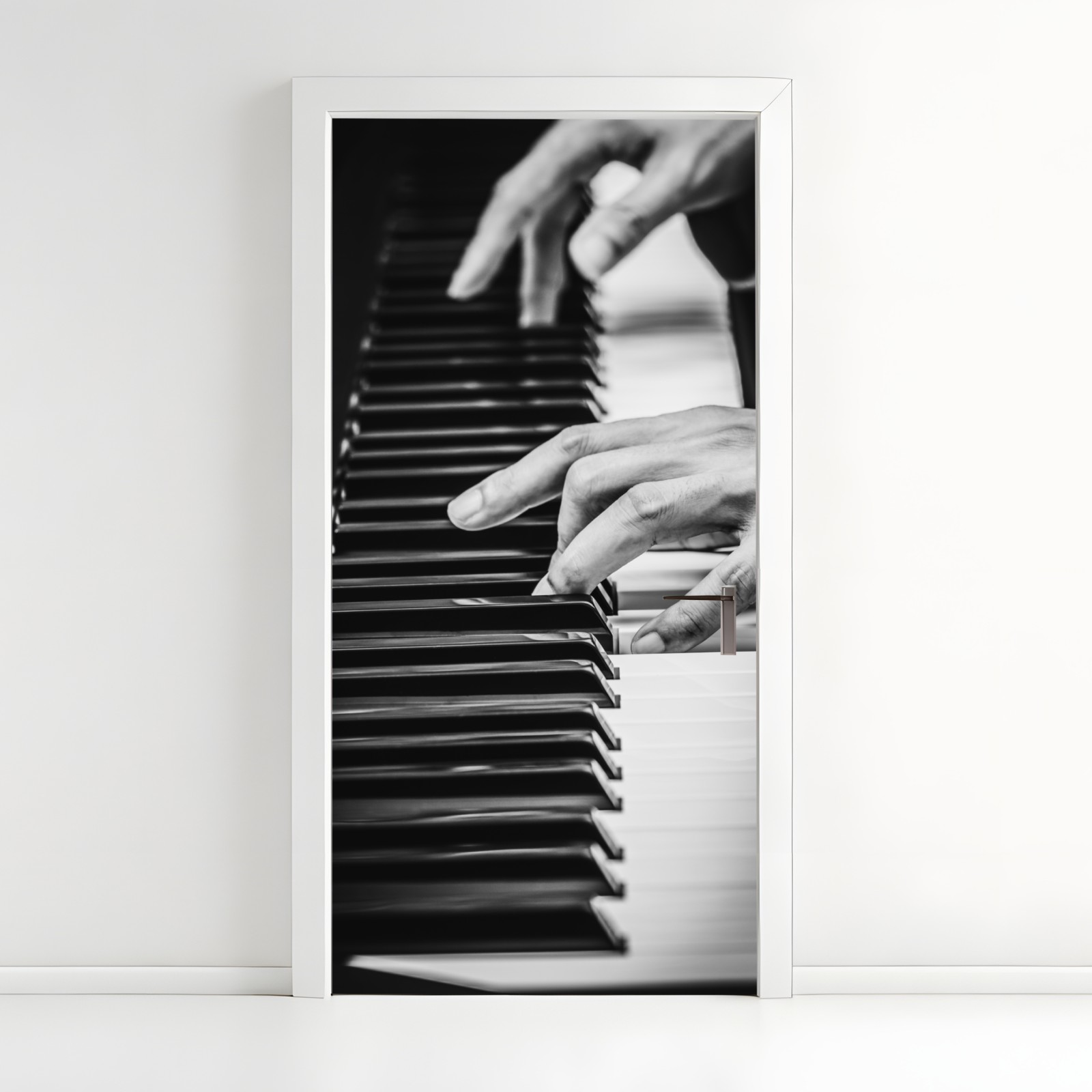 Naklejka na drzwi Dłonie przy fortepianie w ruchu