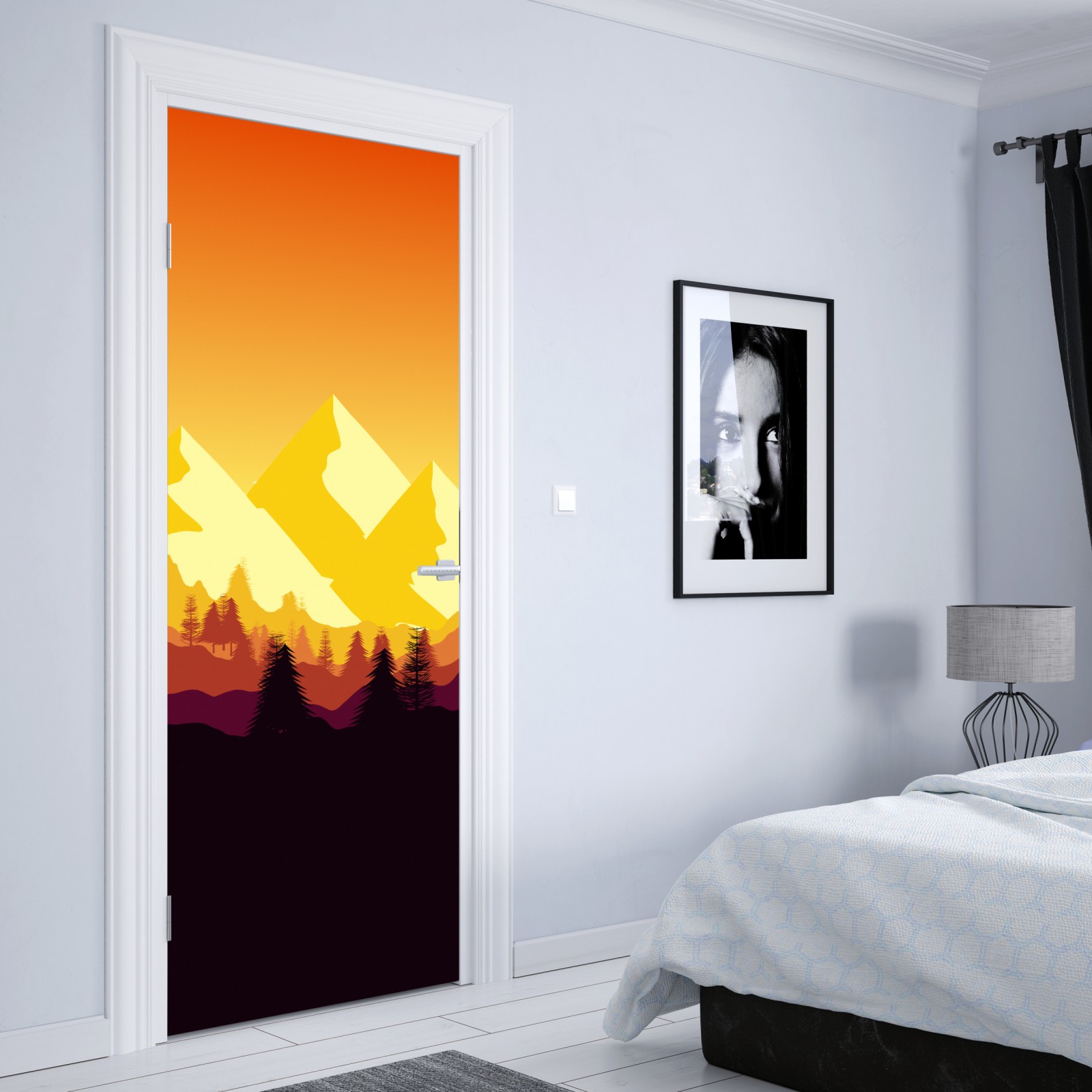 Naklejka na drzwi Złoty zachód słońca nad górami