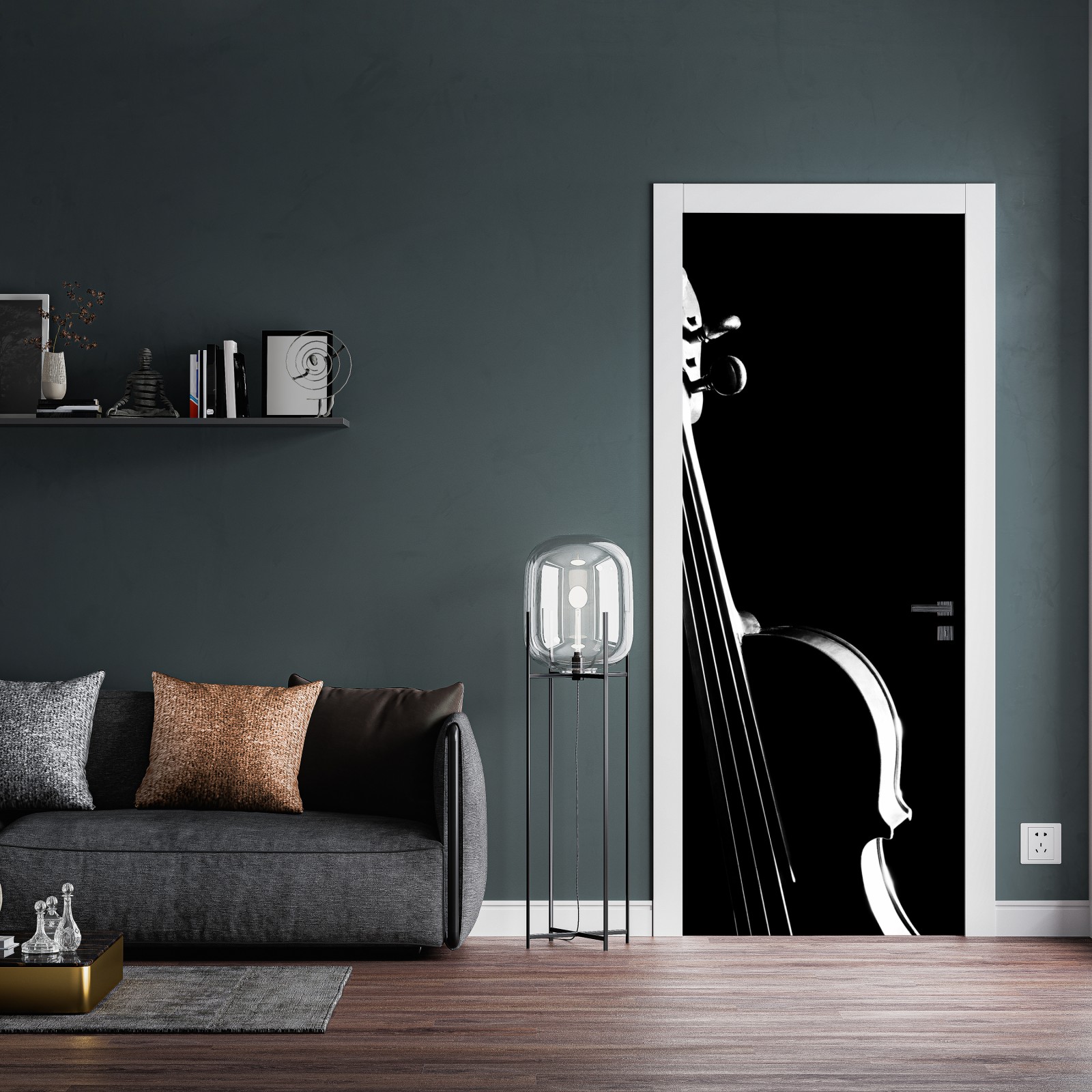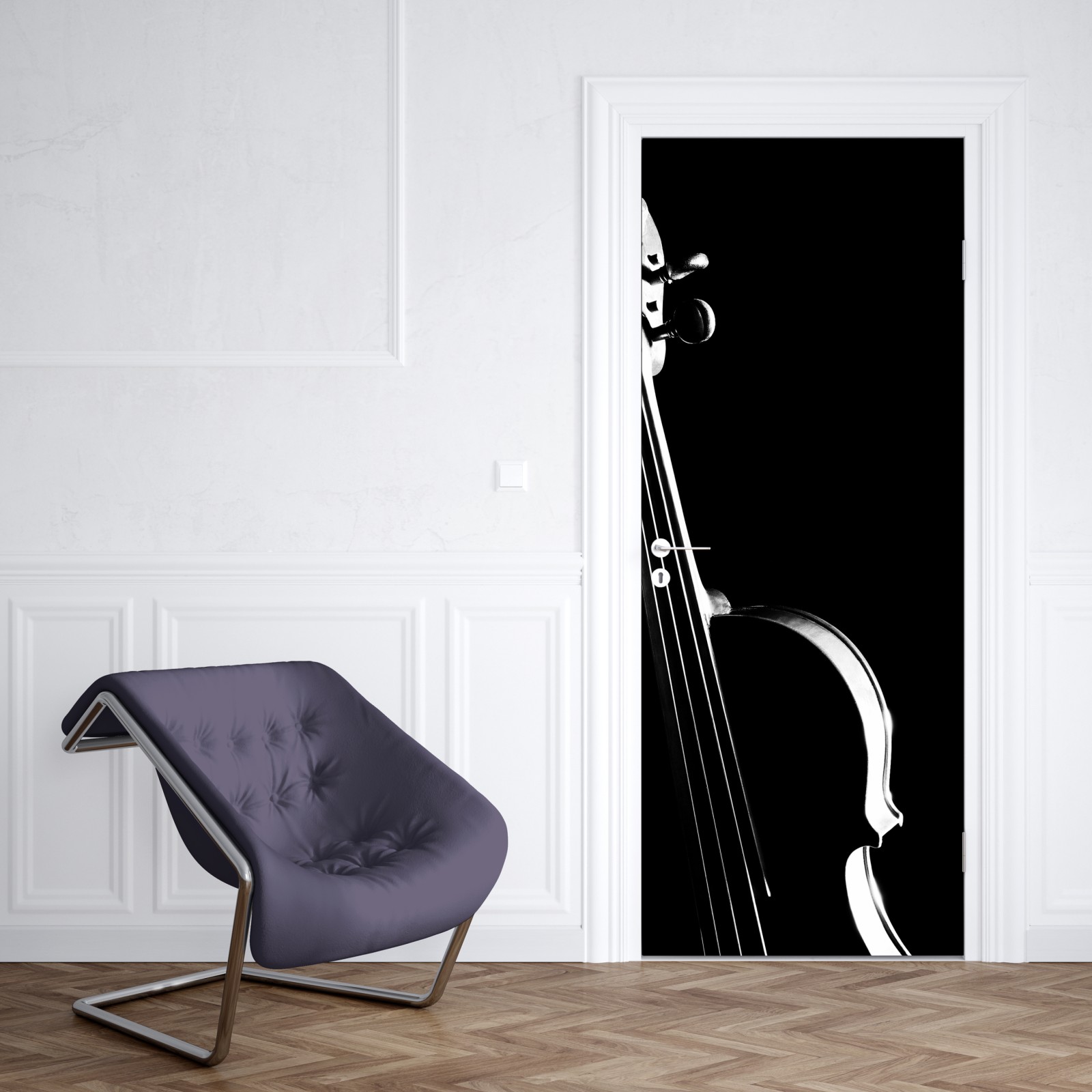 Naklejka na drzwi Elegancka sylwetka skrzypiec na czarnym tle
