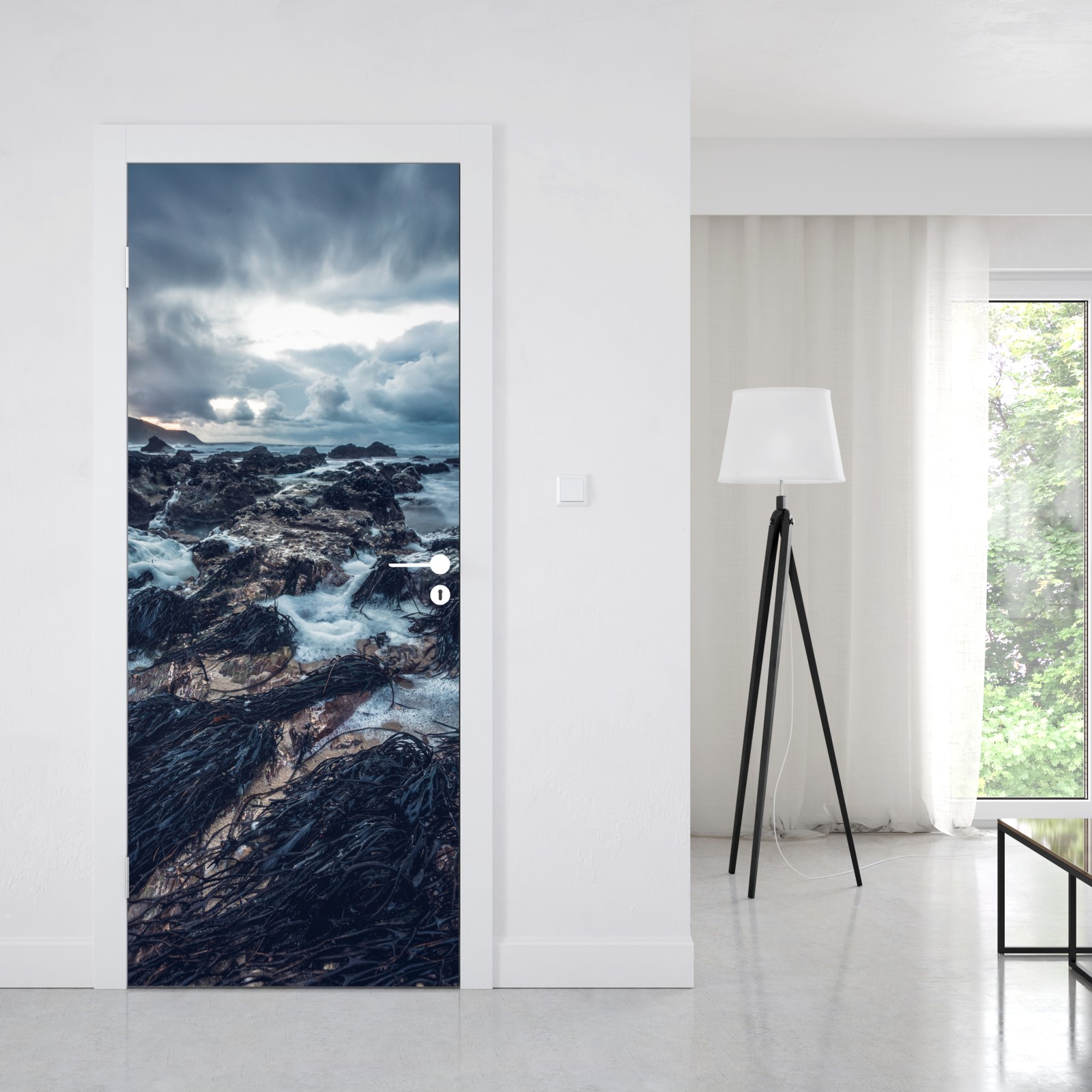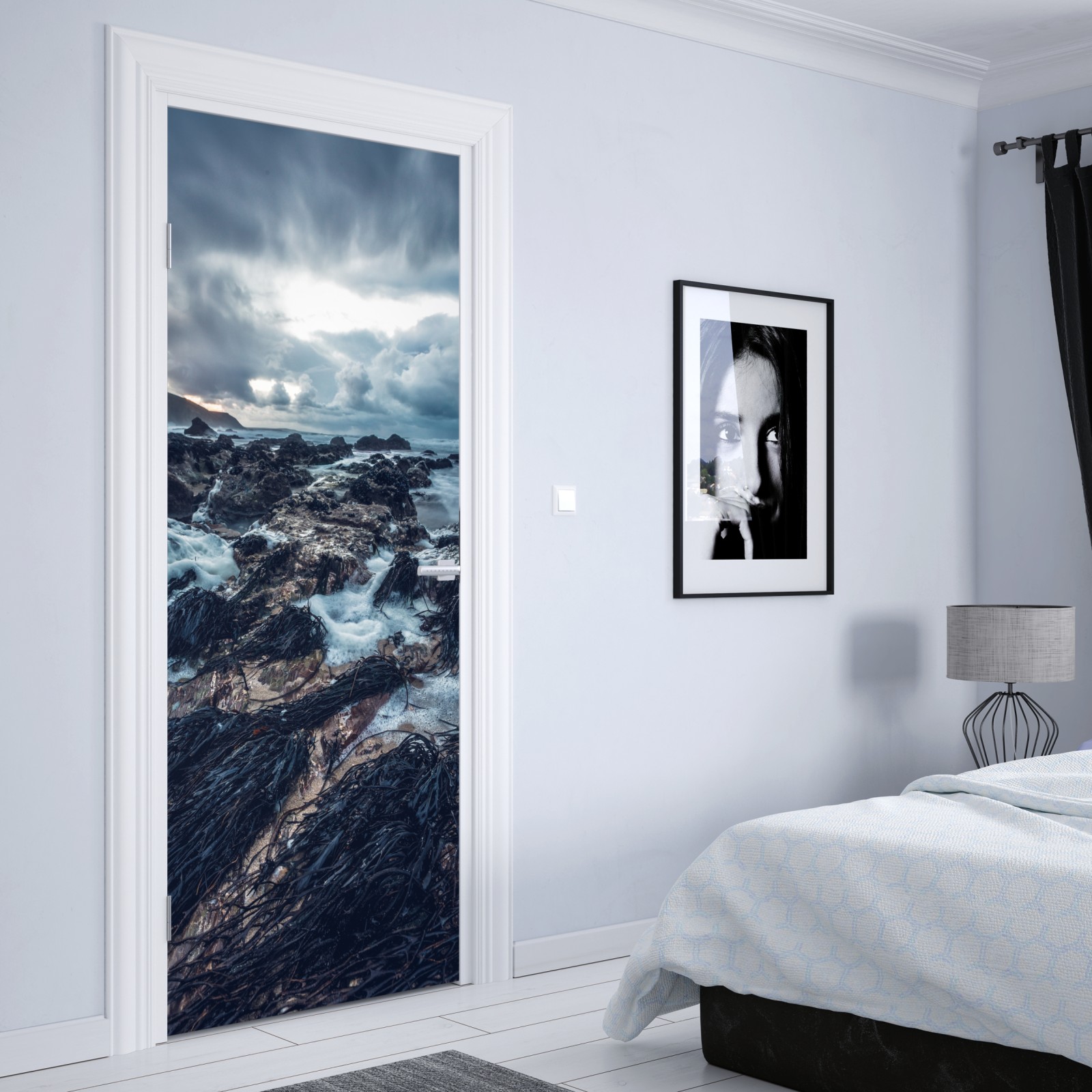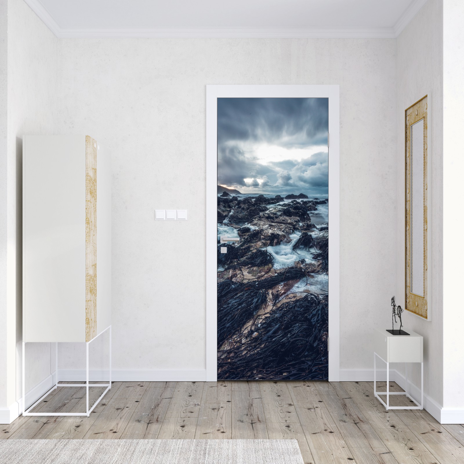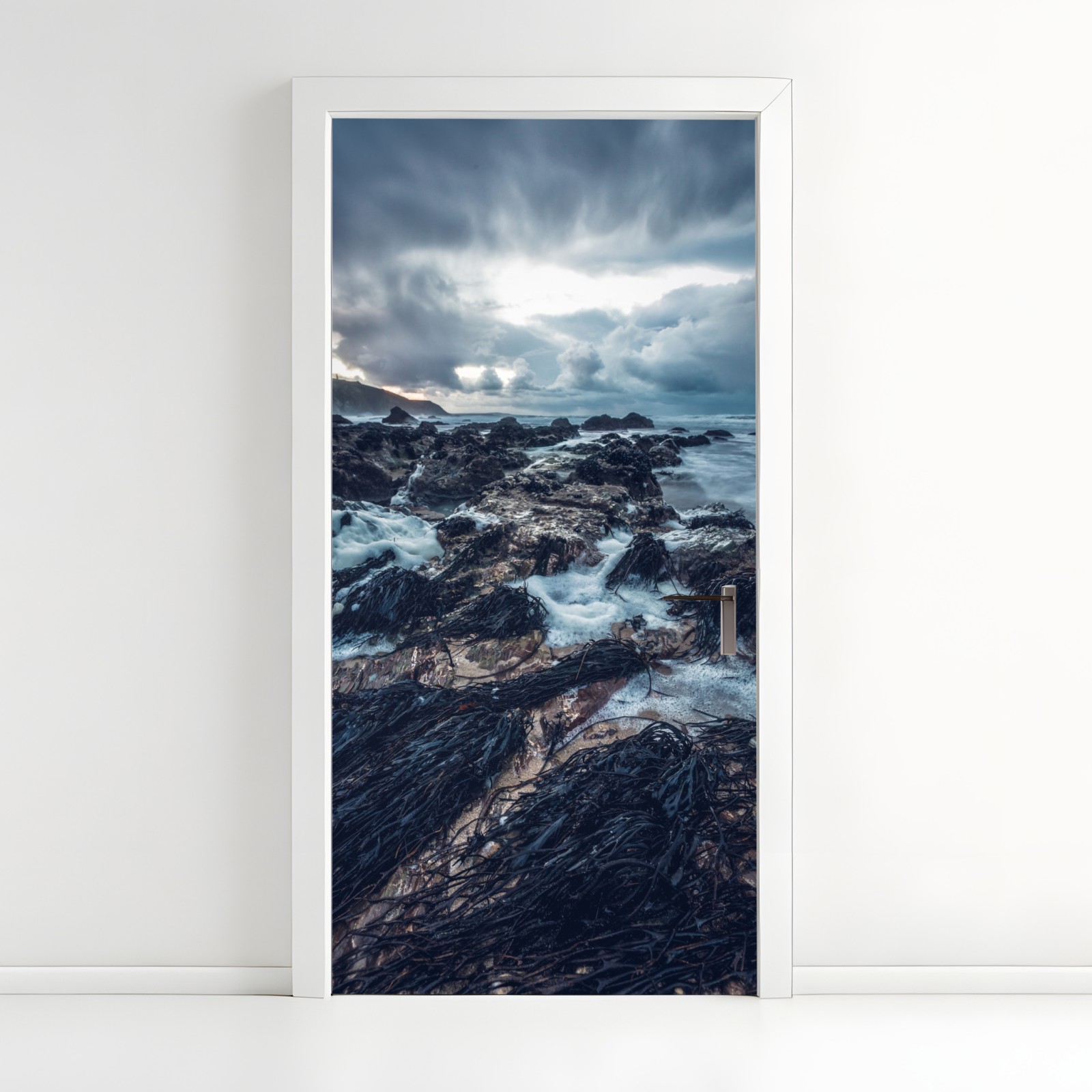 Naklejka na drzwi Nastrojowe skaliste wybrzeże o zmierzchu
