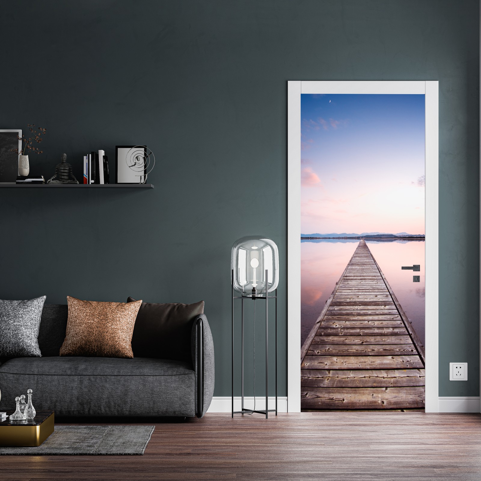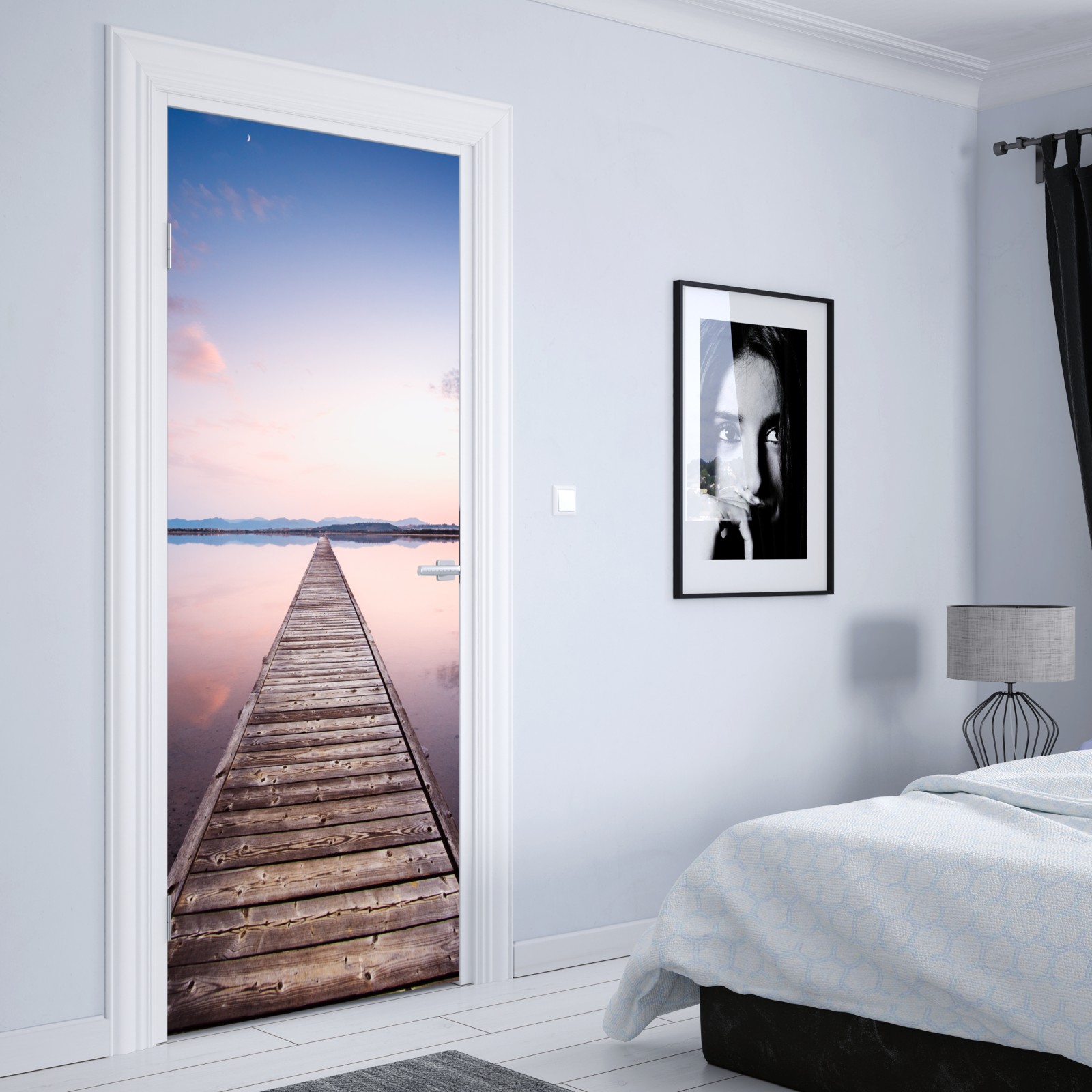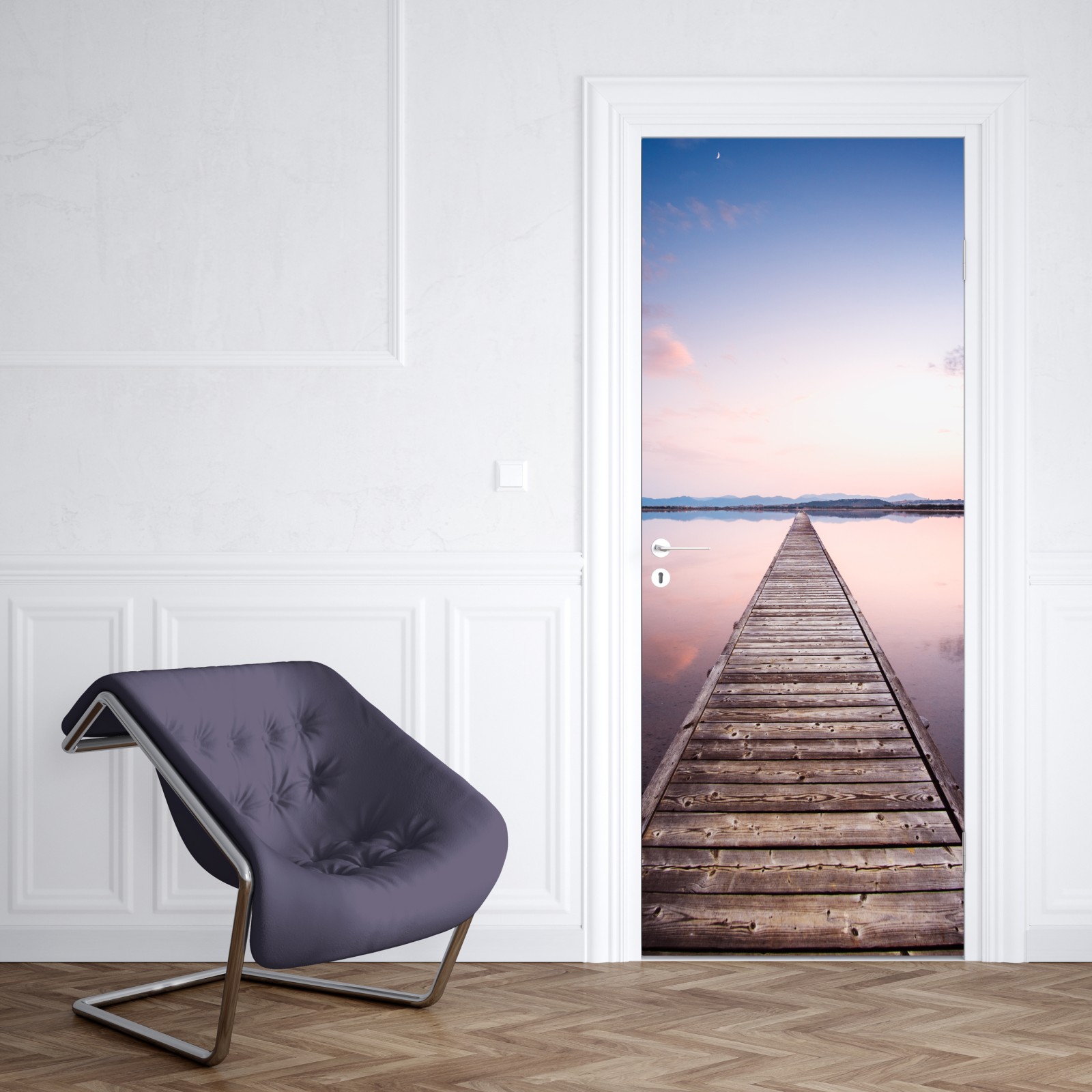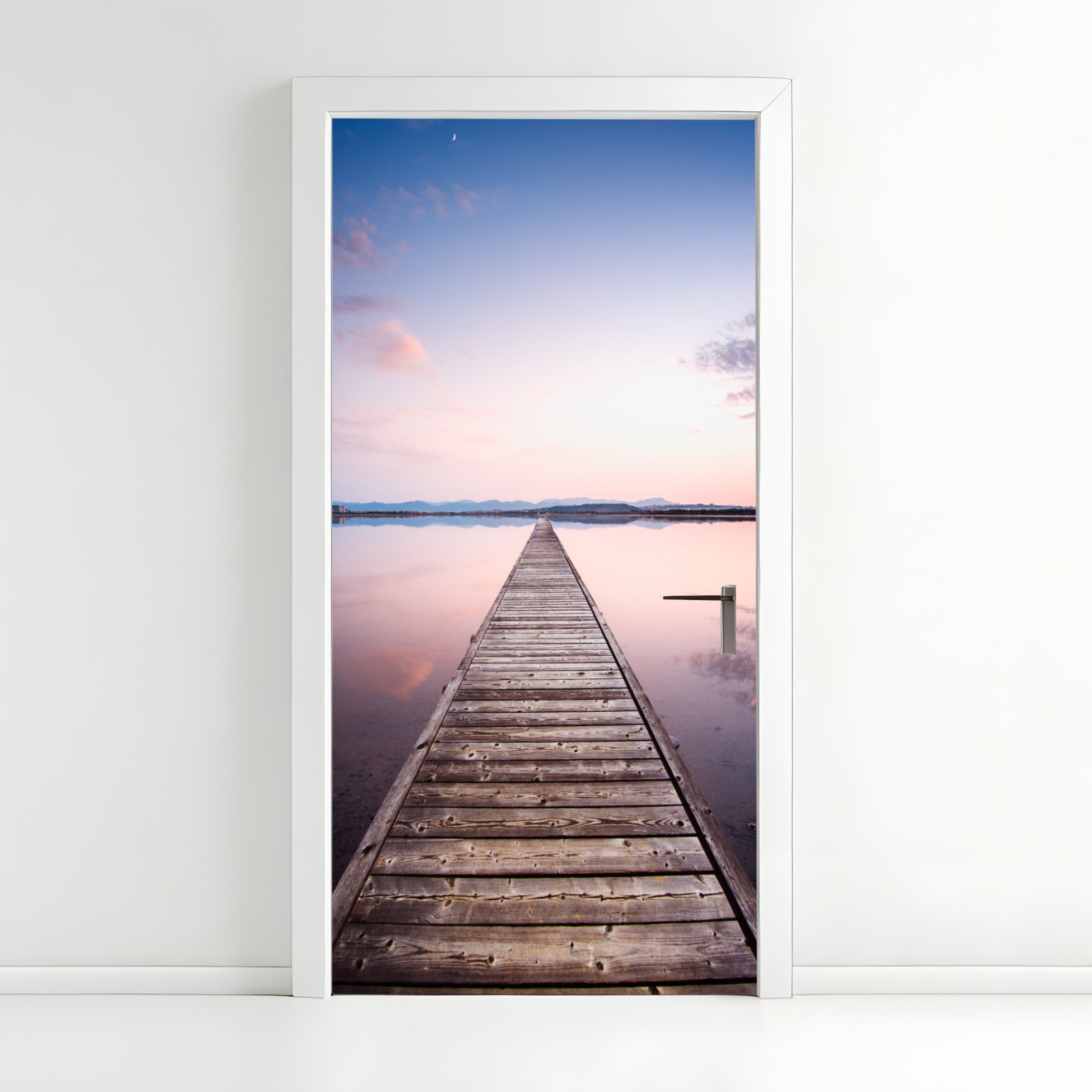 Naklejka na drzwi Pomost prowadzący w stronę horyzontu o zachodzie słońca