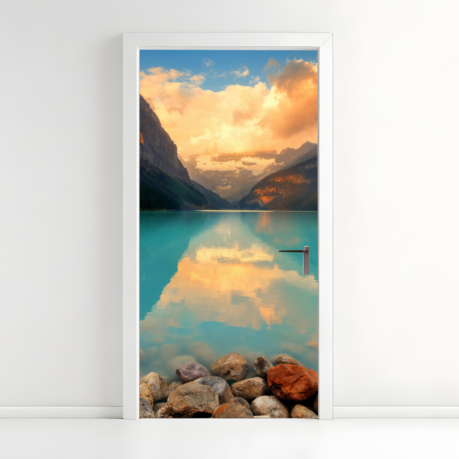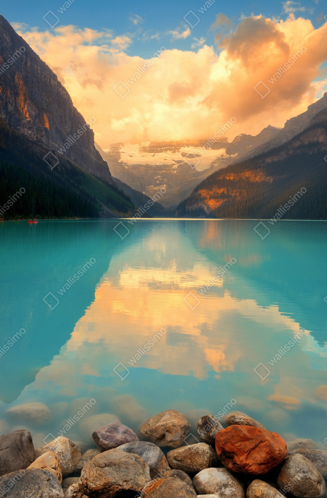 Wprowadź do wnętrza spokój górskiego poranka dzięki wschodowi słońca nad Lake Louise i turkusowym wodom odbijającym szczyty.