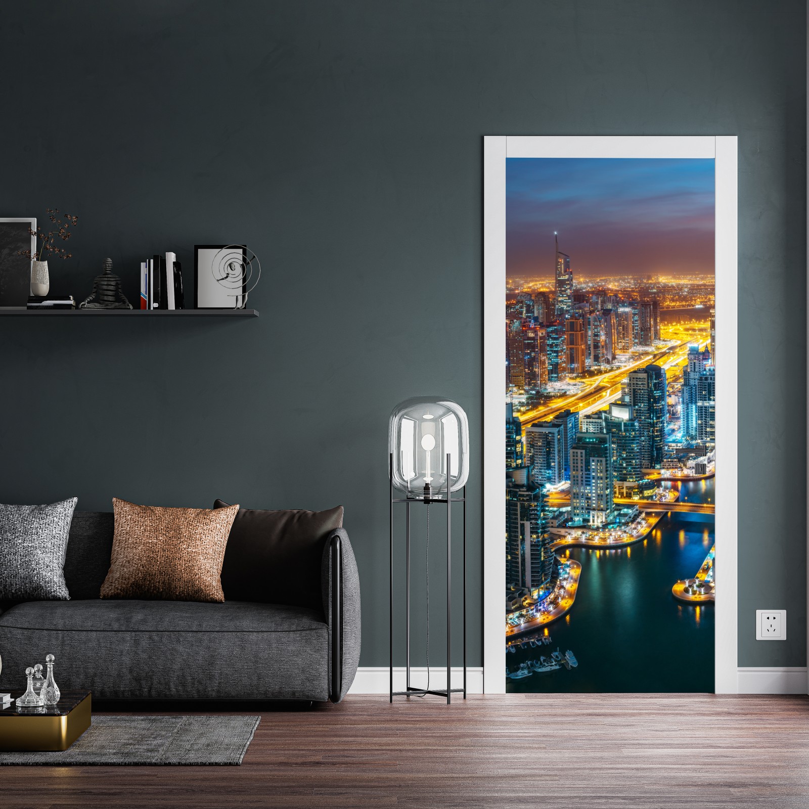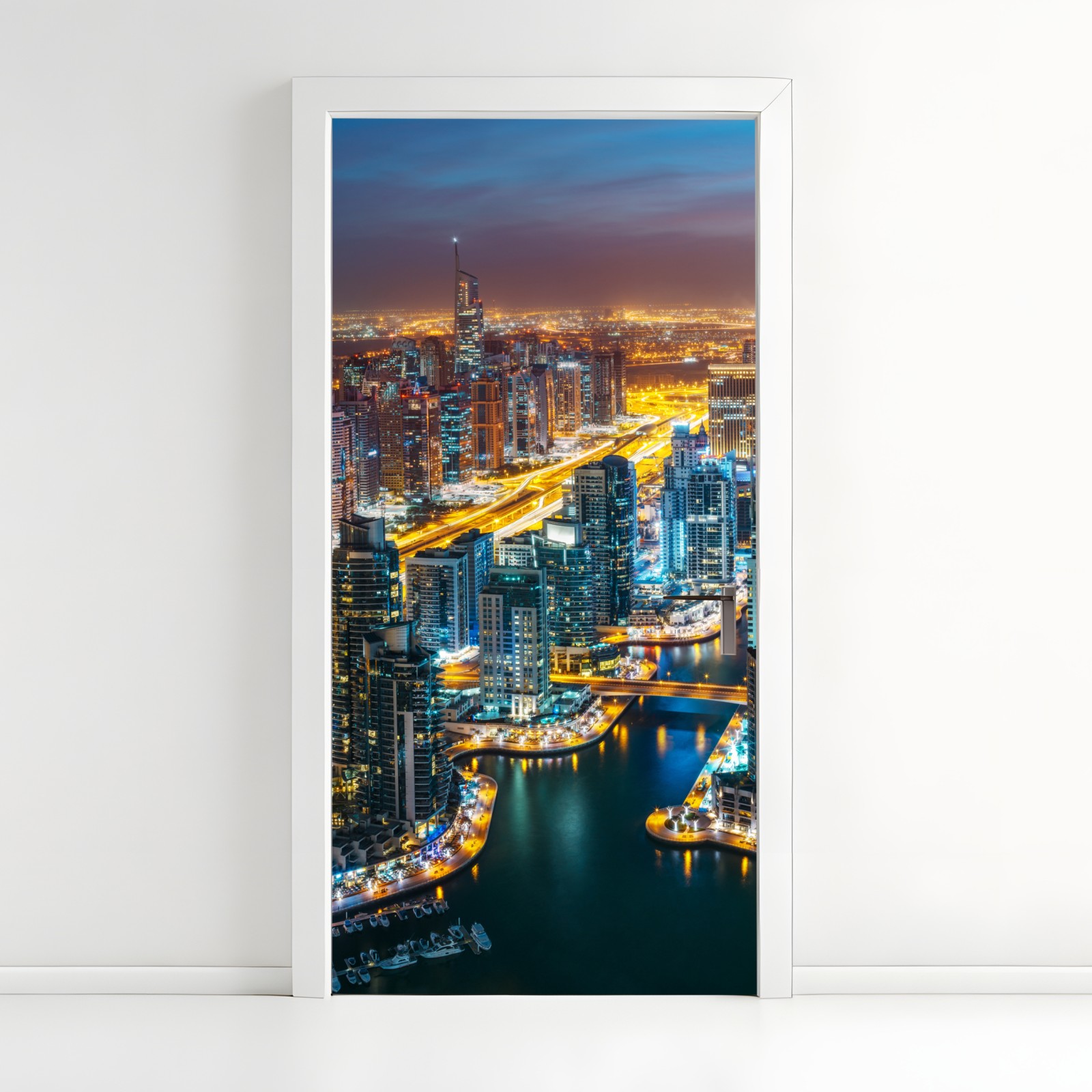 Naklejka na drzwi Nocna panorama Dubai Marina