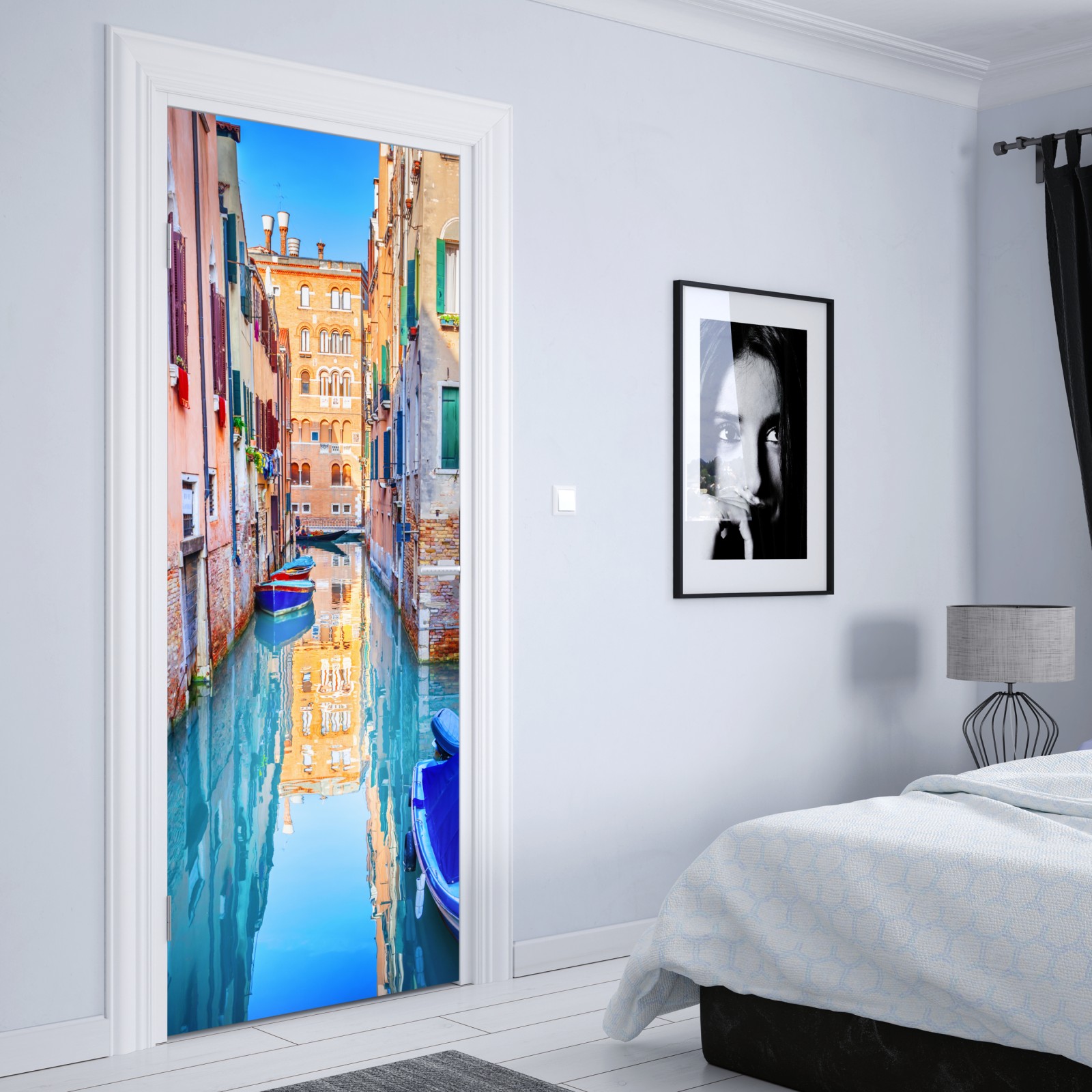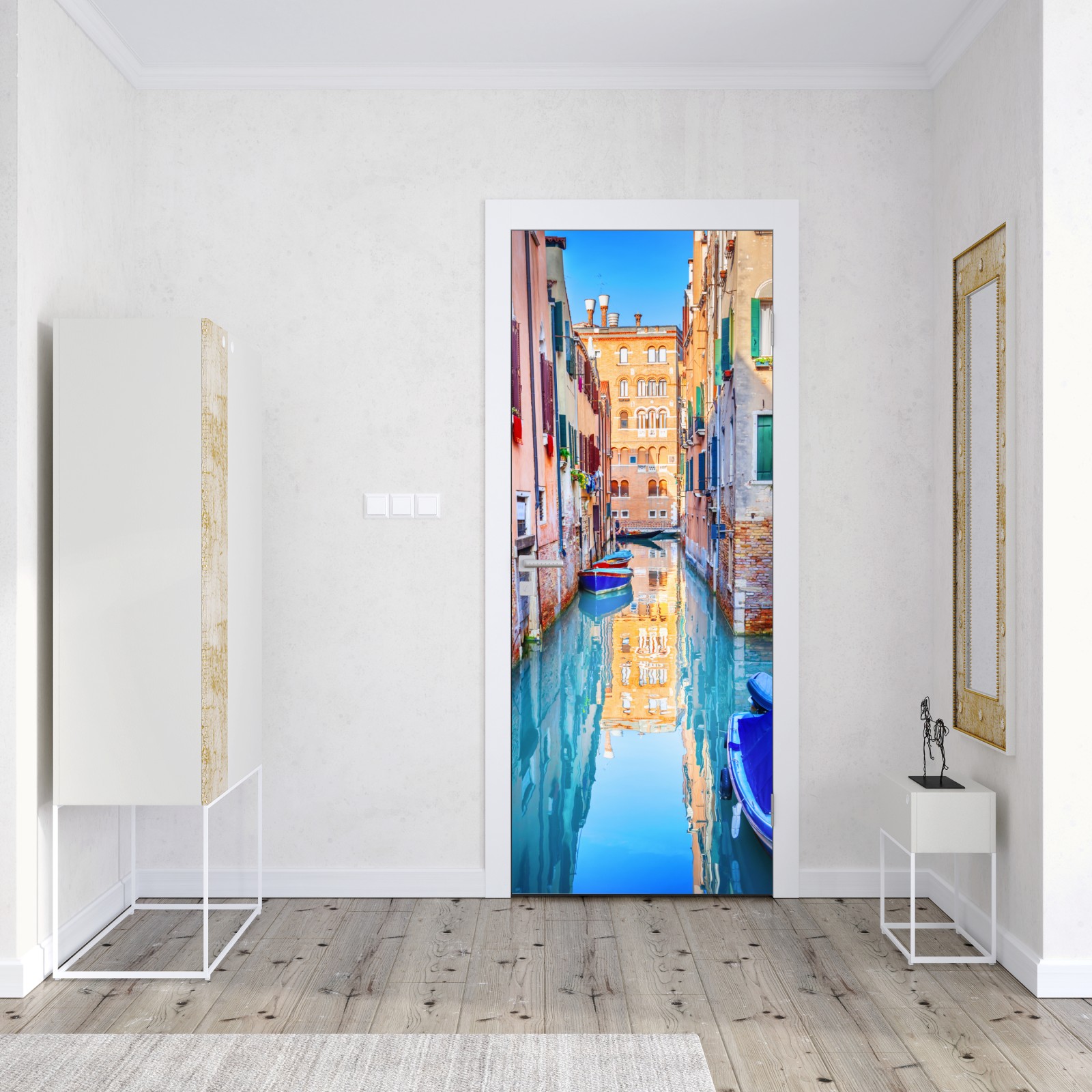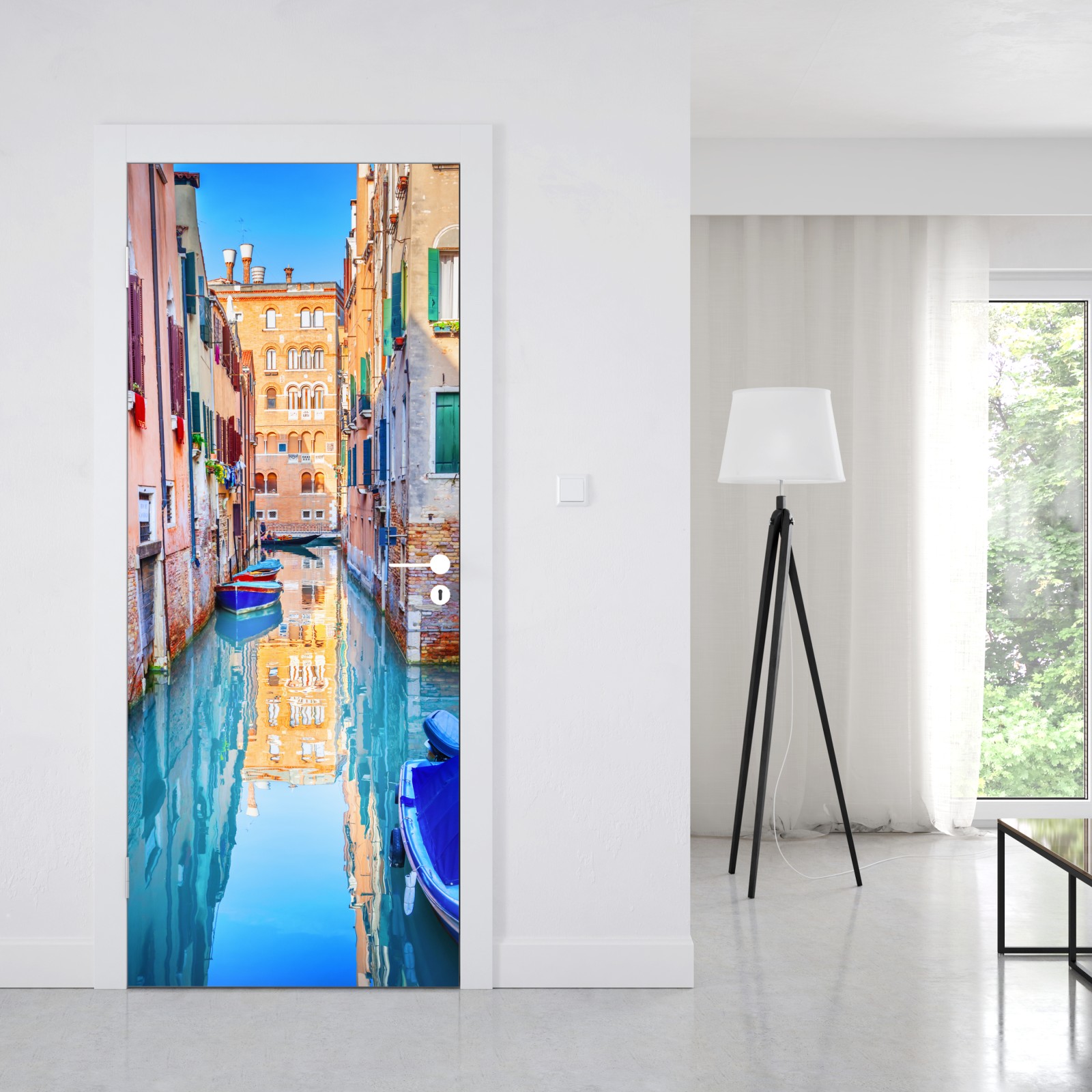 Wprowadź ponadczasowy urok Wenecji do swojego wnętrza dzięki tej żywej scenie kanału z kolorowymi łodziami i spokojnymi odbiciami.