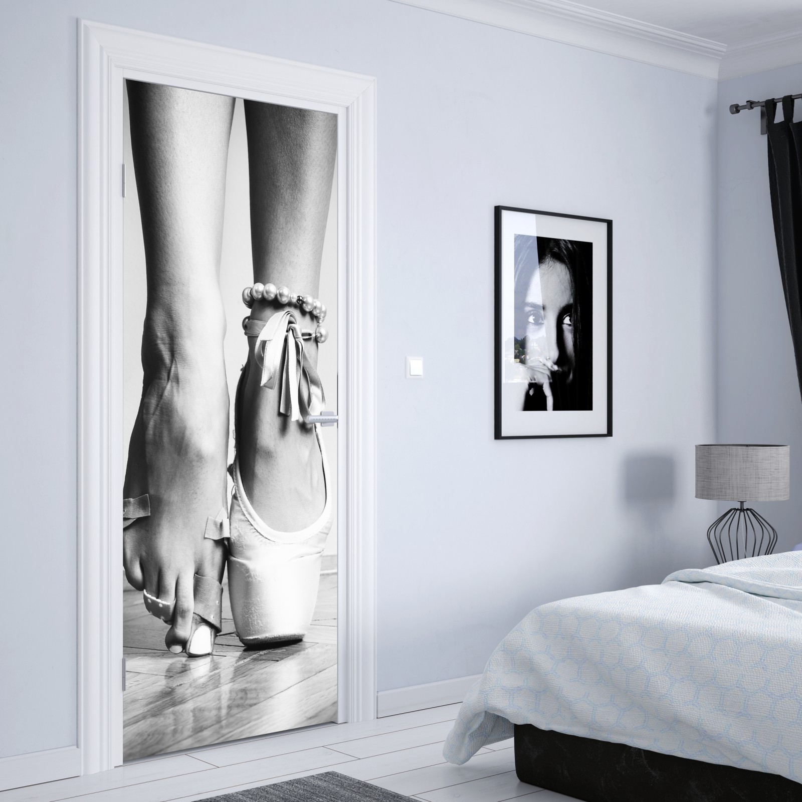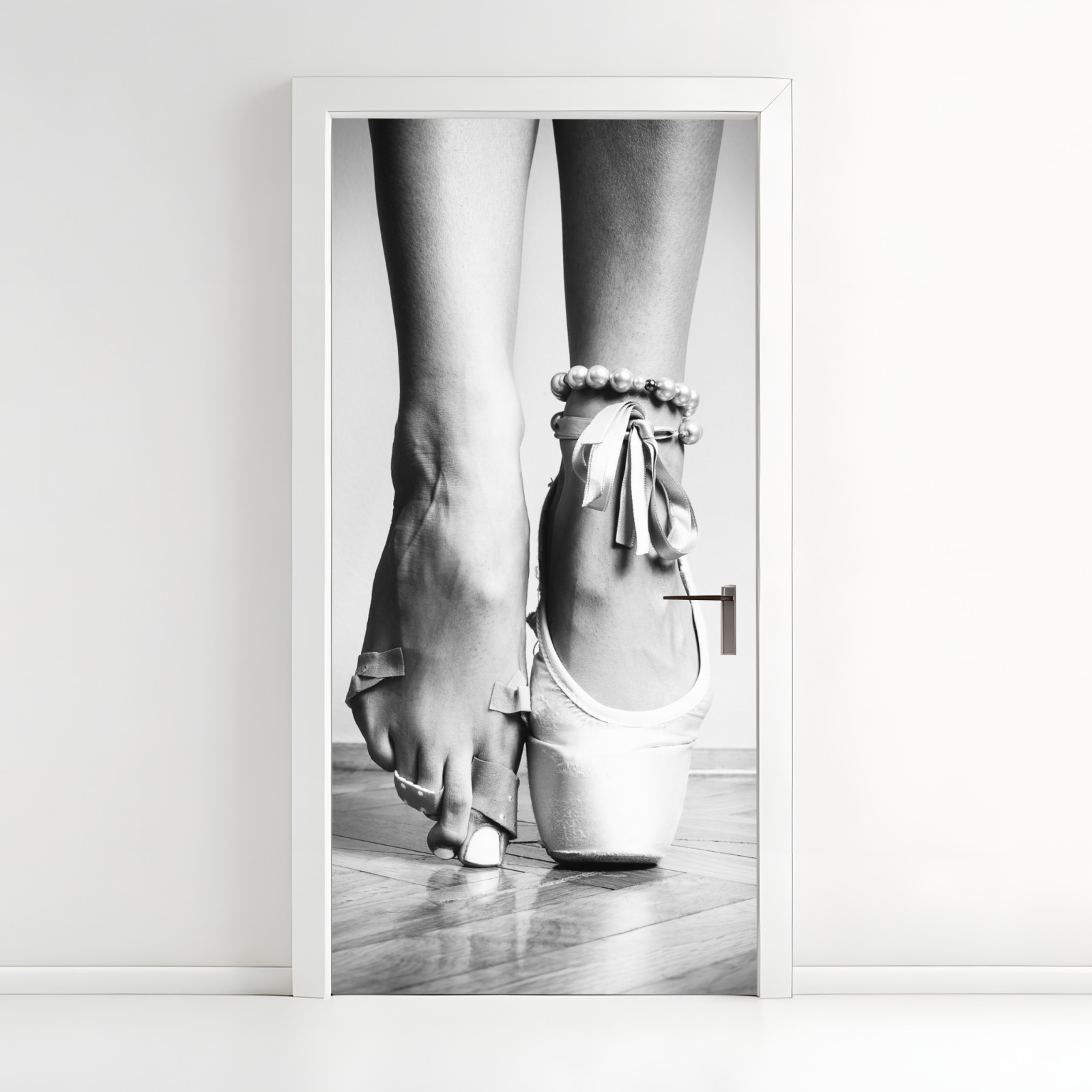 Celebruj piękno i dyscyplinę tańca dzięki temu wyrazistemu czarno-białemu wydrukowi przedstawiającemu stopę baletnicy na pointach; minimalistyczna kompozycja doda ponadczasowej elegancji do sypialni lub studia.