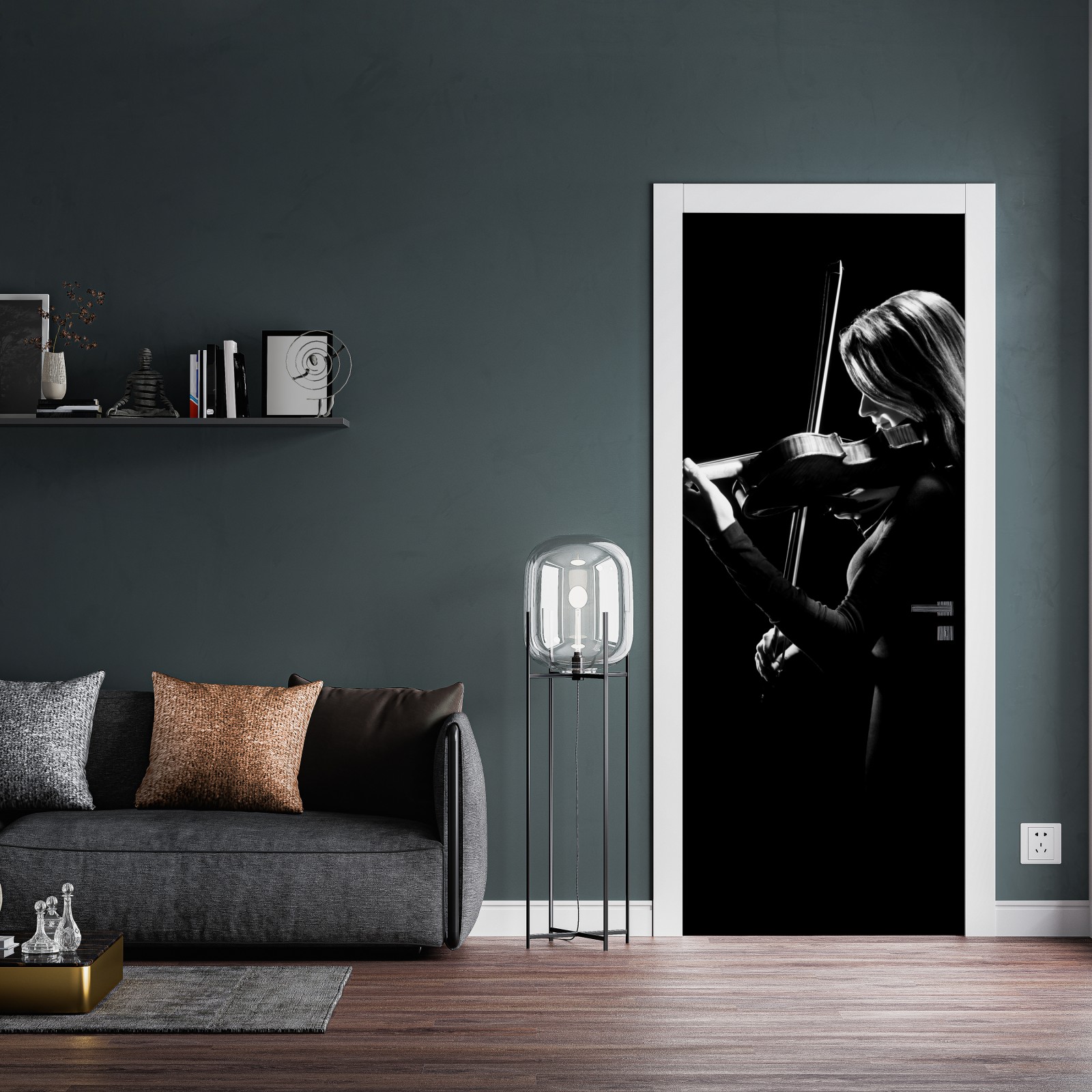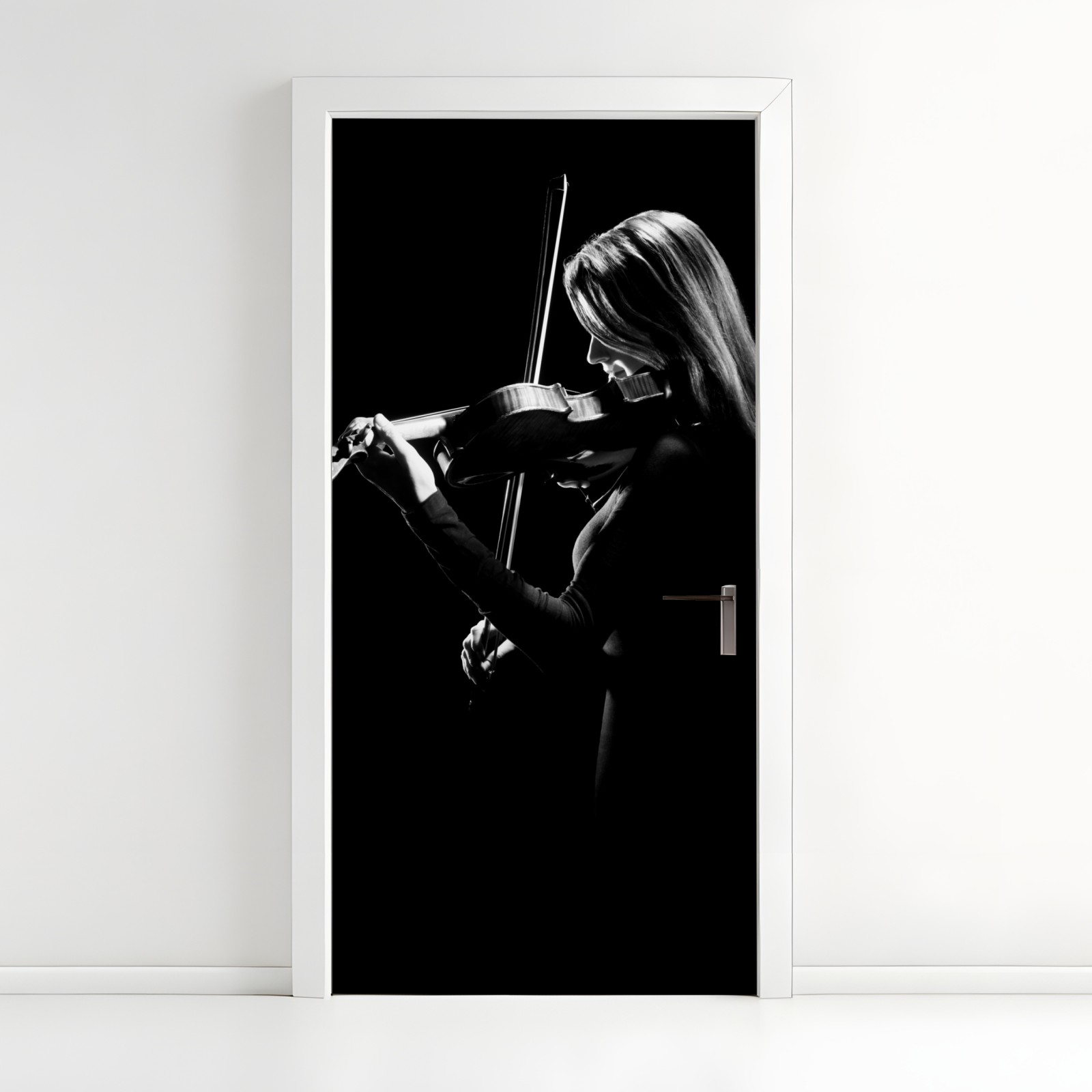 Naklejka na drzwi Elegancka sylwetka skrzypaczki