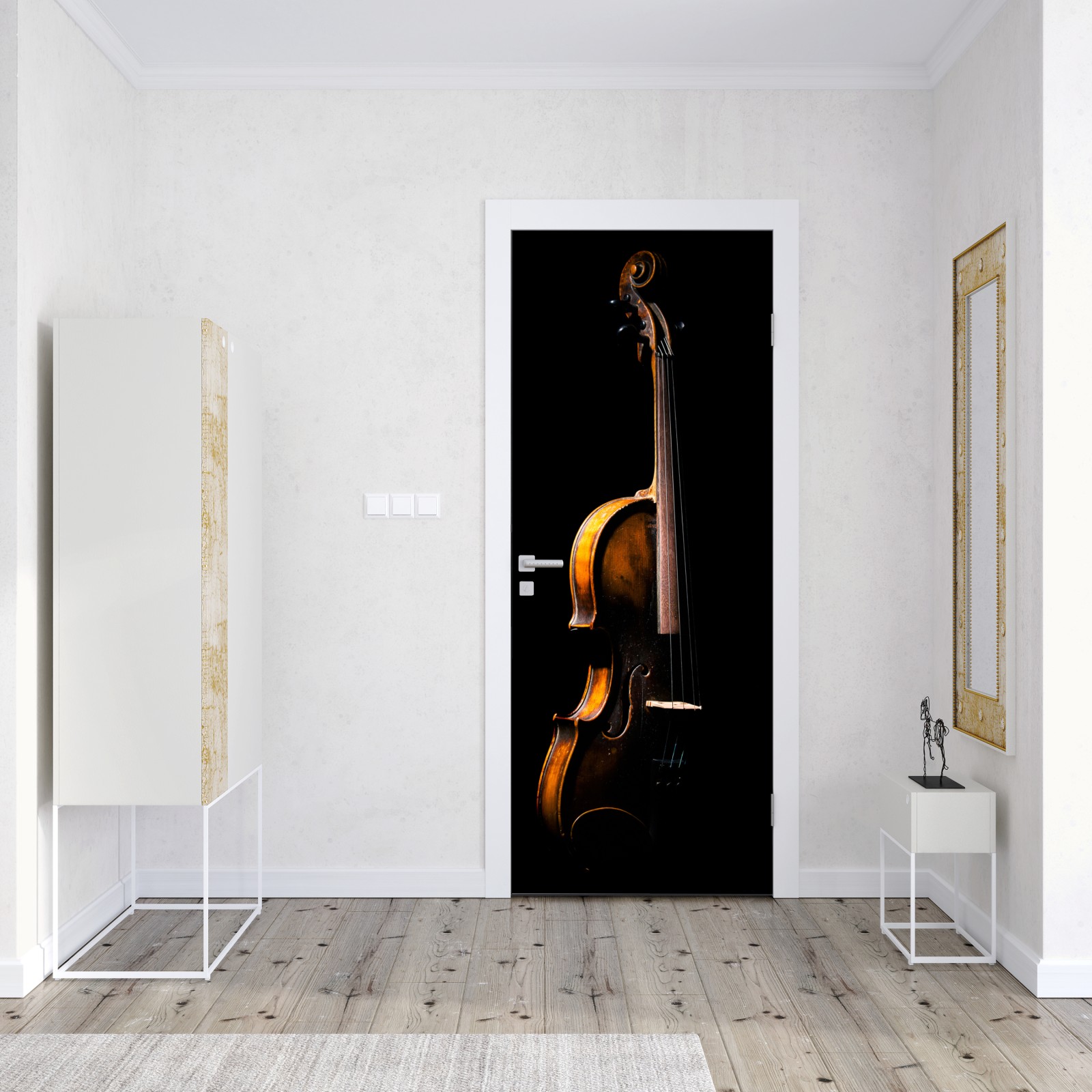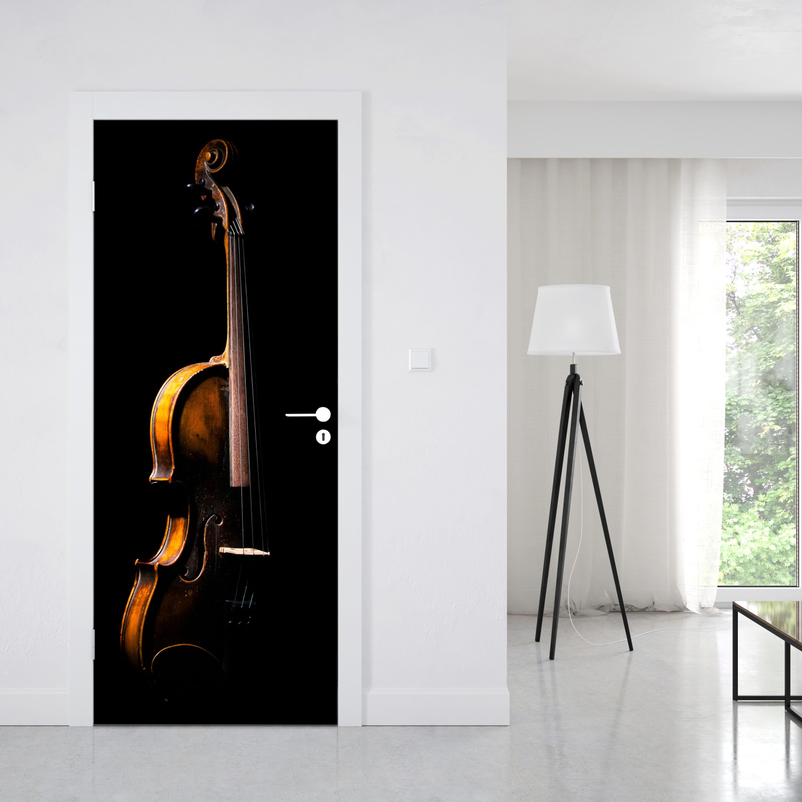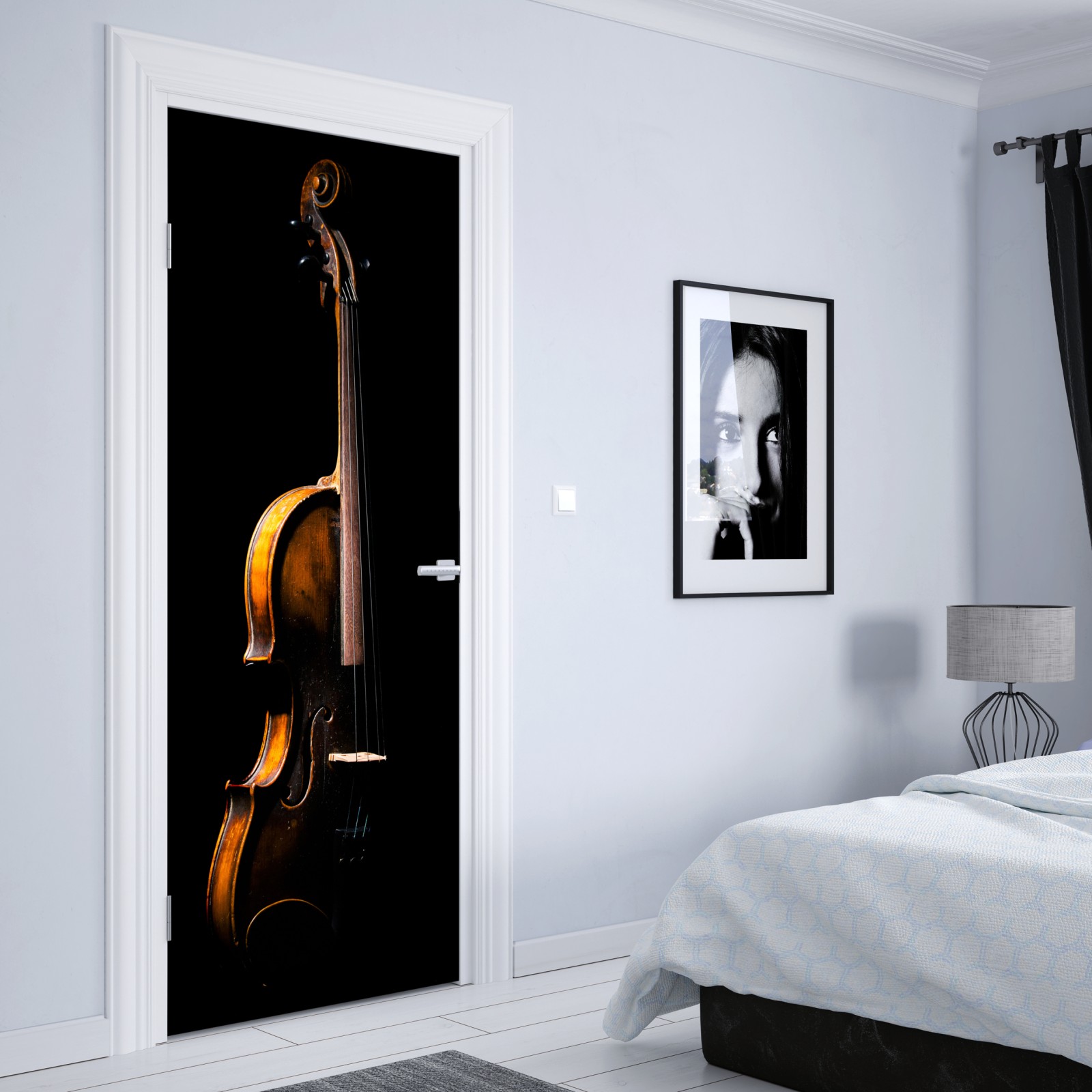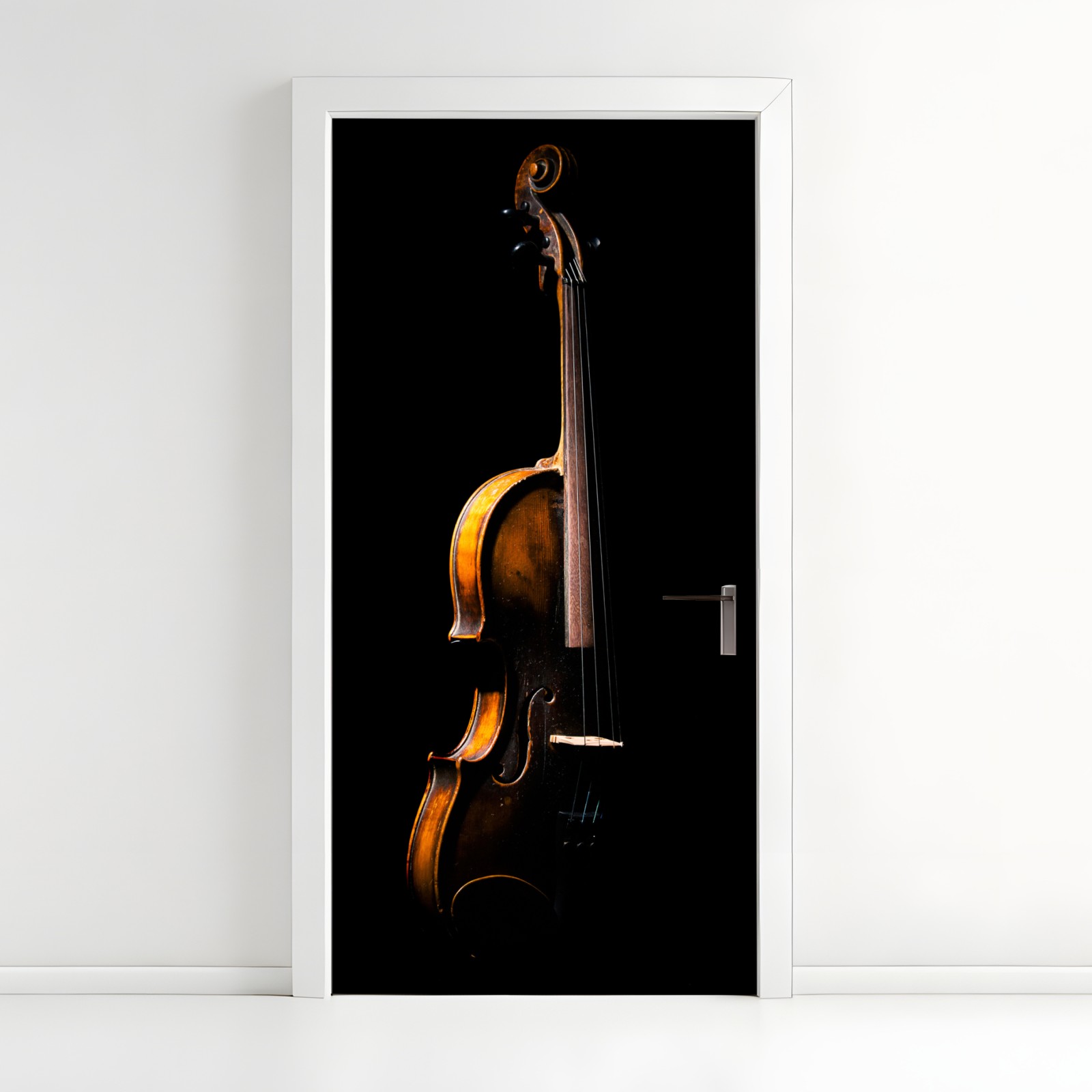 Naklejka na drzwi Eleganckie retro skrzypce na czarnym tle